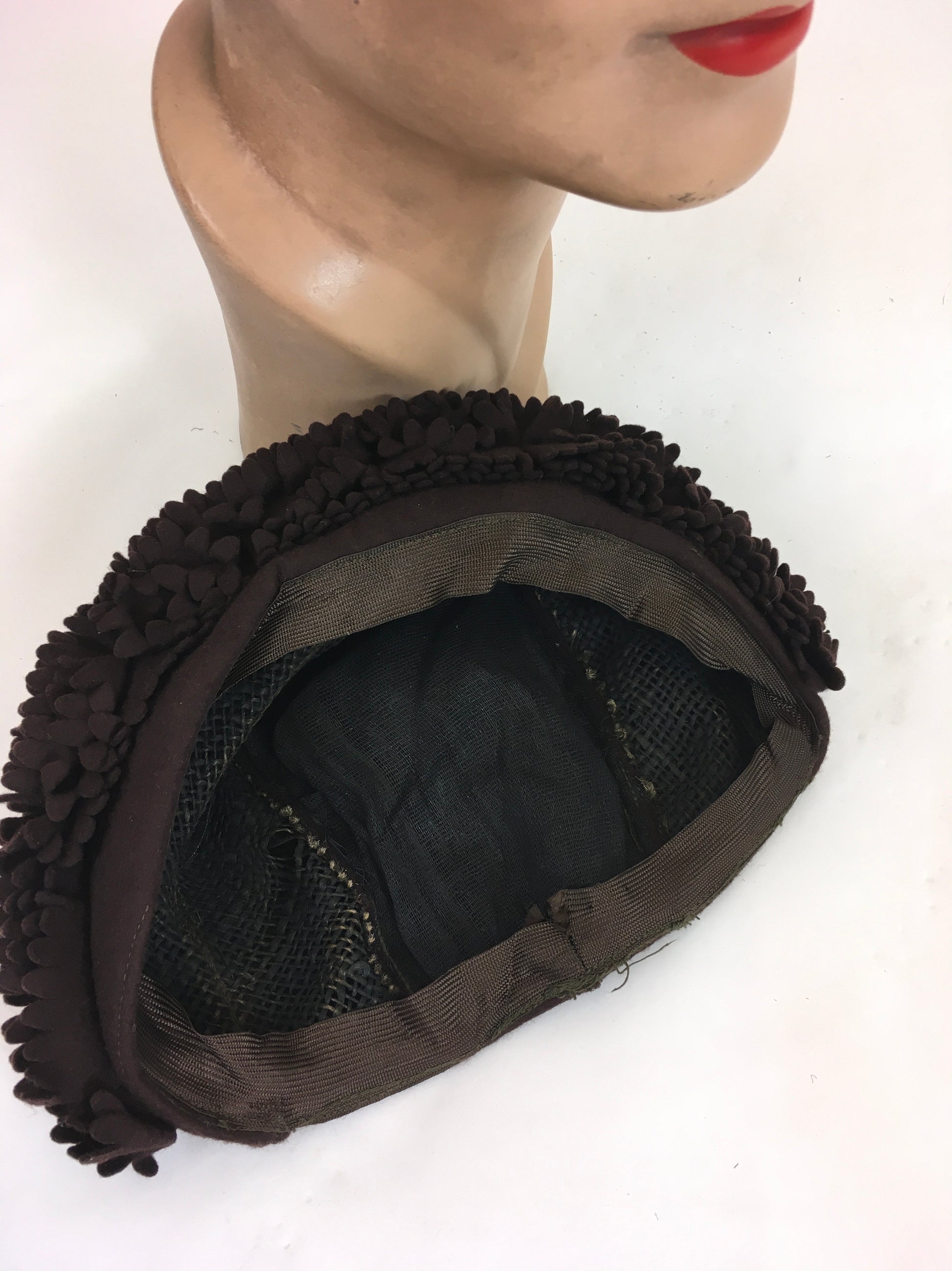 Original 1930's / 1940's Darling Pixie Halo Hat in Chocolate Brown - With Floral Adornment
