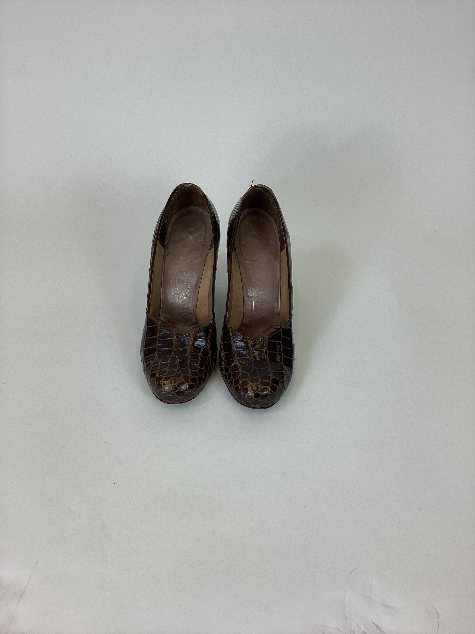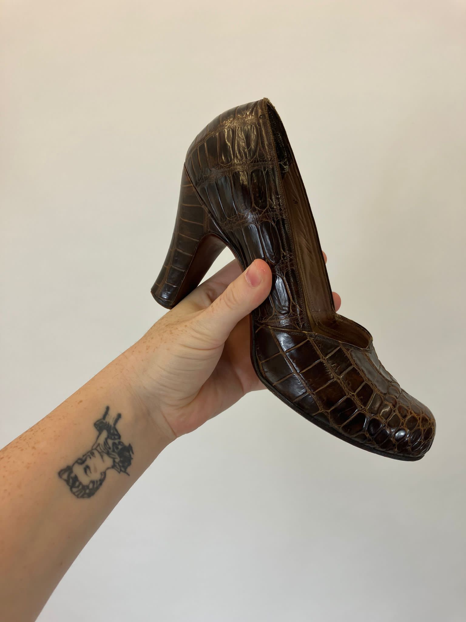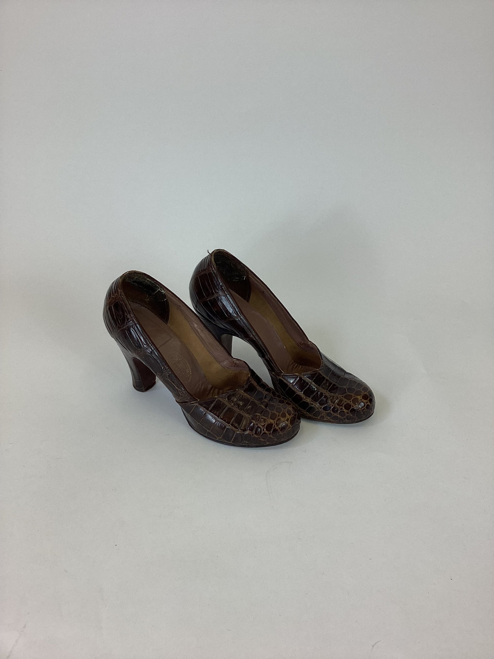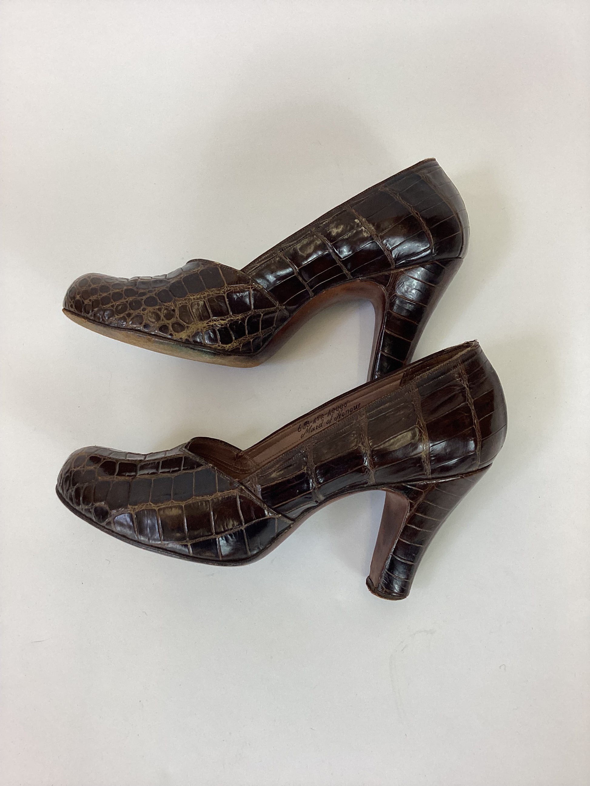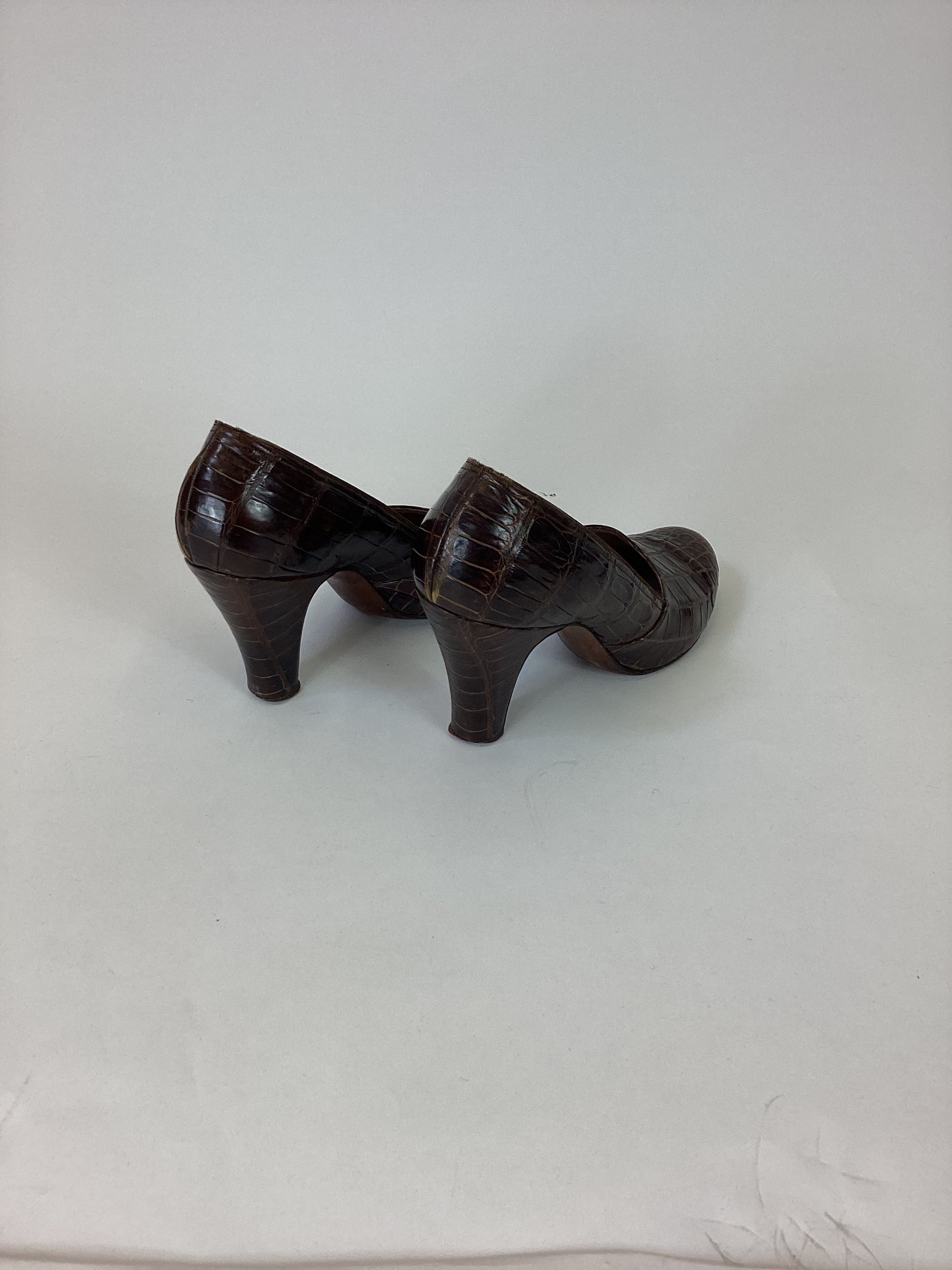 Original 40's Faux Alligator Shoes - in Chocolate Brown