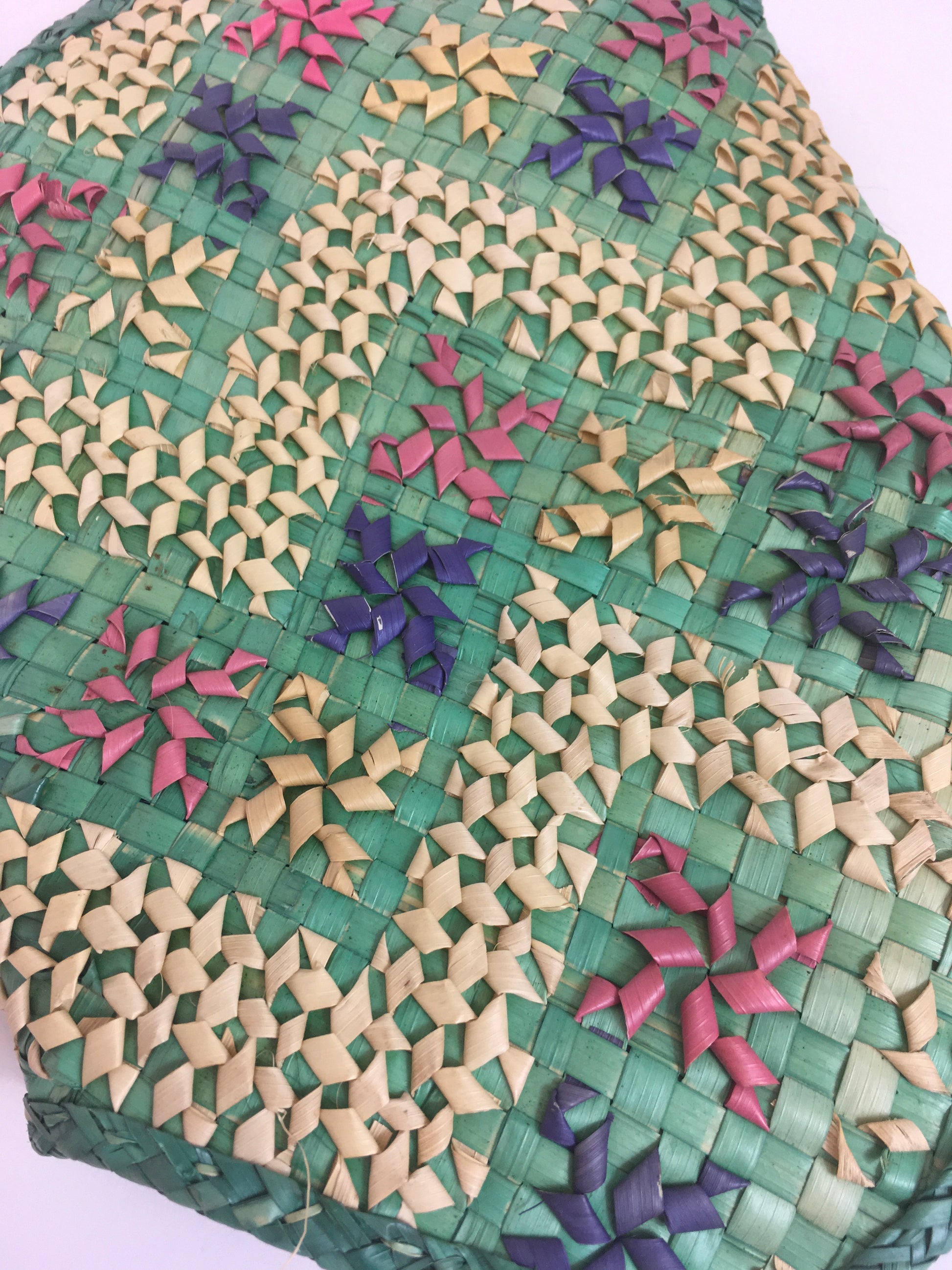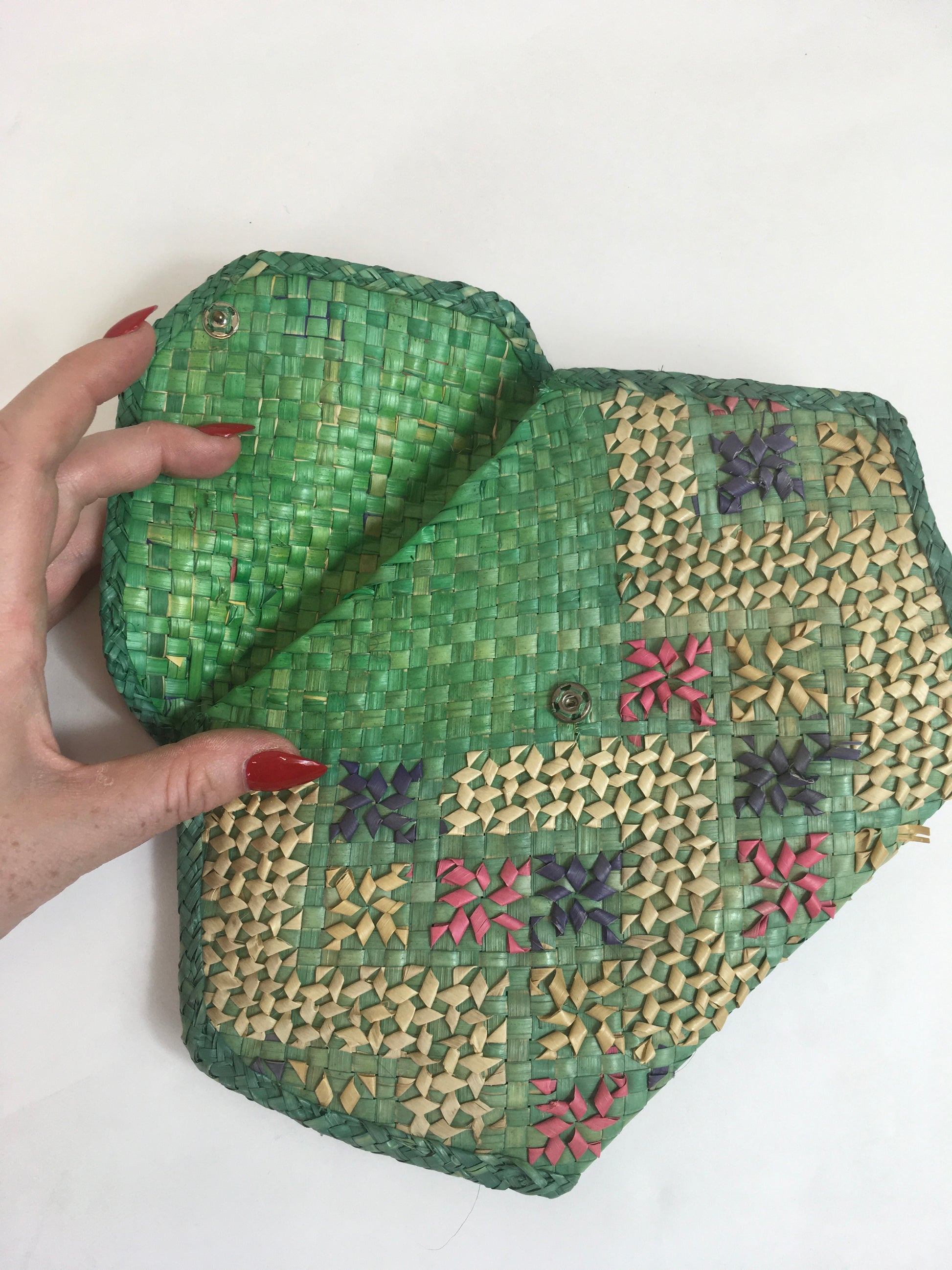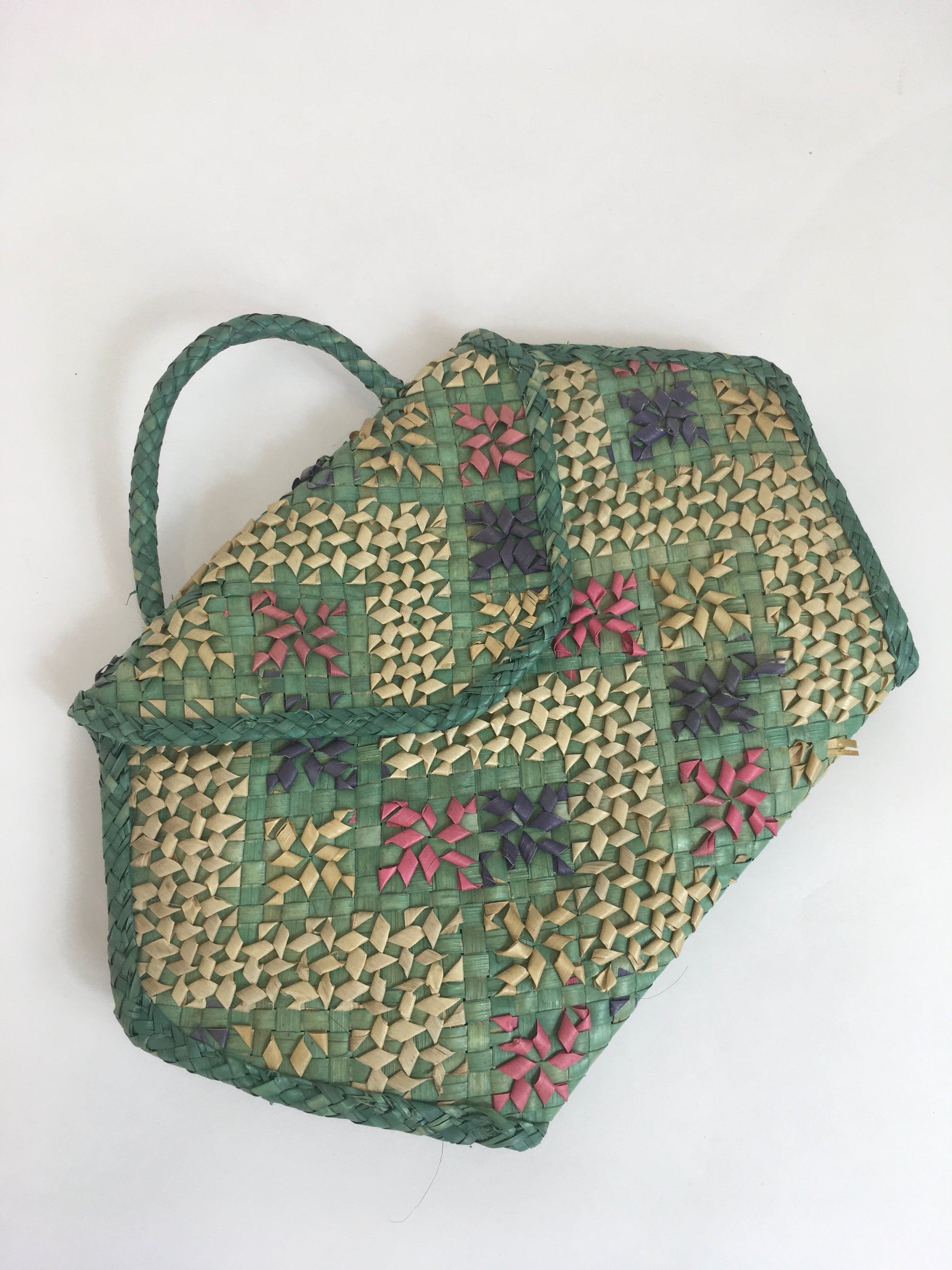 Original 1930’s Eau De Nil Raffia Handbag - With Delicate Rose, Lilac and Beige Hints