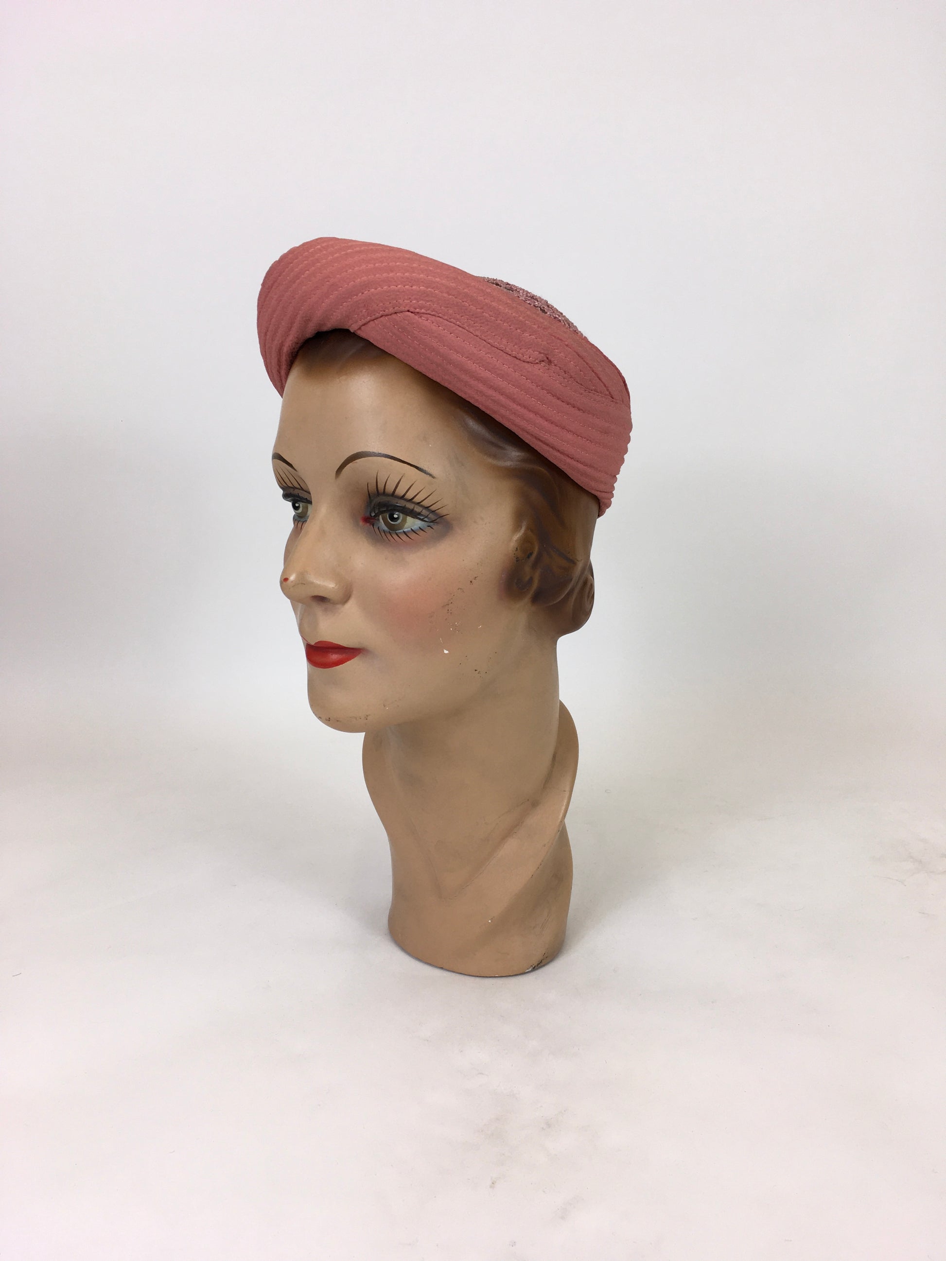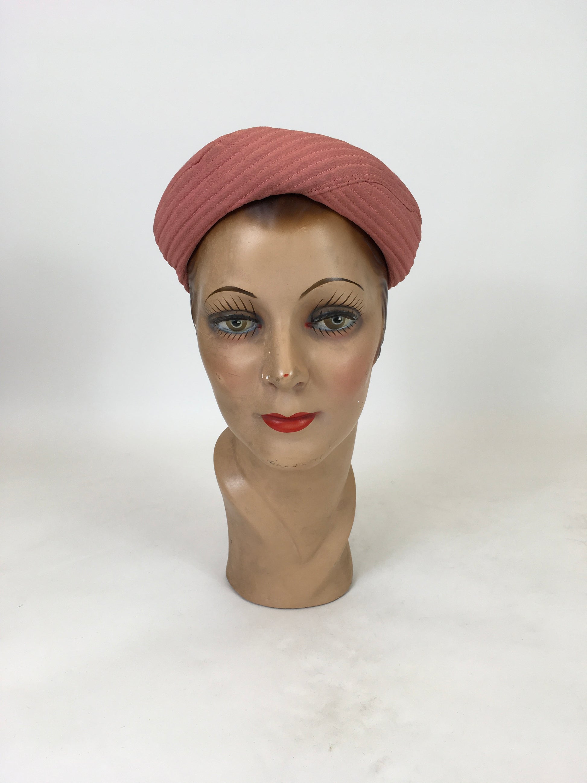 Original 1940's Darling Turban Halo Hat With Open Crown - In A Powdered Salmon Crepe