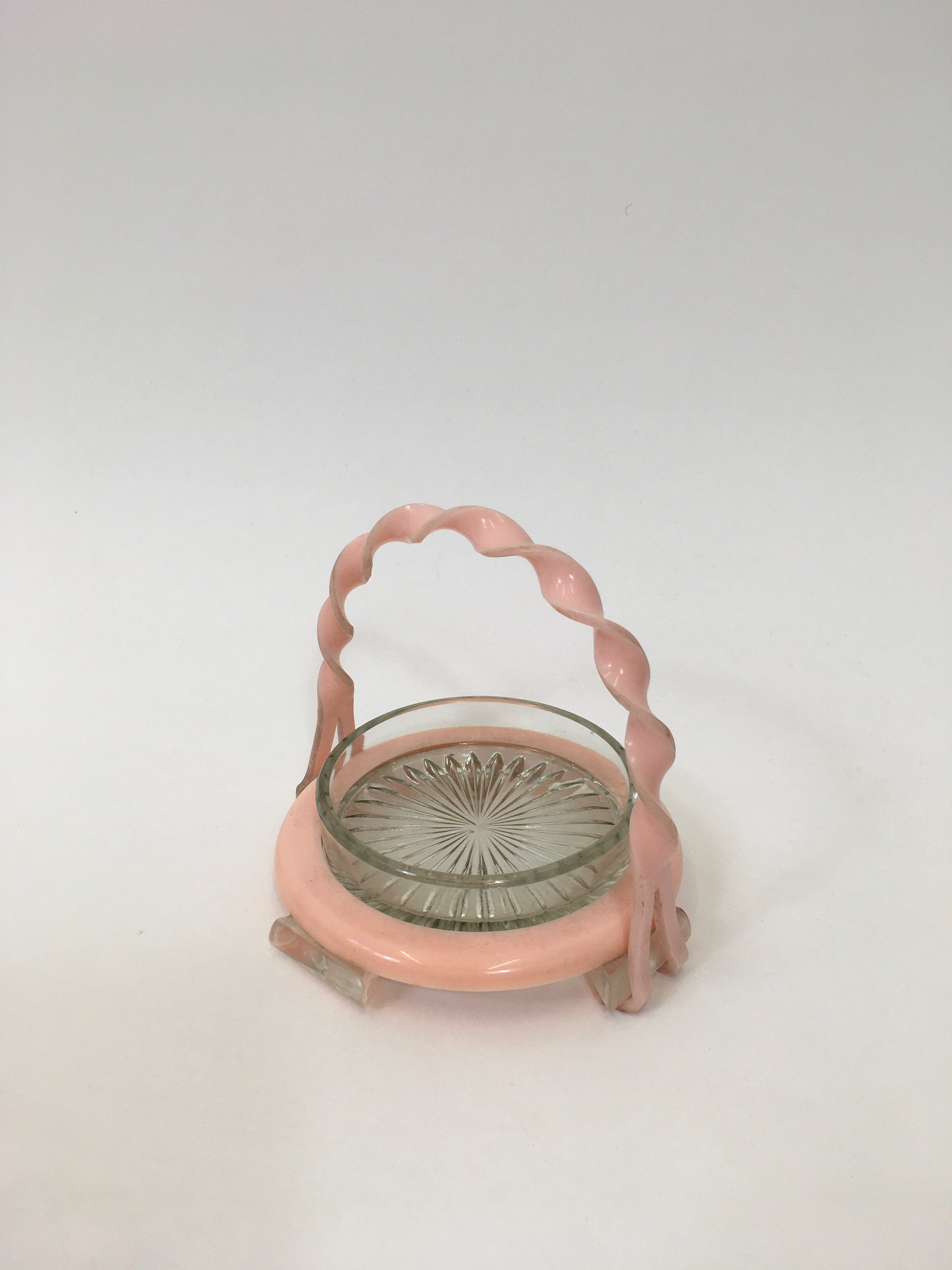 Original 1940's / 1950's Fabulous Lucite and Glass Trinket Dish - With Twisted Handle in Pastel Pink