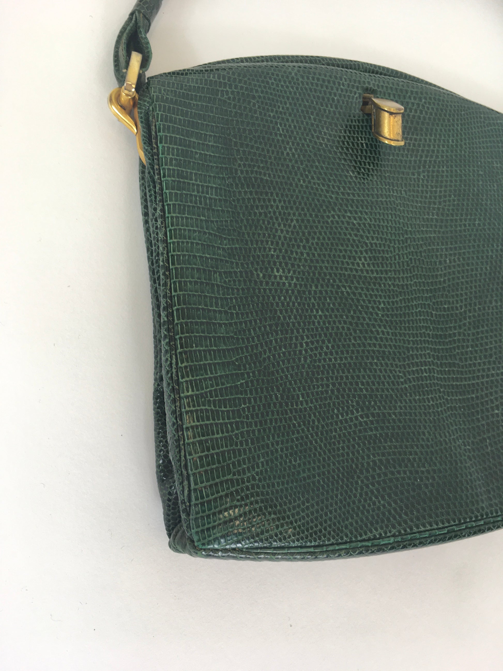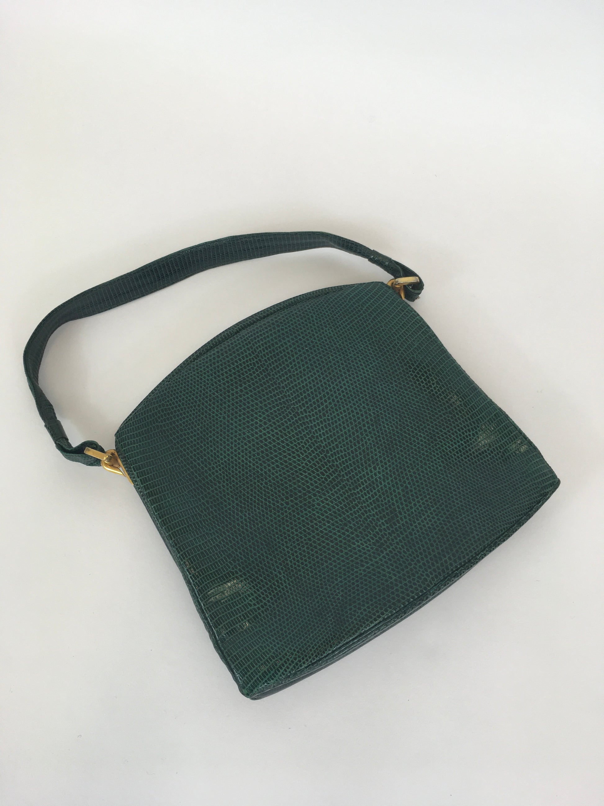 Original 1930’s Green Skin Handbag - In A Fabulous Art Deco Shape