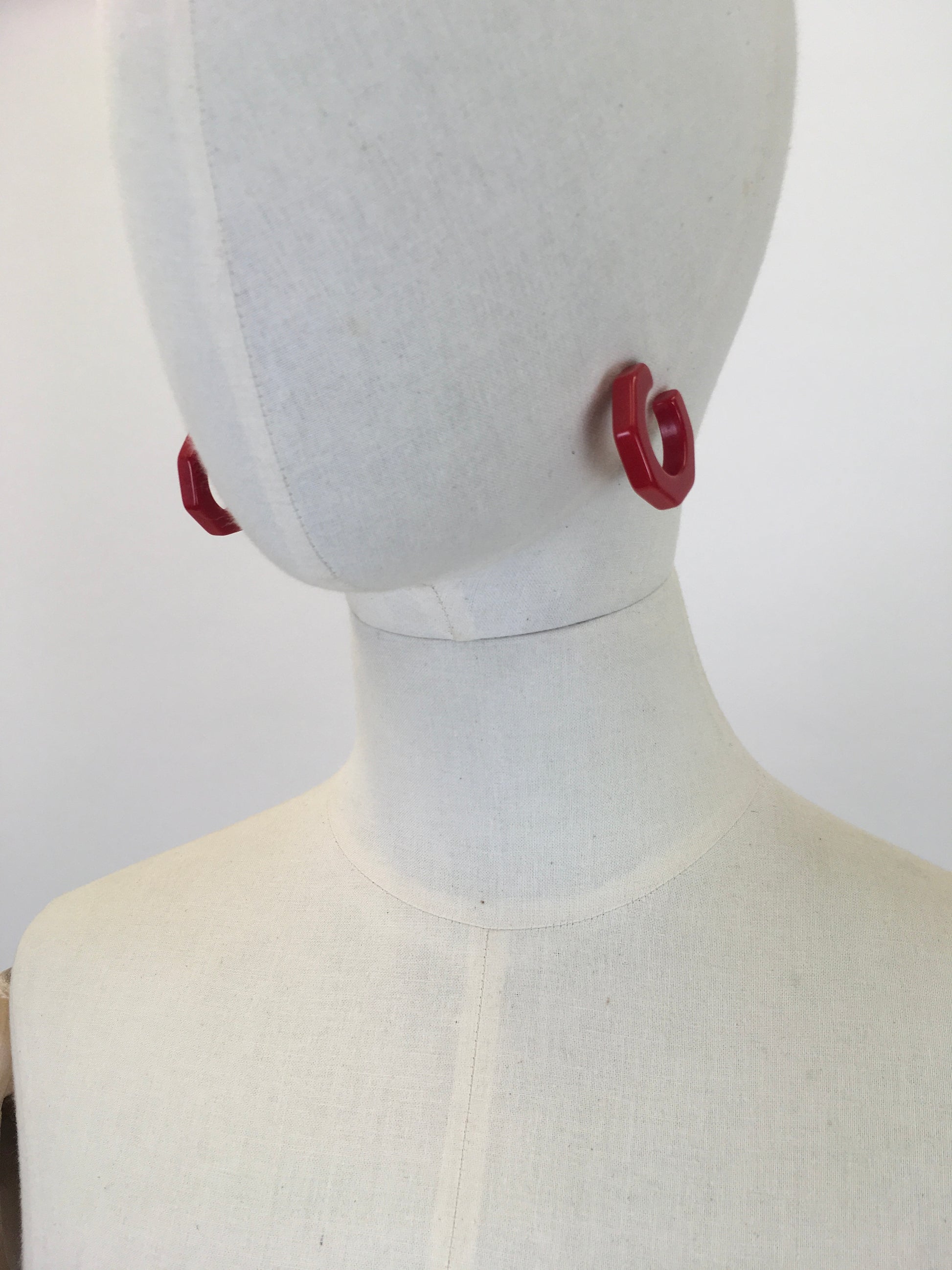 Original Darling 1950's Bakelite Earrings - In Cherry Red