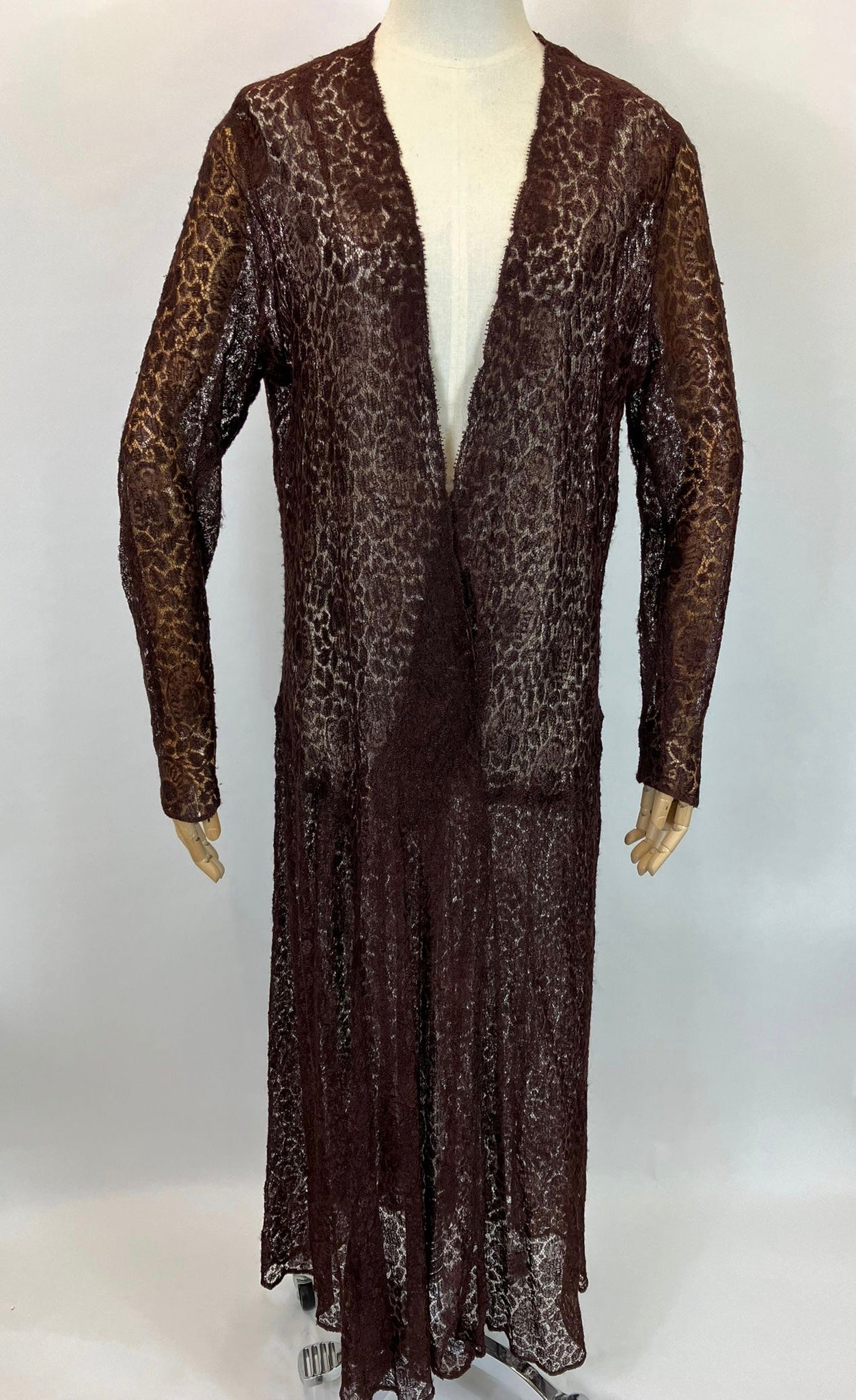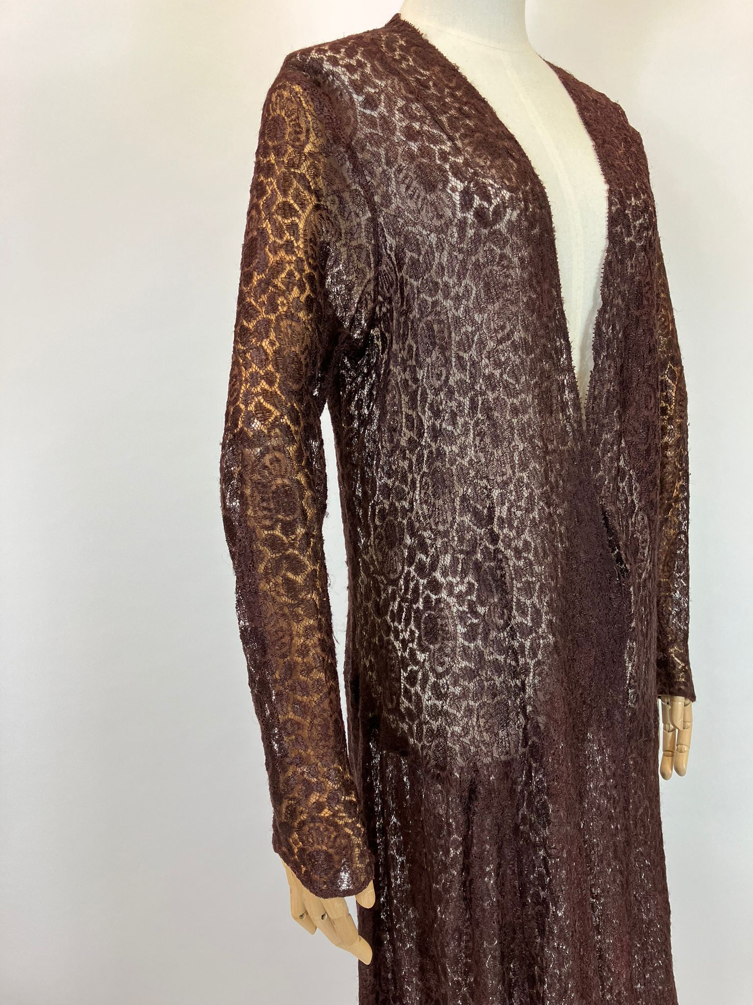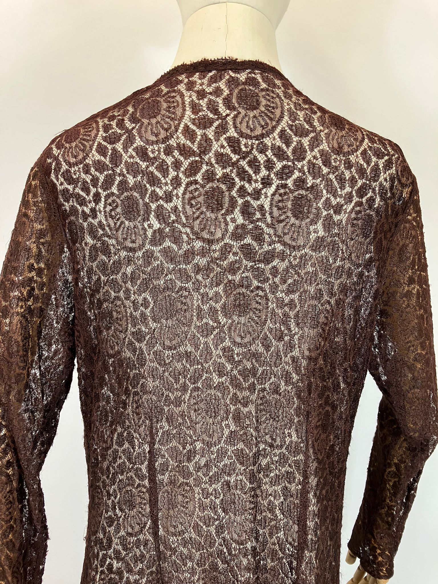 Vintage 1920's/1930's crossover lace dress in gorgeous deep brown.