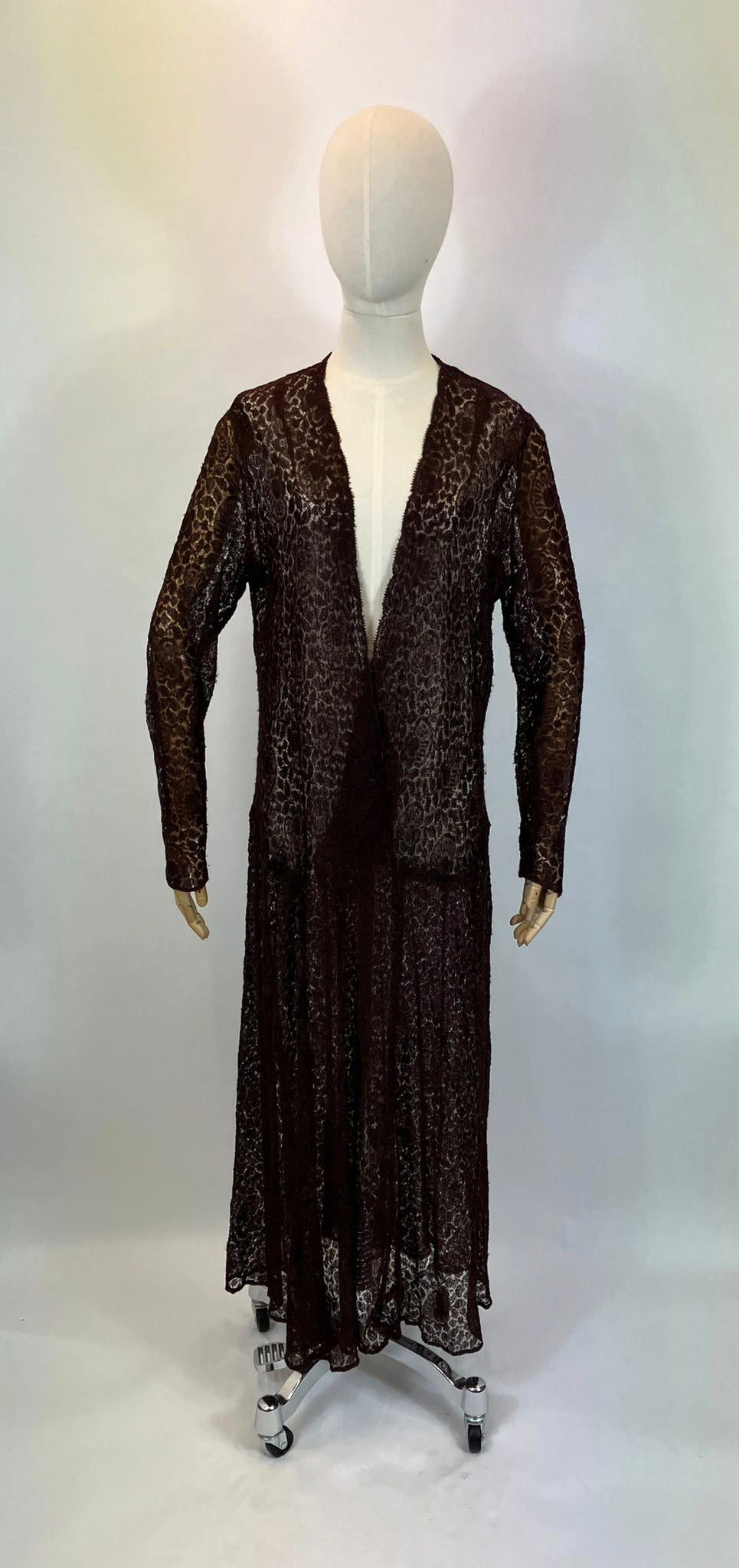 Original 1920's/ 1930's Crossover Lace Dress - in Gorgeous Deep Brown