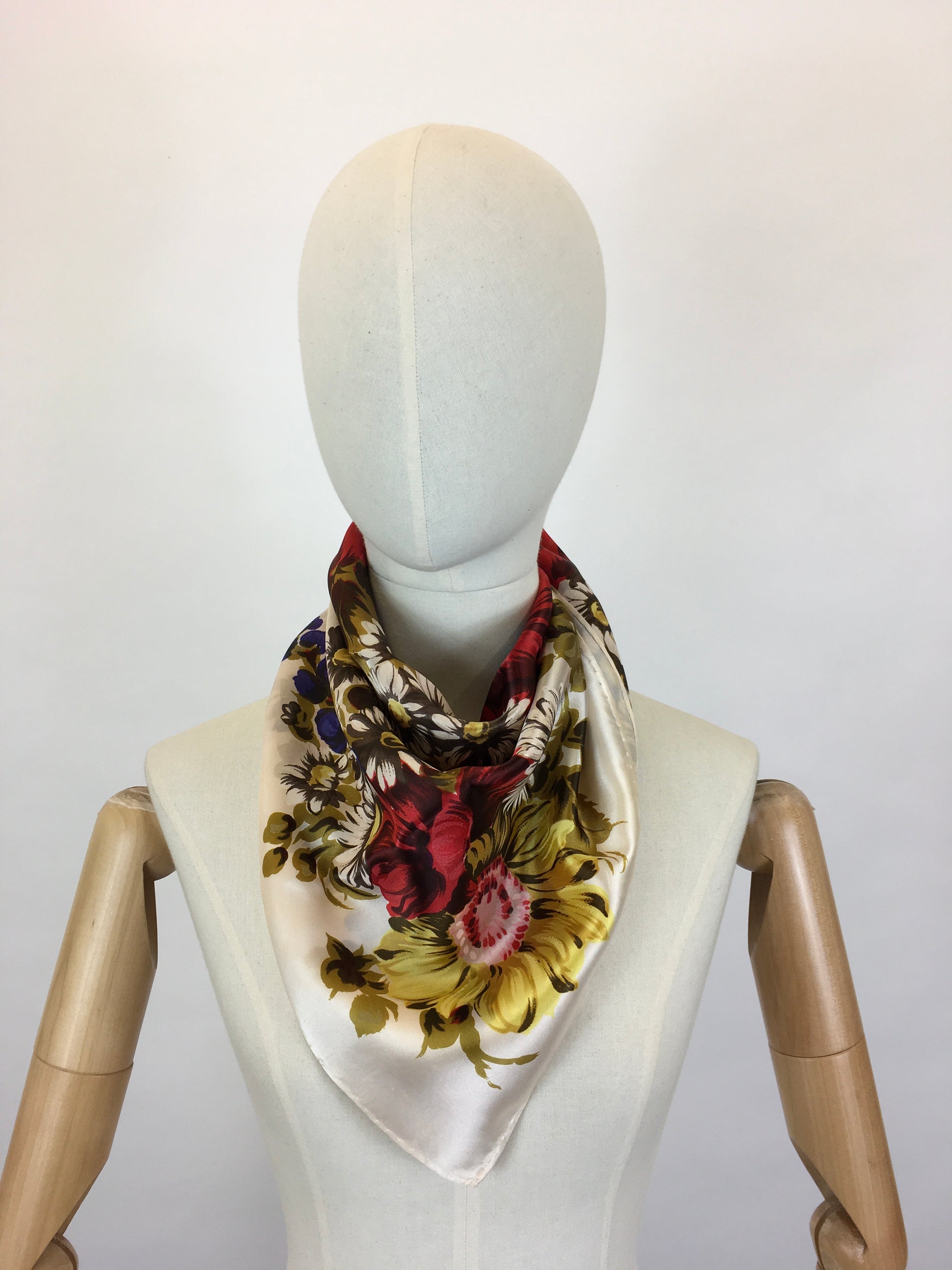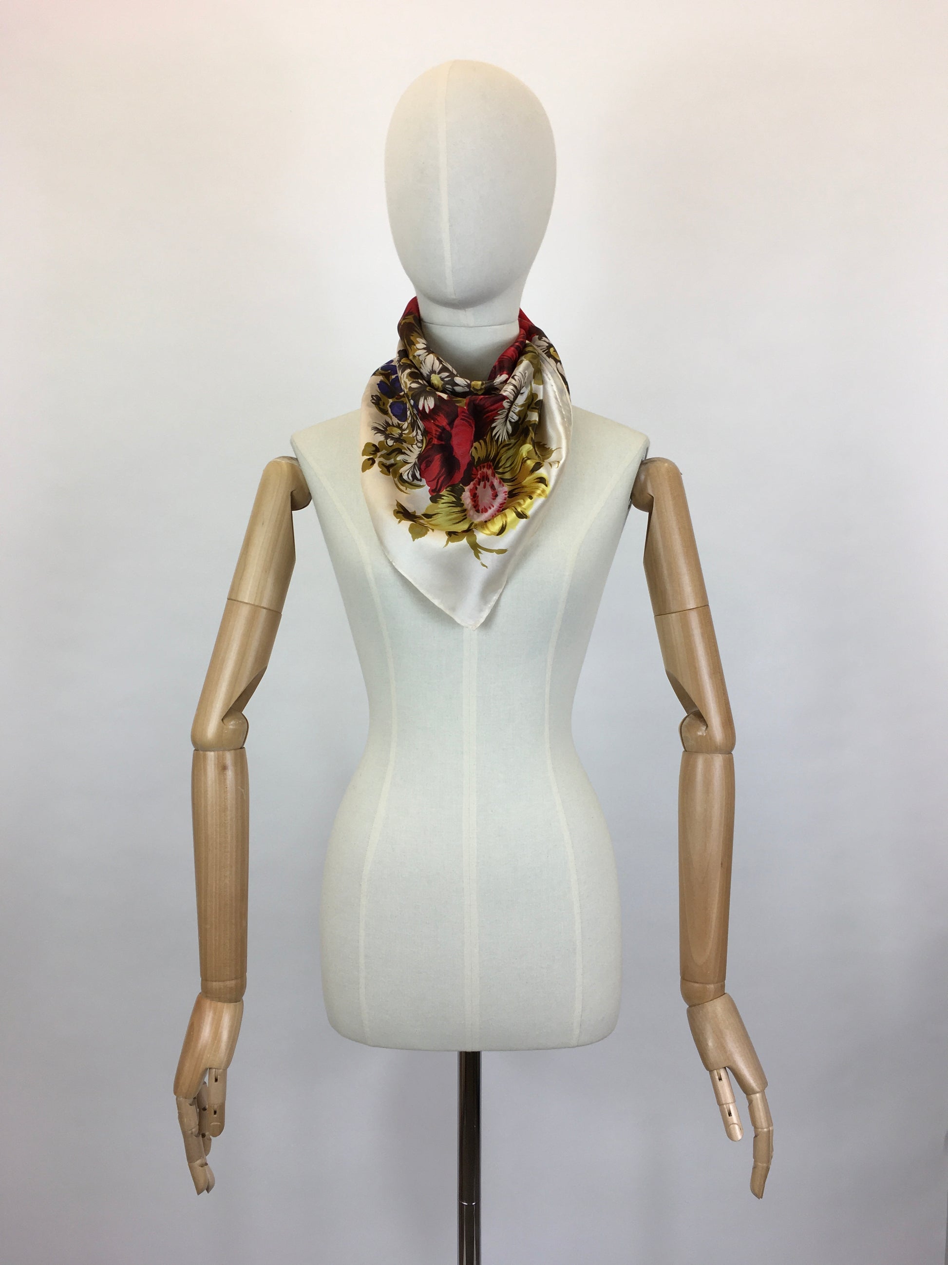 Original 1950’s Silk Floral Scarf - In A Summertime Bright Colour Palette