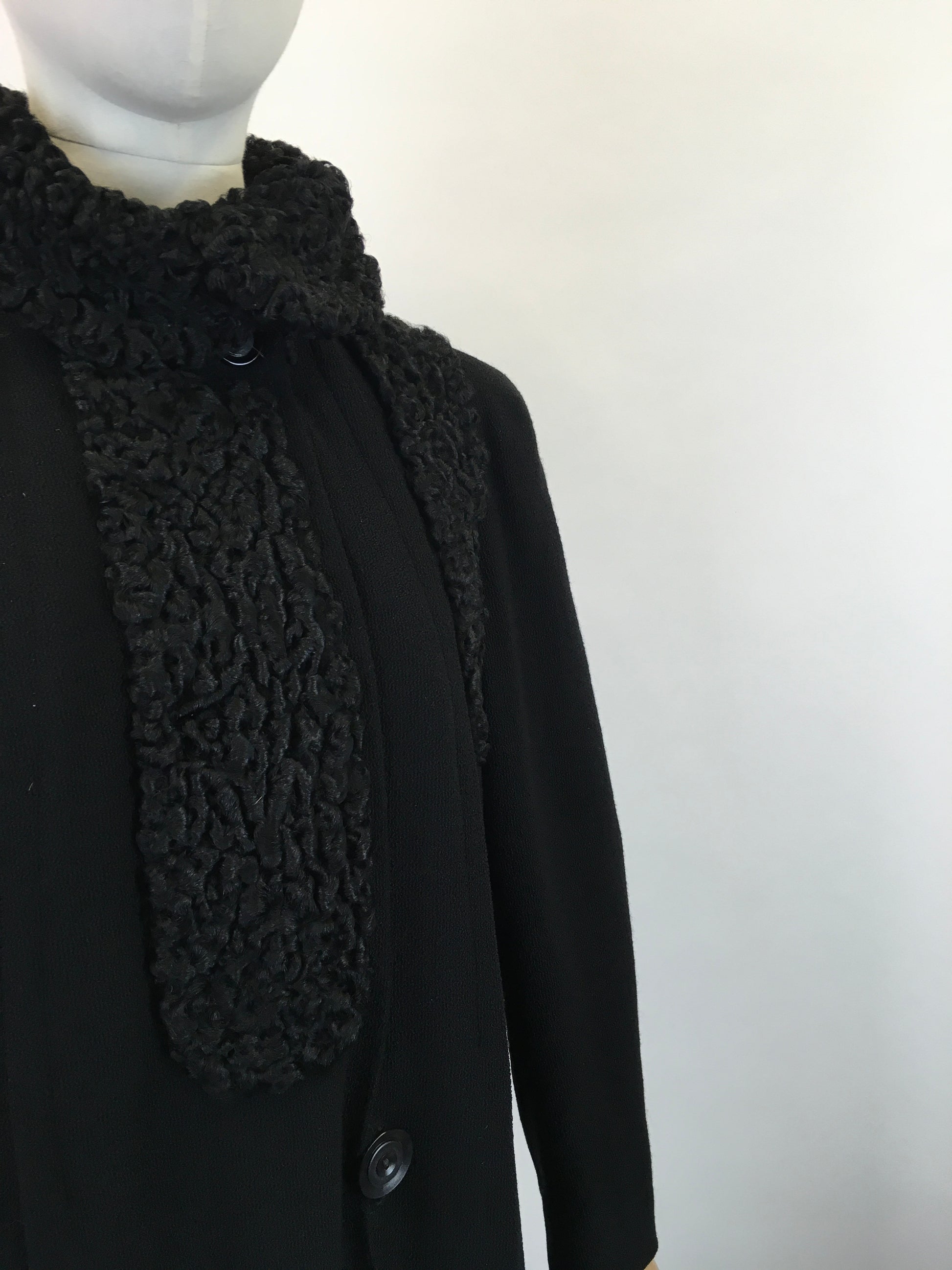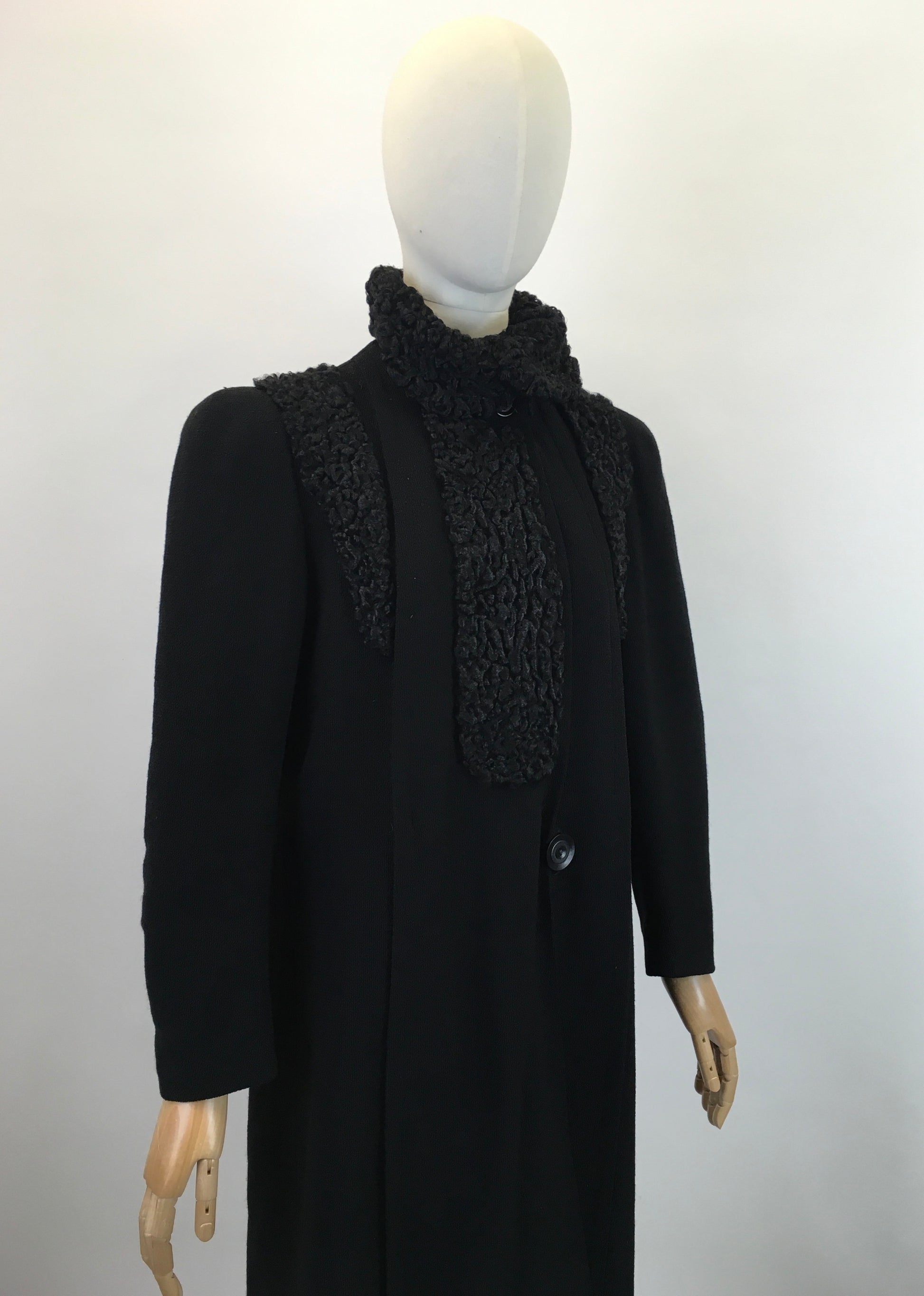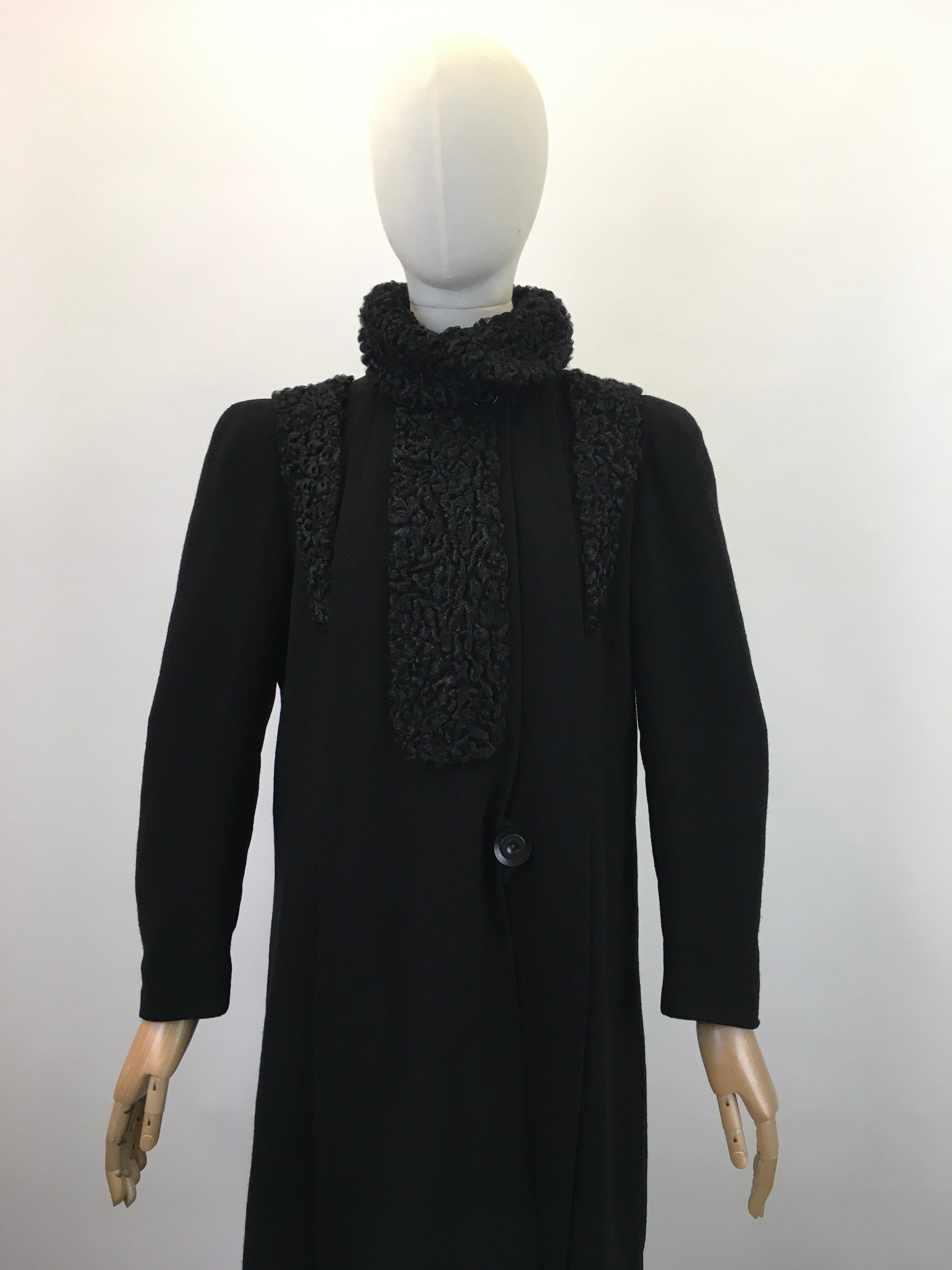 Original 1930's Sensational Black Coat - With Stunning Astrakhan Collar & Yokes
