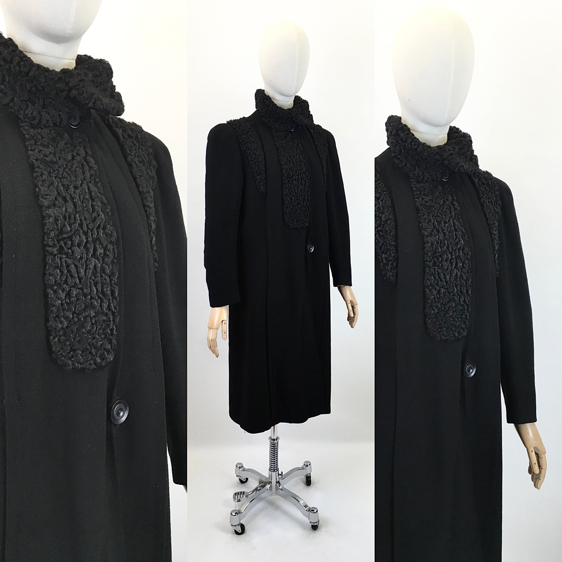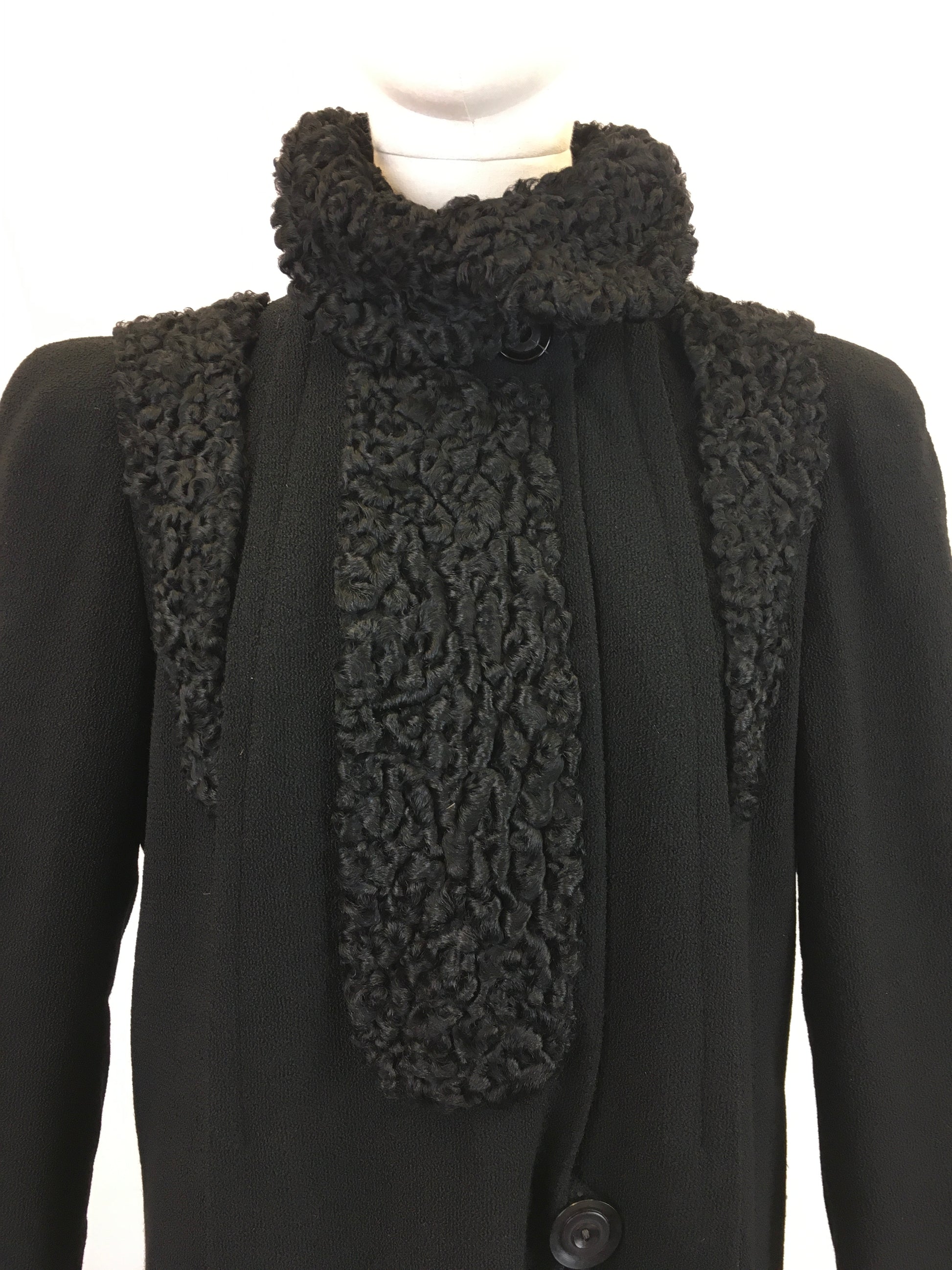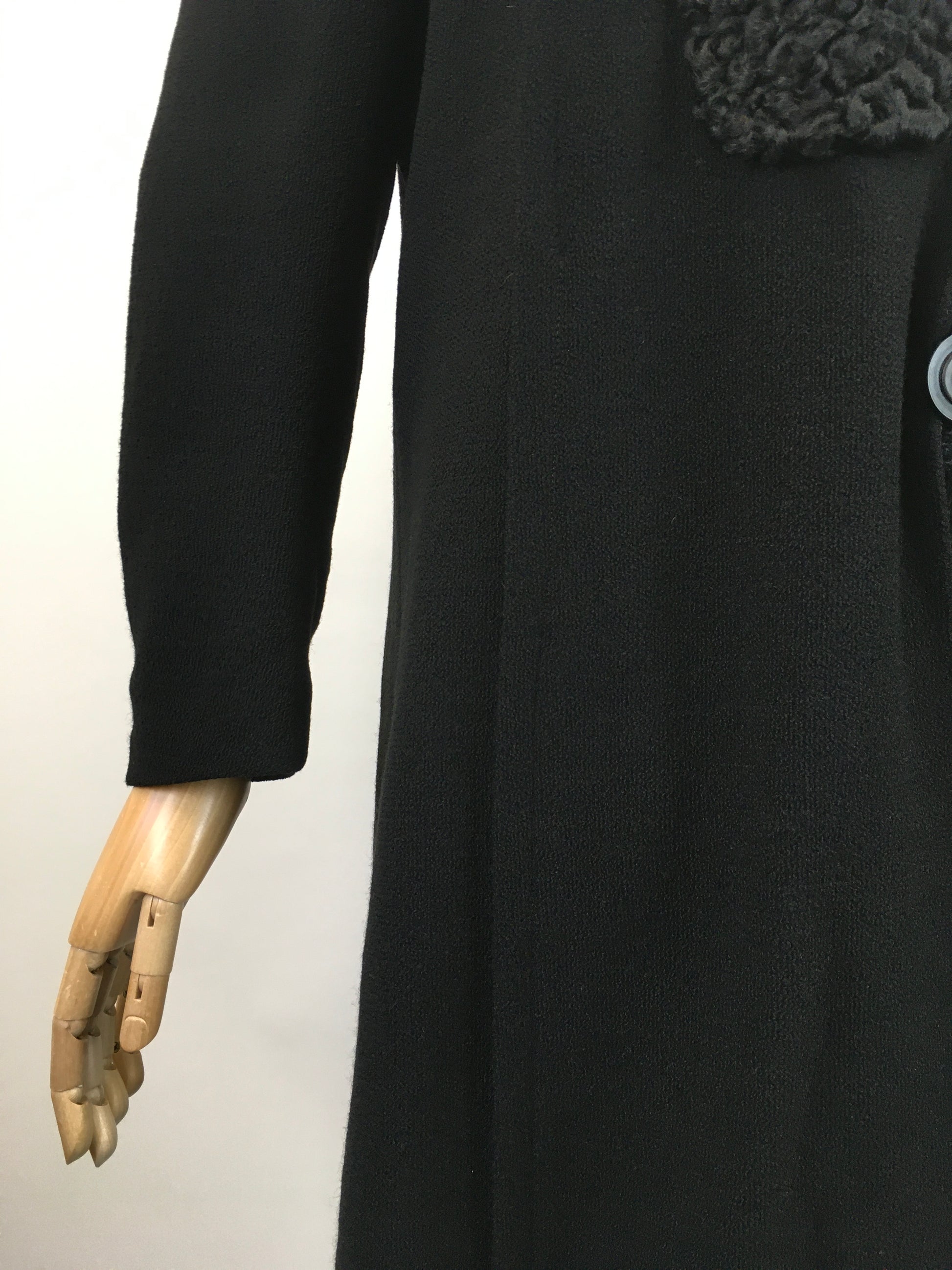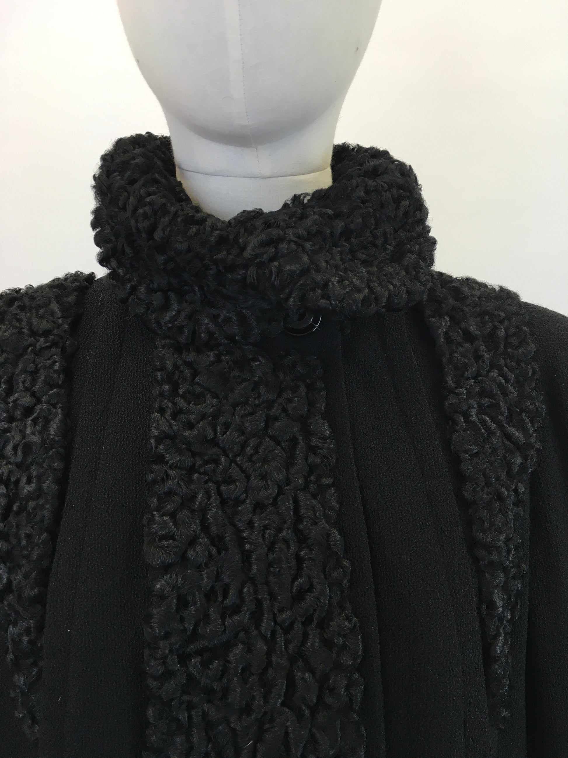 Original 1930's Sensational Black Coat - With Stunning Astrakhan Collar & Yokes