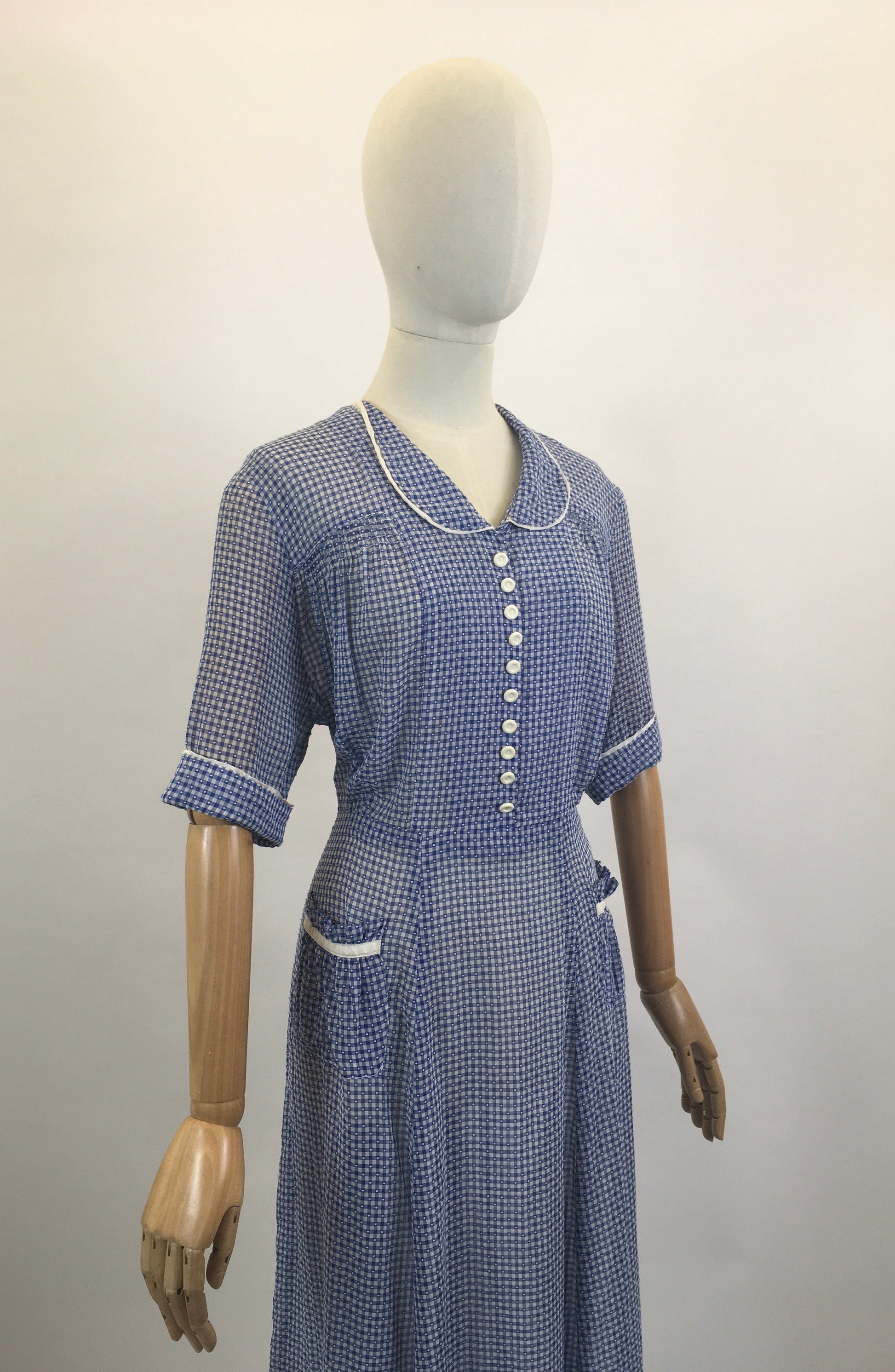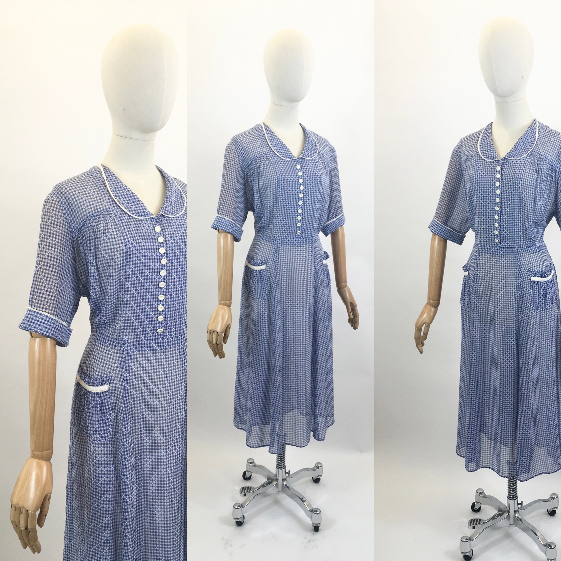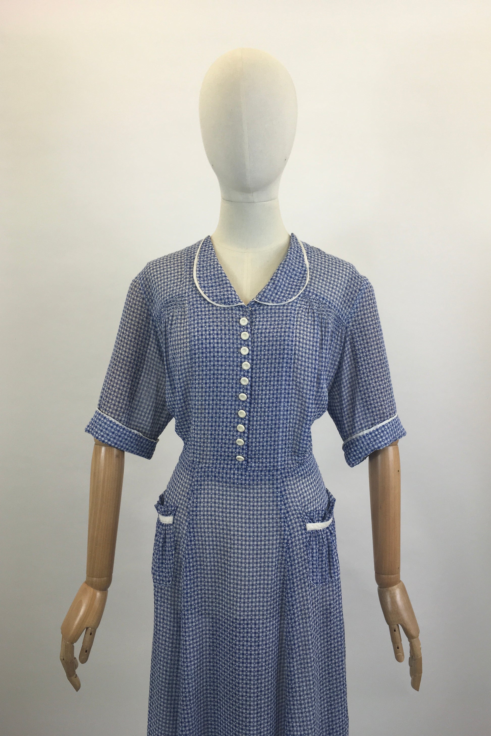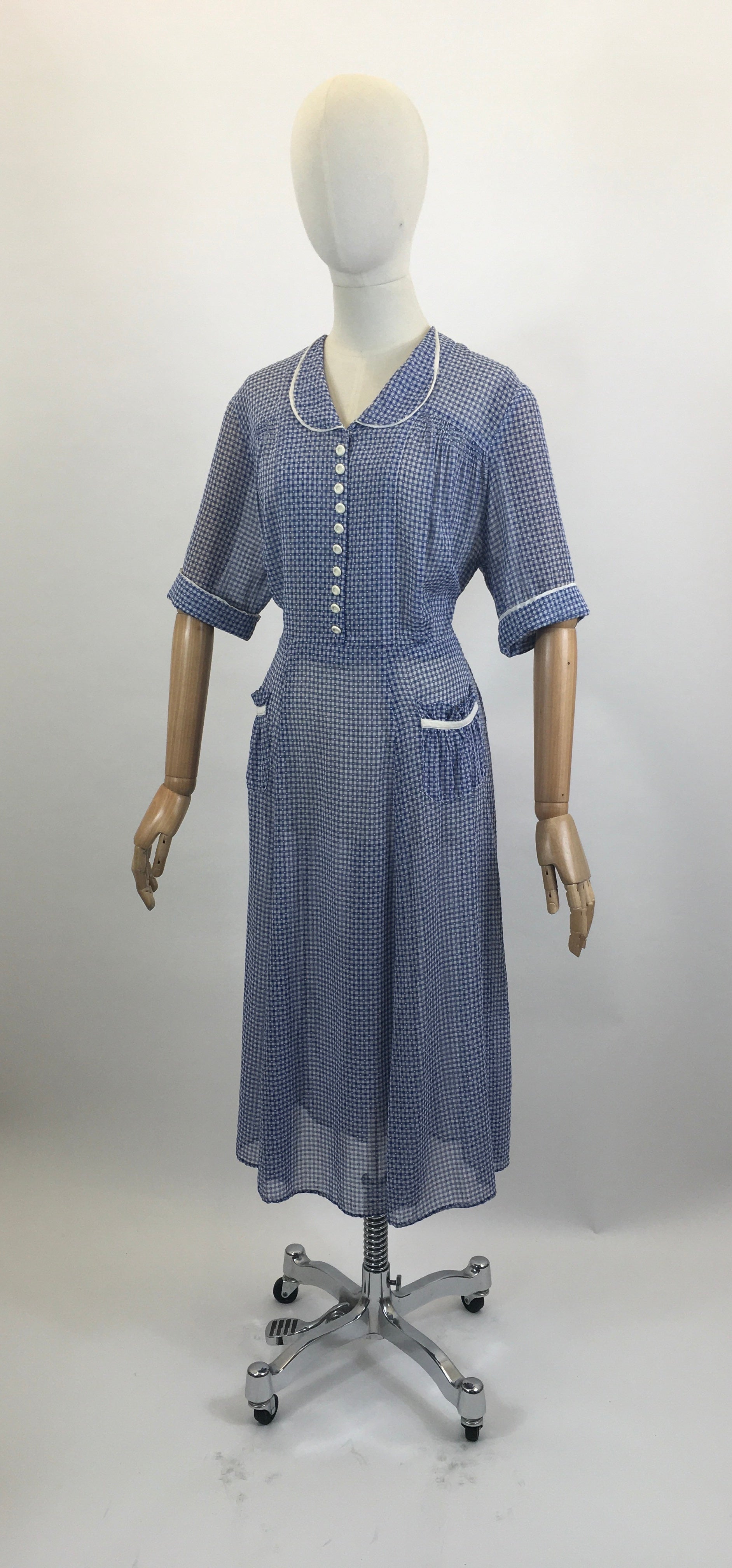 Original Late 30’s / Early 40’s Gorgeous Day dress - in Royal Blue / White gingham