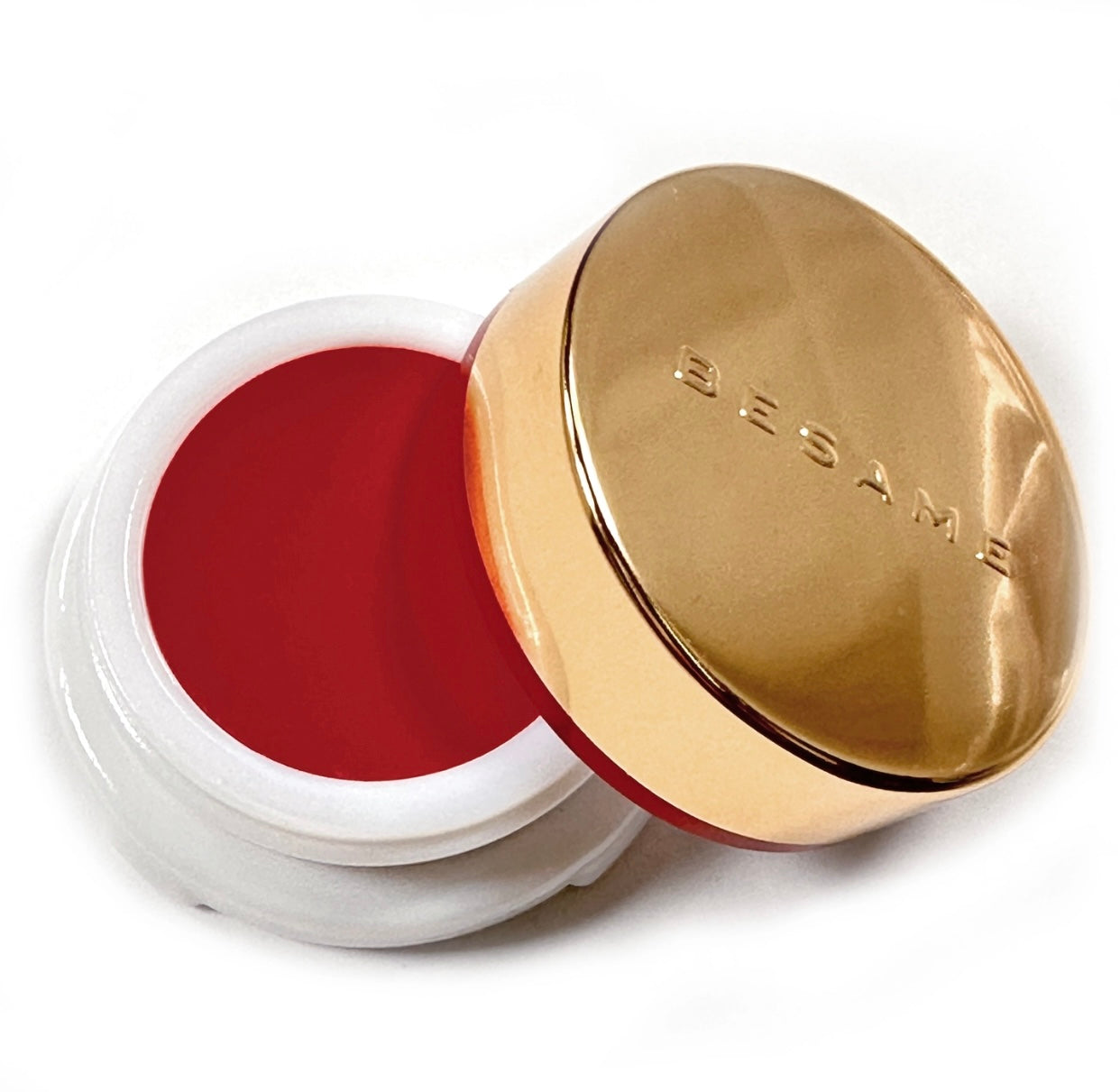 Delivered in the most beautiful (and reusable!) vintage-inspired gold and red tin, Besame rouge is the art of blush mastered over time. This concentrated Crimson Cream Rouge gives a natural rosy color with a hint of coral. Our unique highly-pigmented cream formula swipes effortlessly onto both lips and cheeks, delivering a natural, weightless flush with just a finger. Highly pigmented, easy-to-blend, long-wearing matte finish. Works flawlessly on both cheeks and lips. Vintage-inspired reusable or recyclable tin. Meticulously formulated for sensitive skin.