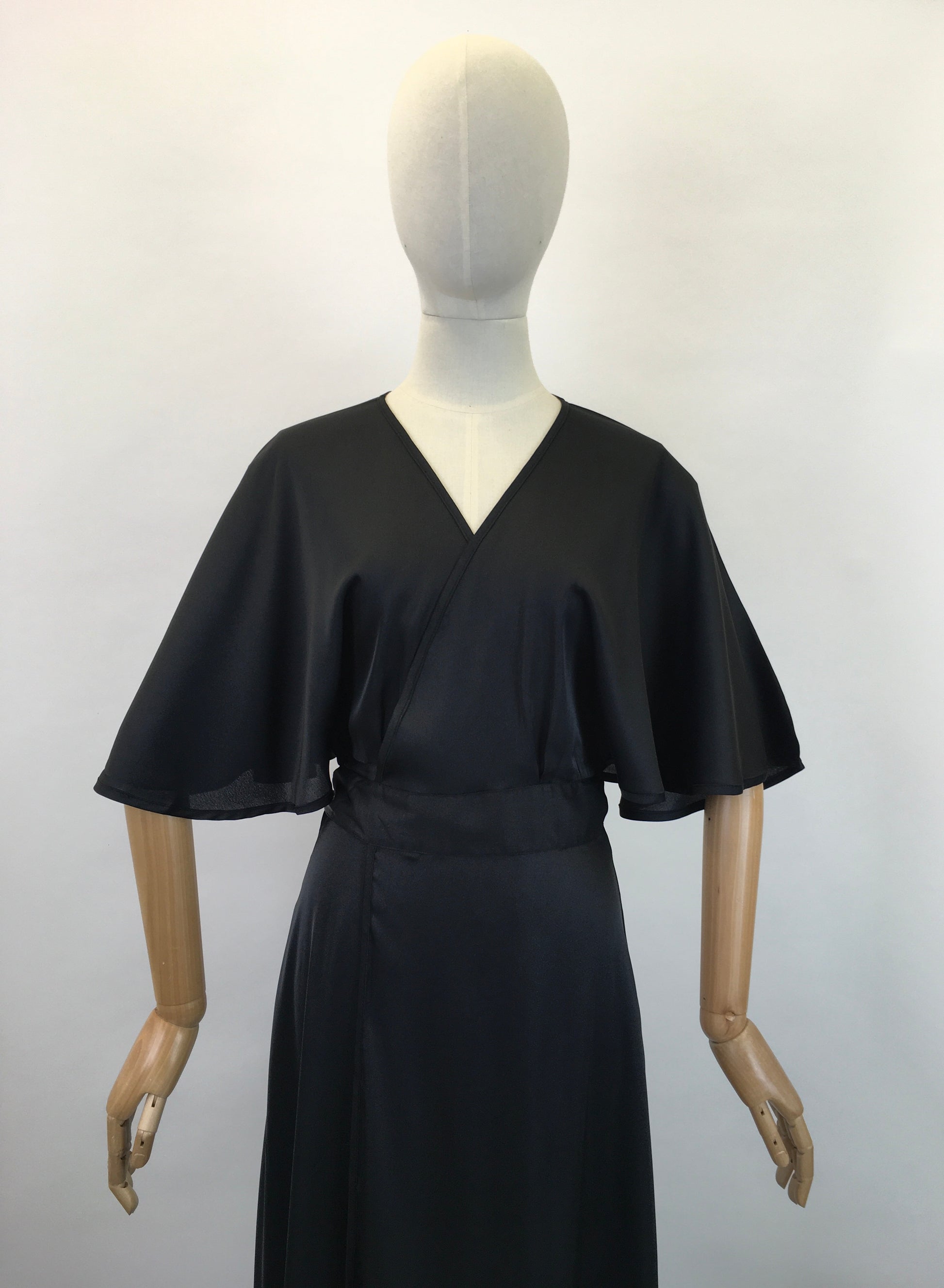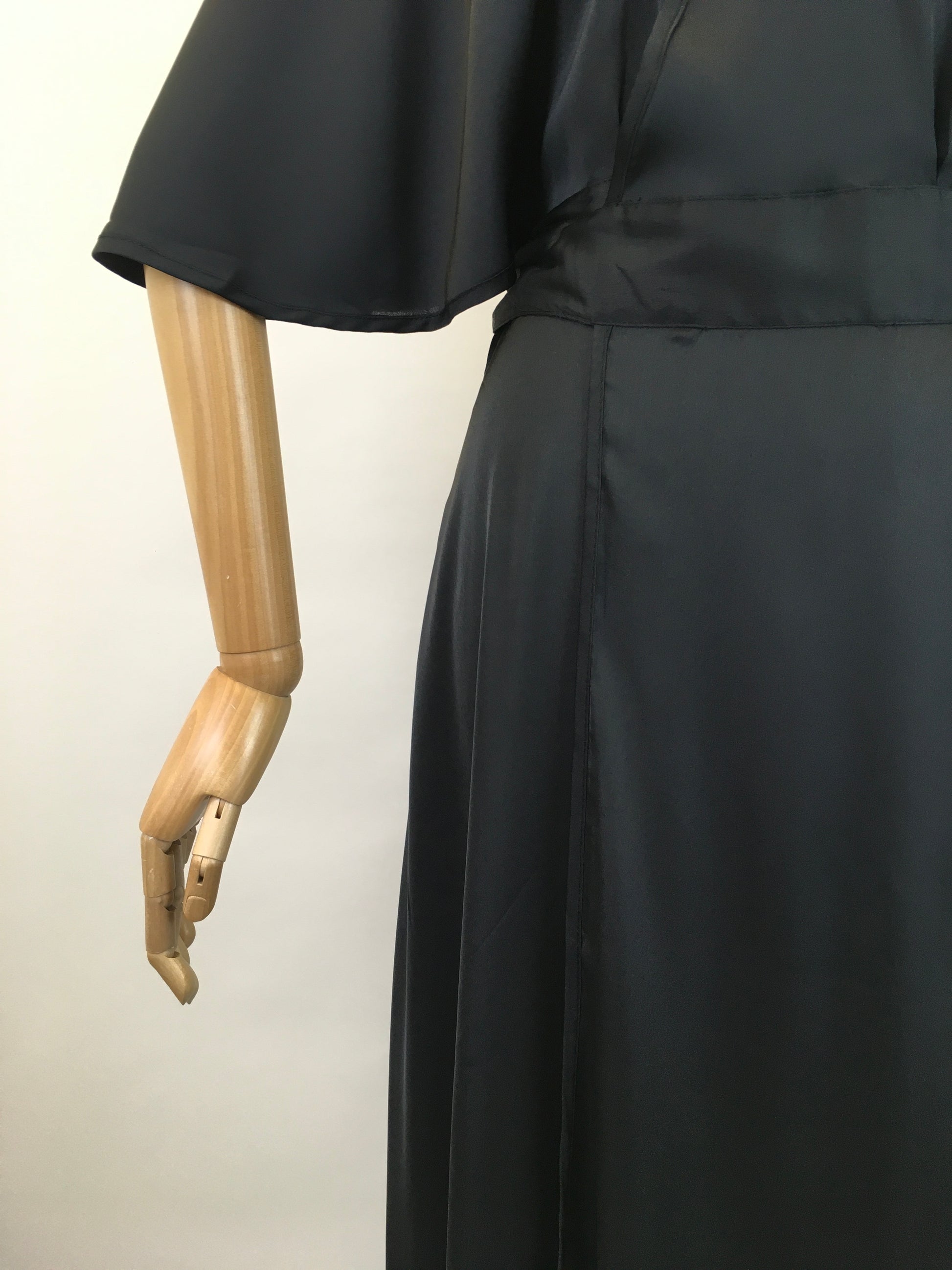 A delightful 1930’s lounging robe by our friends at What Katie Did. Inspired by the loungewear from the Golden Age of Hollywood. This luxurious floor length robe is made from the softest satin in both peach and black colour ways. The wrap style, tied in a bow at the back, emphasises your curves while the 1930’s style butterfly sleeves are an authentic vintage feature.
