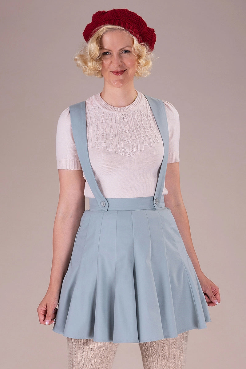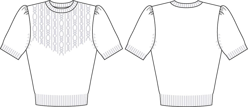 Introducing the sweater girls staple sweater from our friends over at Emmy Designs of Sweden. This is a fabulous new design which features short sleeves, high round neckline, longline design with ribbed hem and a beautiful cable knit front panel similar to that of the bestselling Iceskater cardigan. It looks lovely worn on its own tucked into high waisted slacks, skirts or jeans or equally as fabulous worn with an Emmy Design Iceskater cardigan to create a twin set.