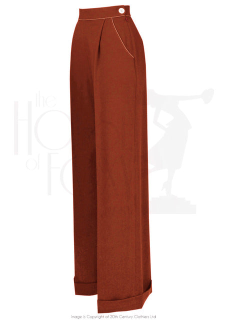House Of Foxy 1940’s Hepburn Pleated Trousers in Rust