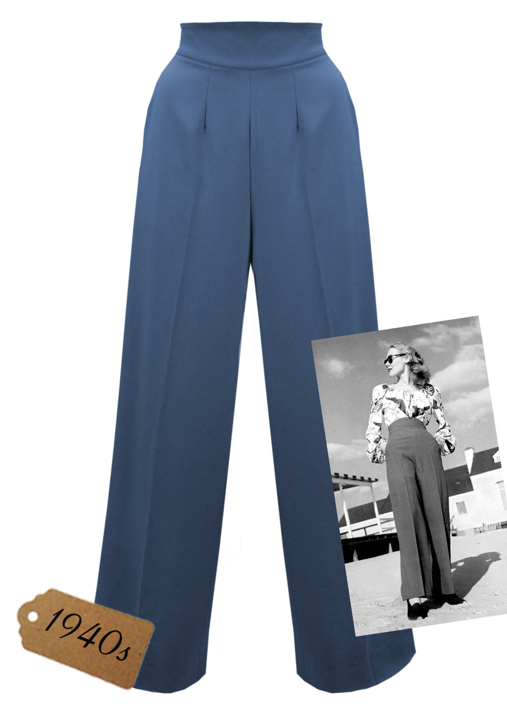 House Of Foxy 1940’s Rosie Trousers in Airforce Blue