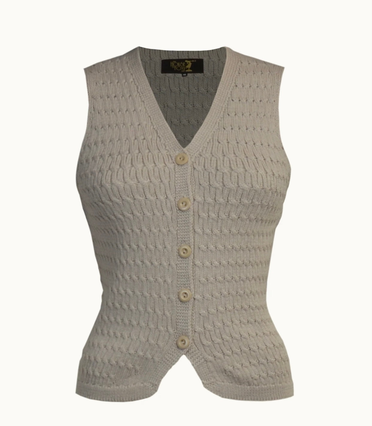 House Of Foxy Reproduction Knitted Waistcoat in Pearl