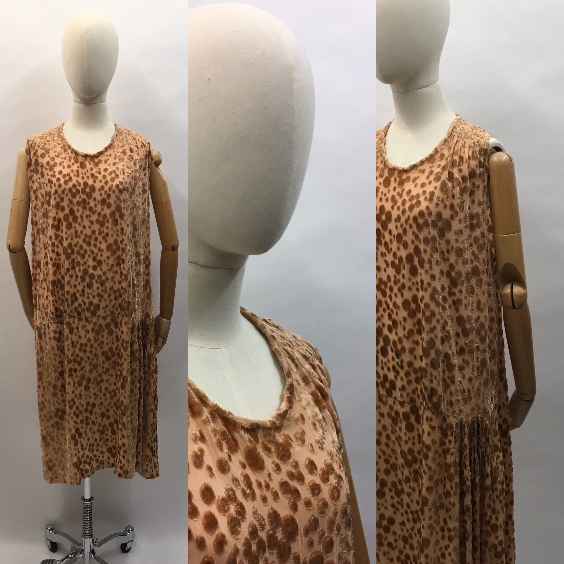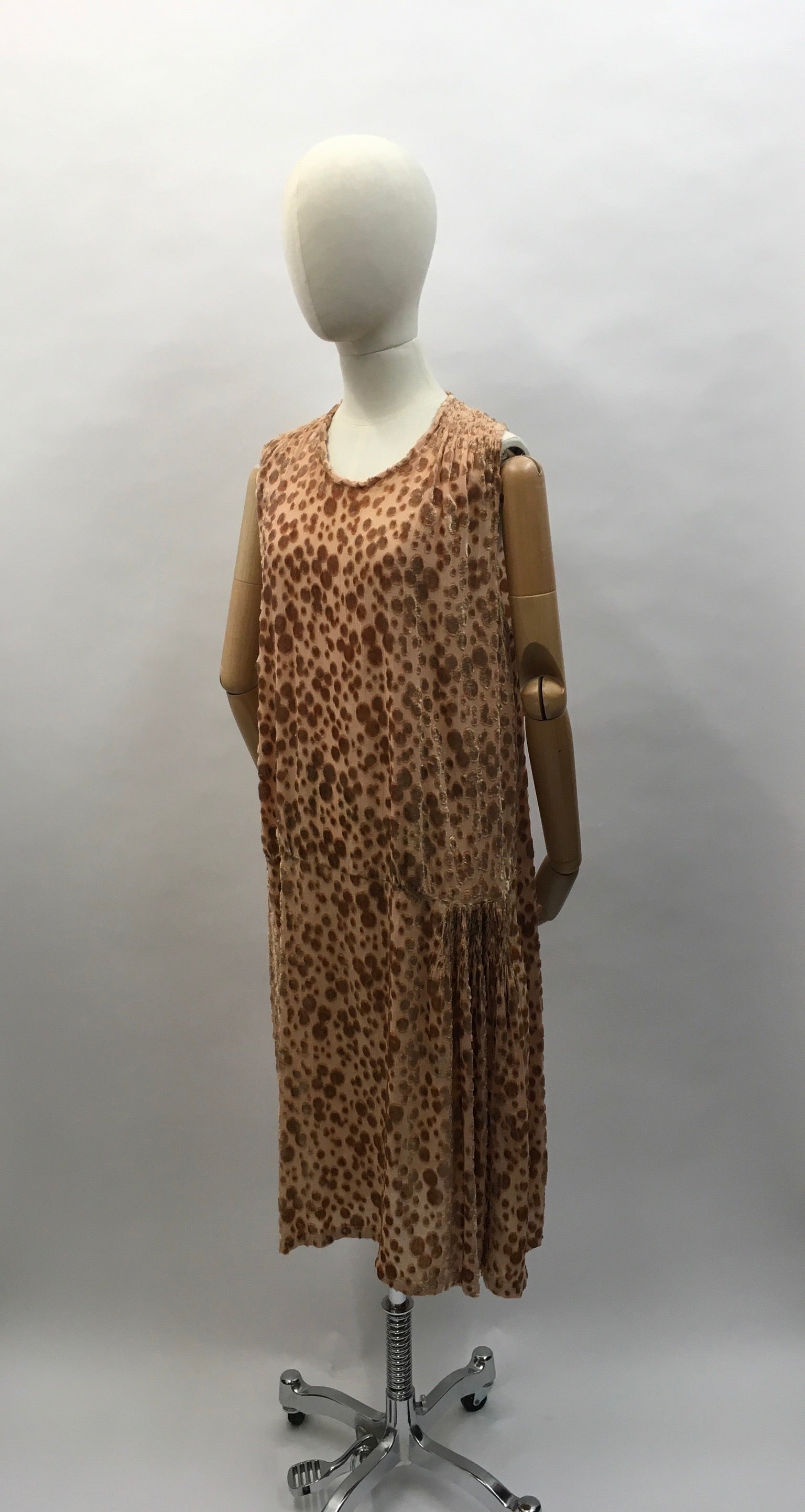 Original 1920’s Devore Dress - In a soft beige tone featuring ruched detailing