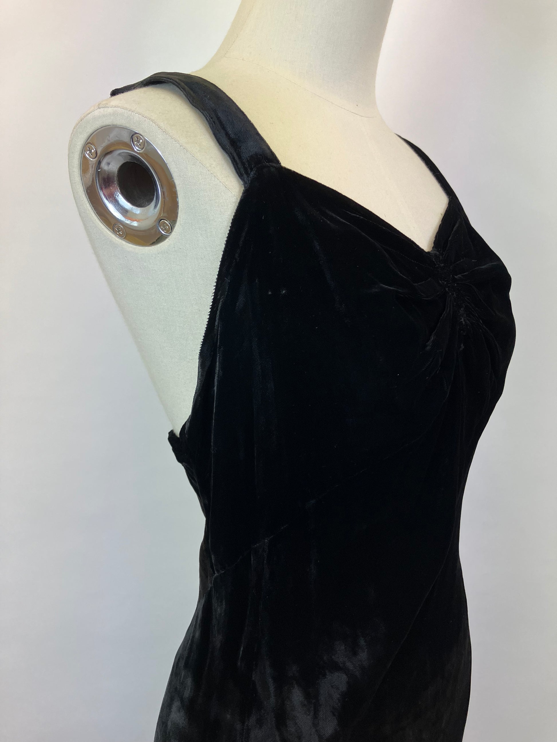 A gorgeous soft velvet evening gown with wide straps. Centre ruched bust detail and lovely drape to ling gown. The back has centre hook n eye fastenings within a bias cut panel down the back, which drapes amazingly, giving a fabulous silhouette.