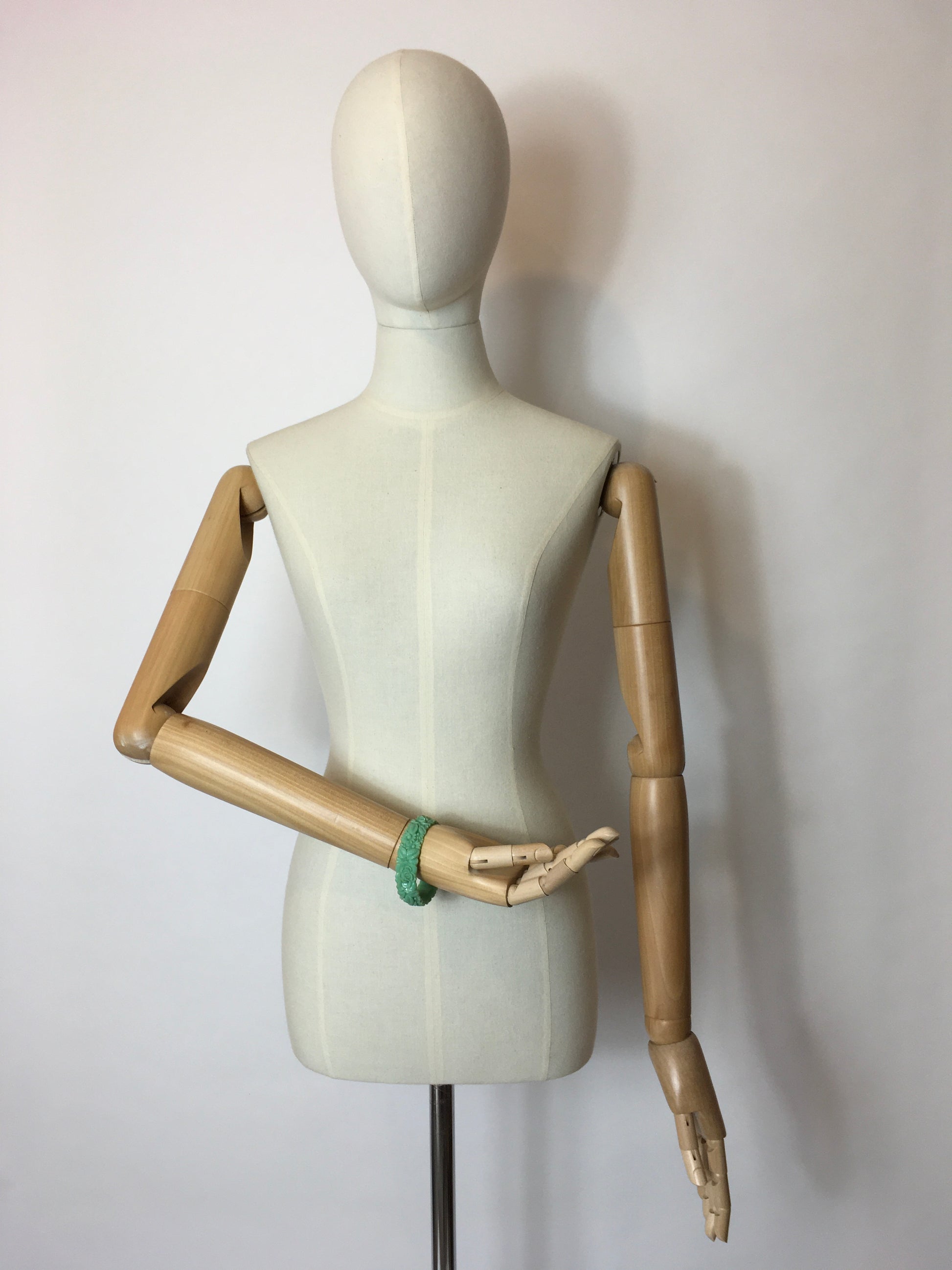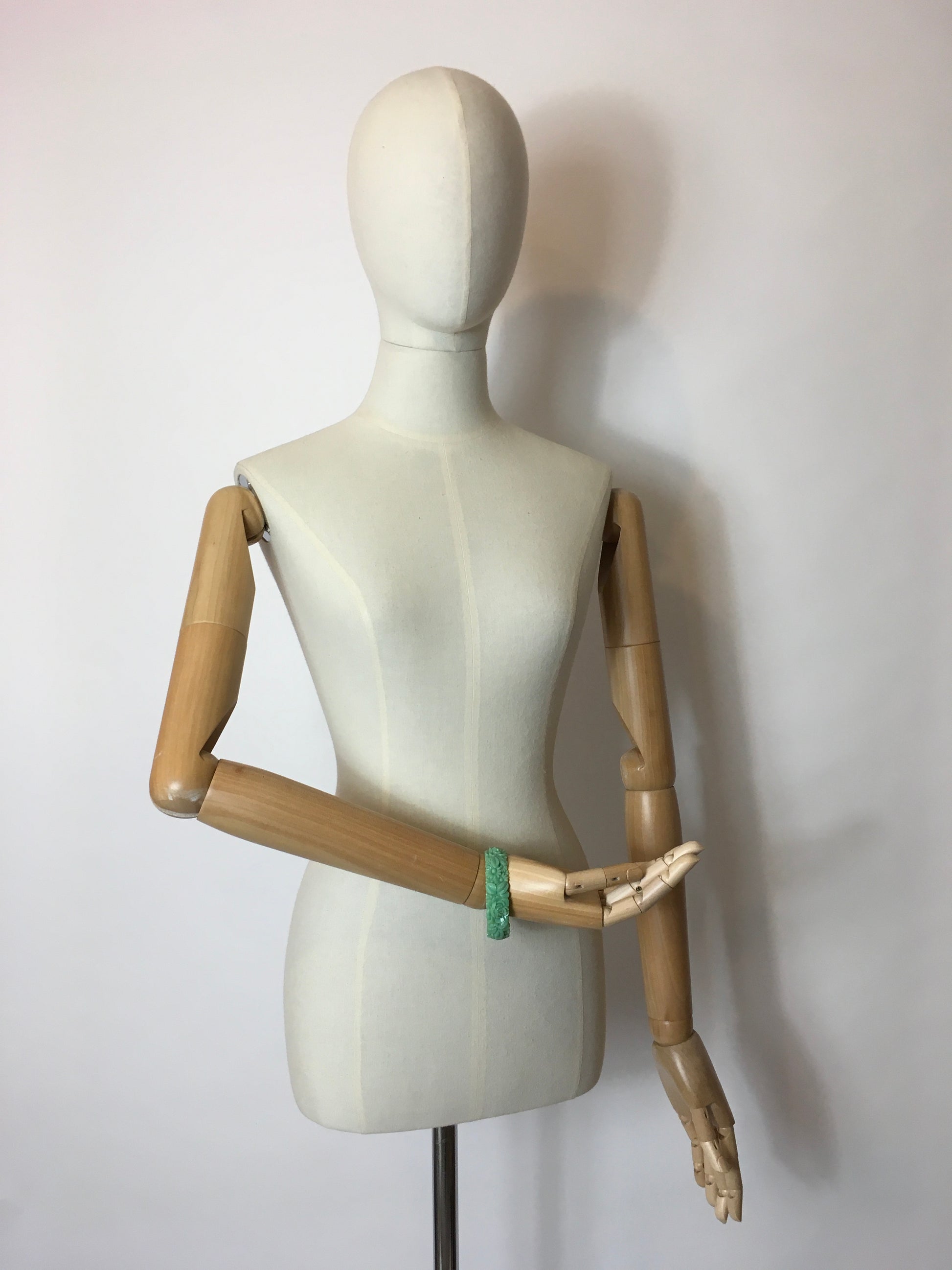 Part of our curated collection for the fashion show ‘ A look into 1930’s fashions ‘ exclusive to the Festival of Vintage, York we have this beautiful mint green carved floral 1930’s celluloid bangle. In beautiful condition.