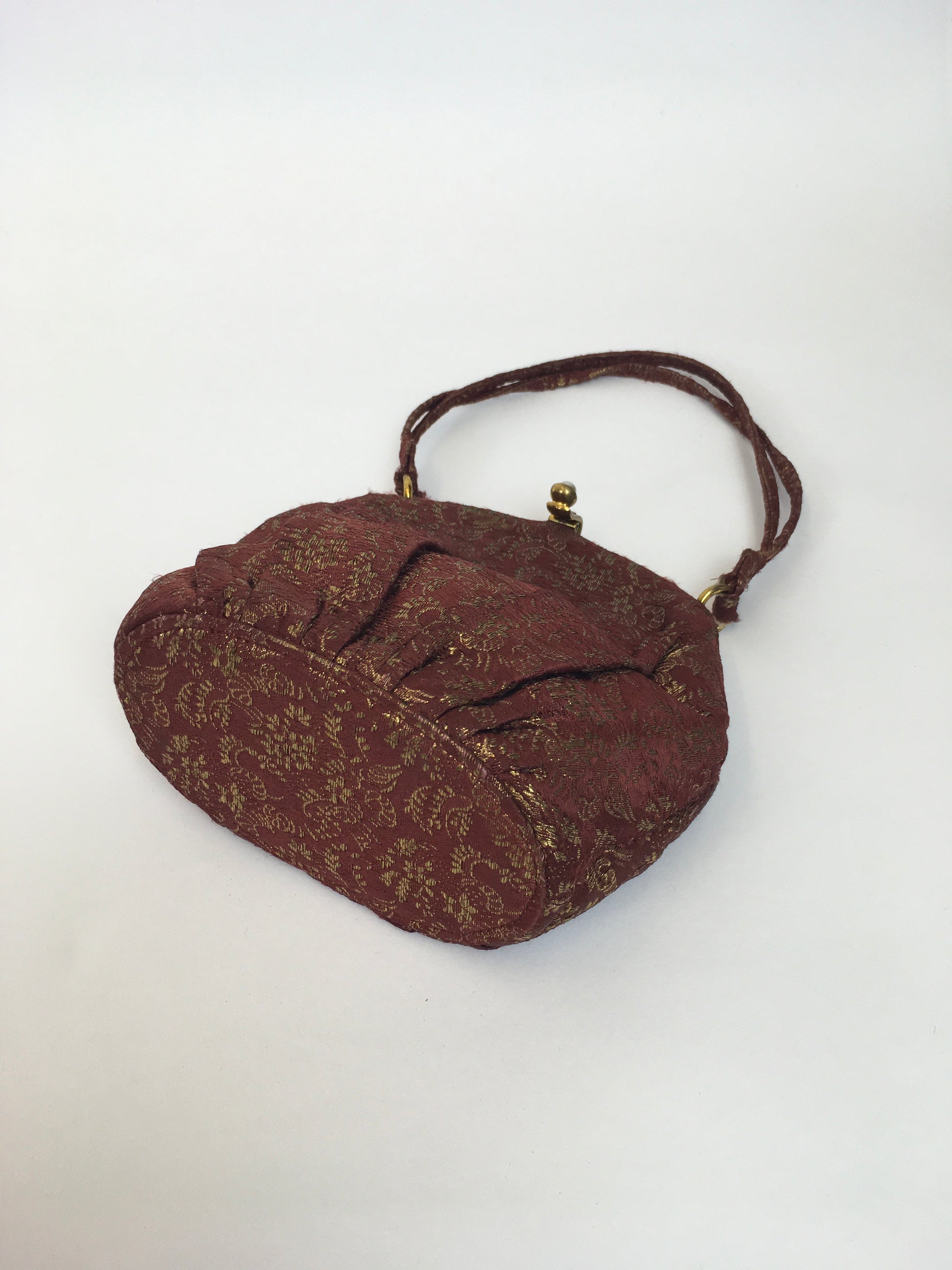 Original 1930’s Lame Evening Bag - In A Beautiful Burgundy with Gold Lame Floral Brocade