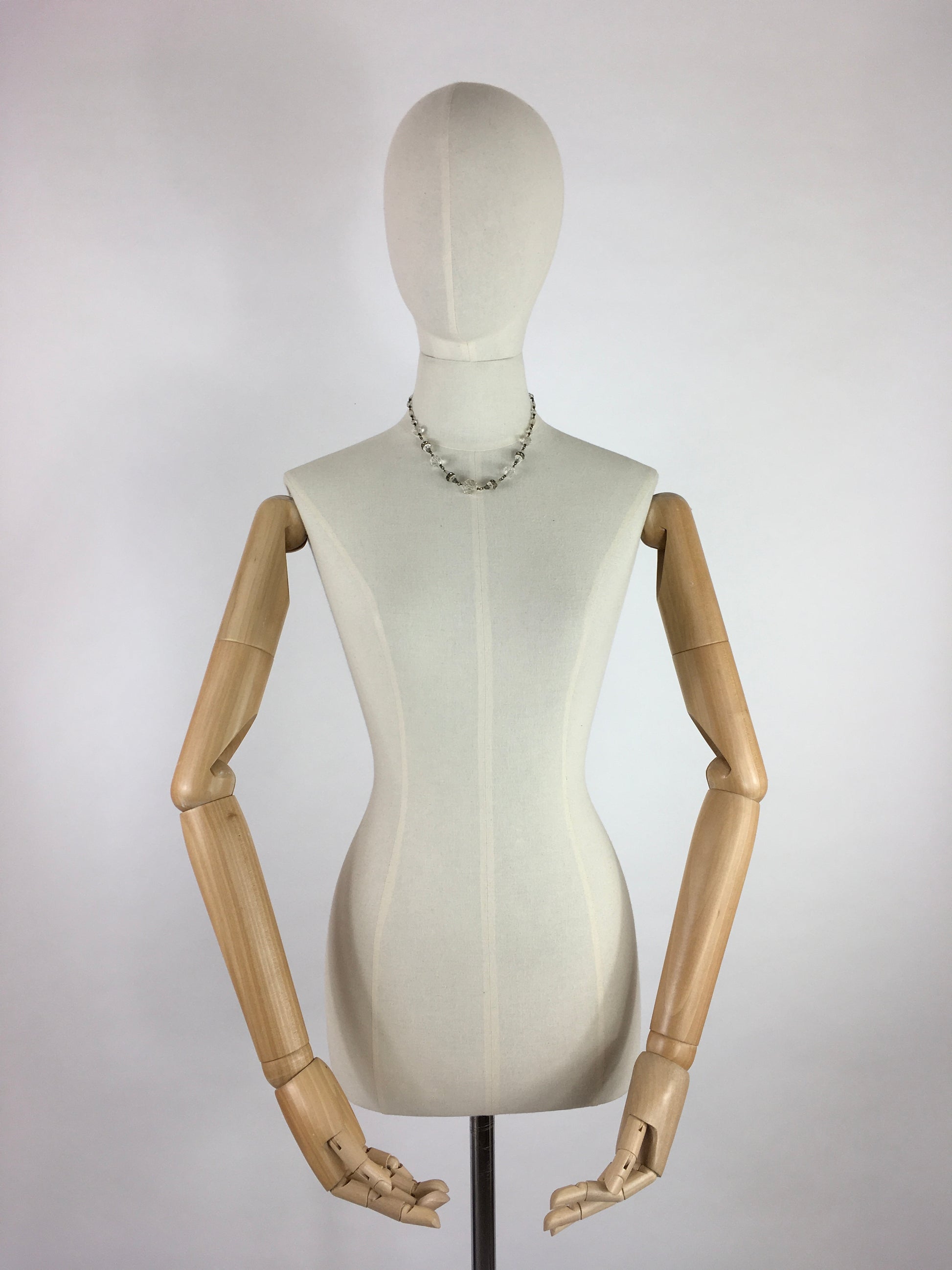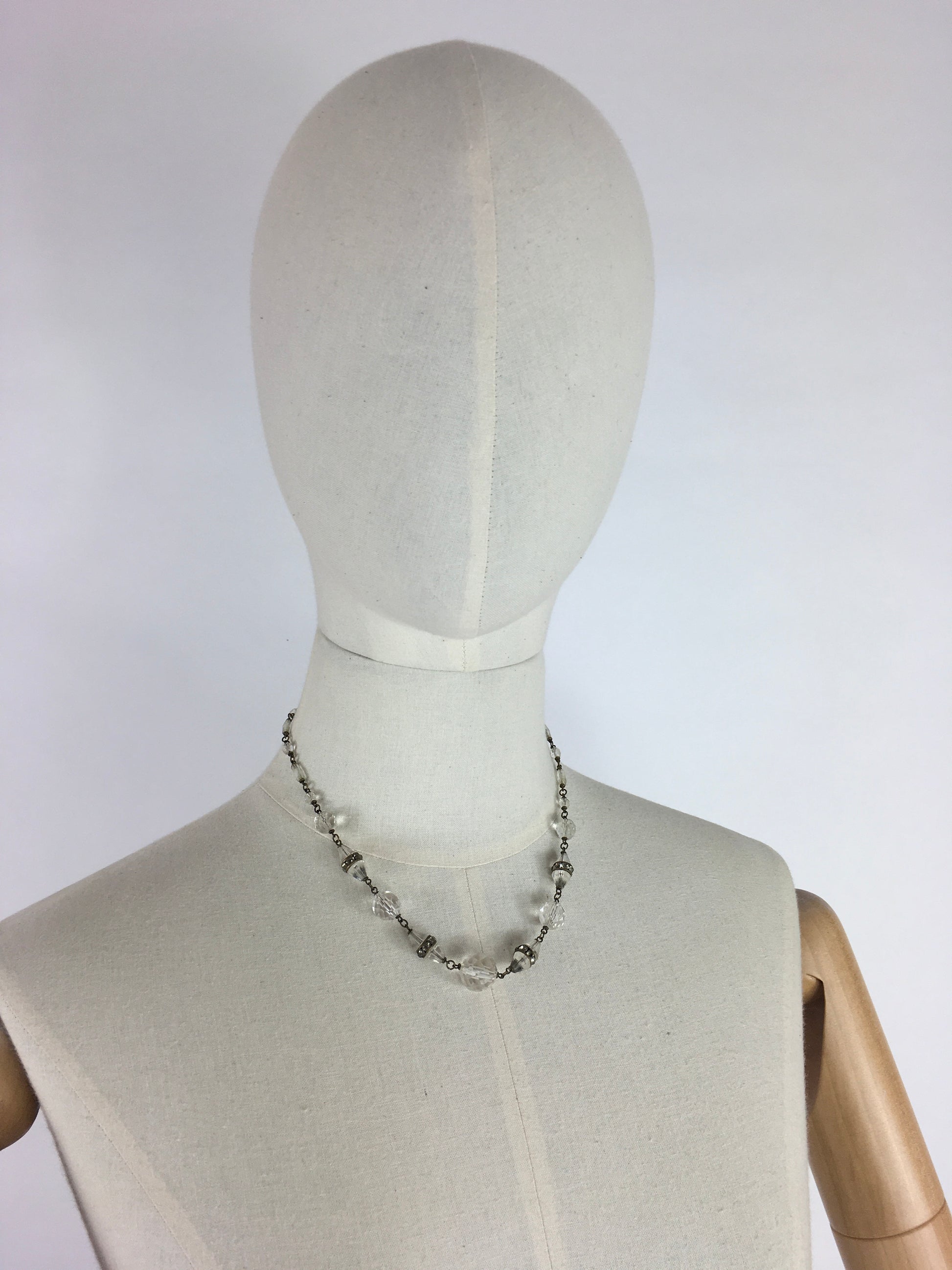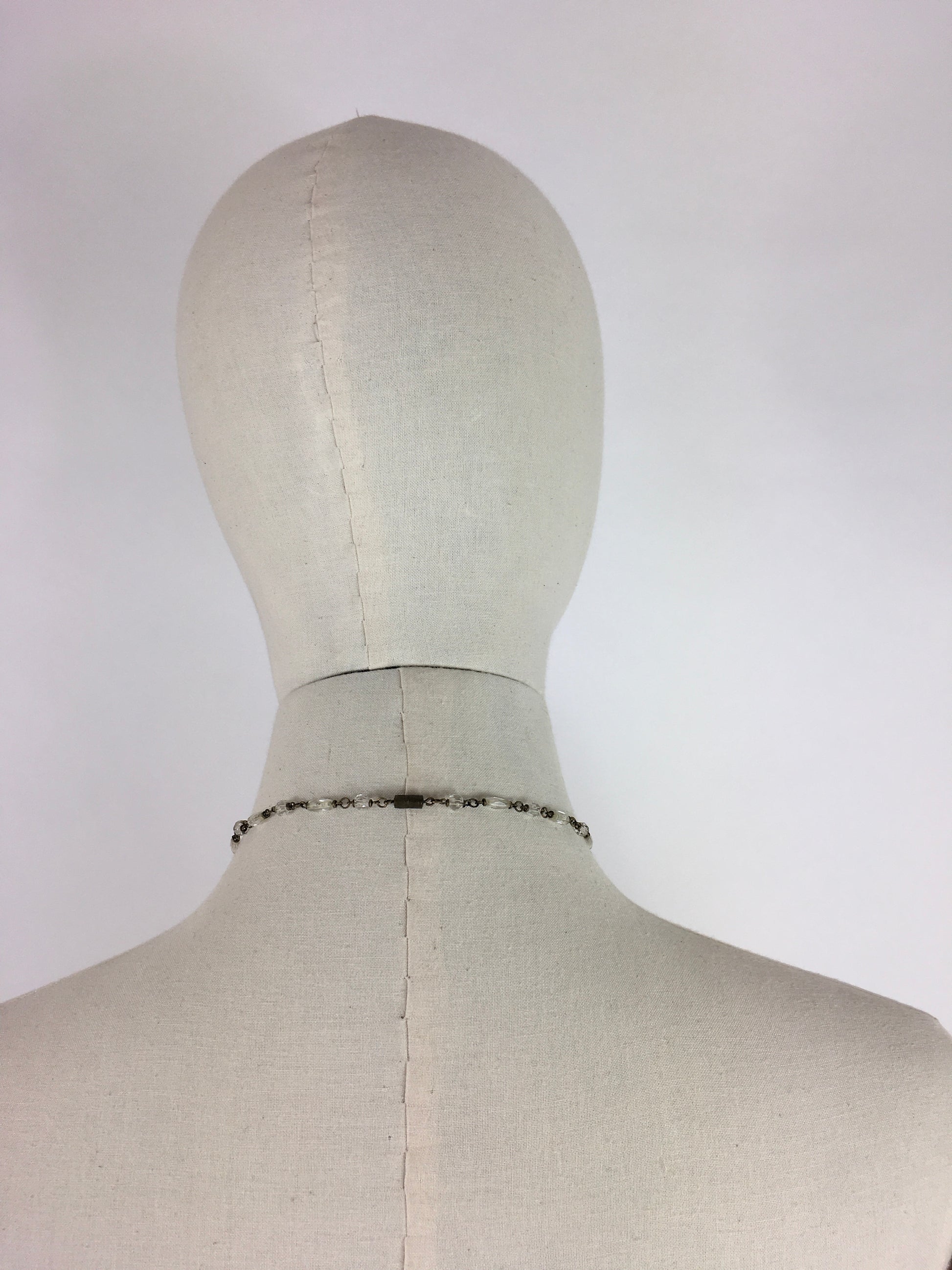 Vintage 1930s darling glass bead and marquesite necklace. A fabulous piece to wear to dress up any outfit. Very versatile as it’s so neutral in colour this piece is great for both day and evening wear outfits.