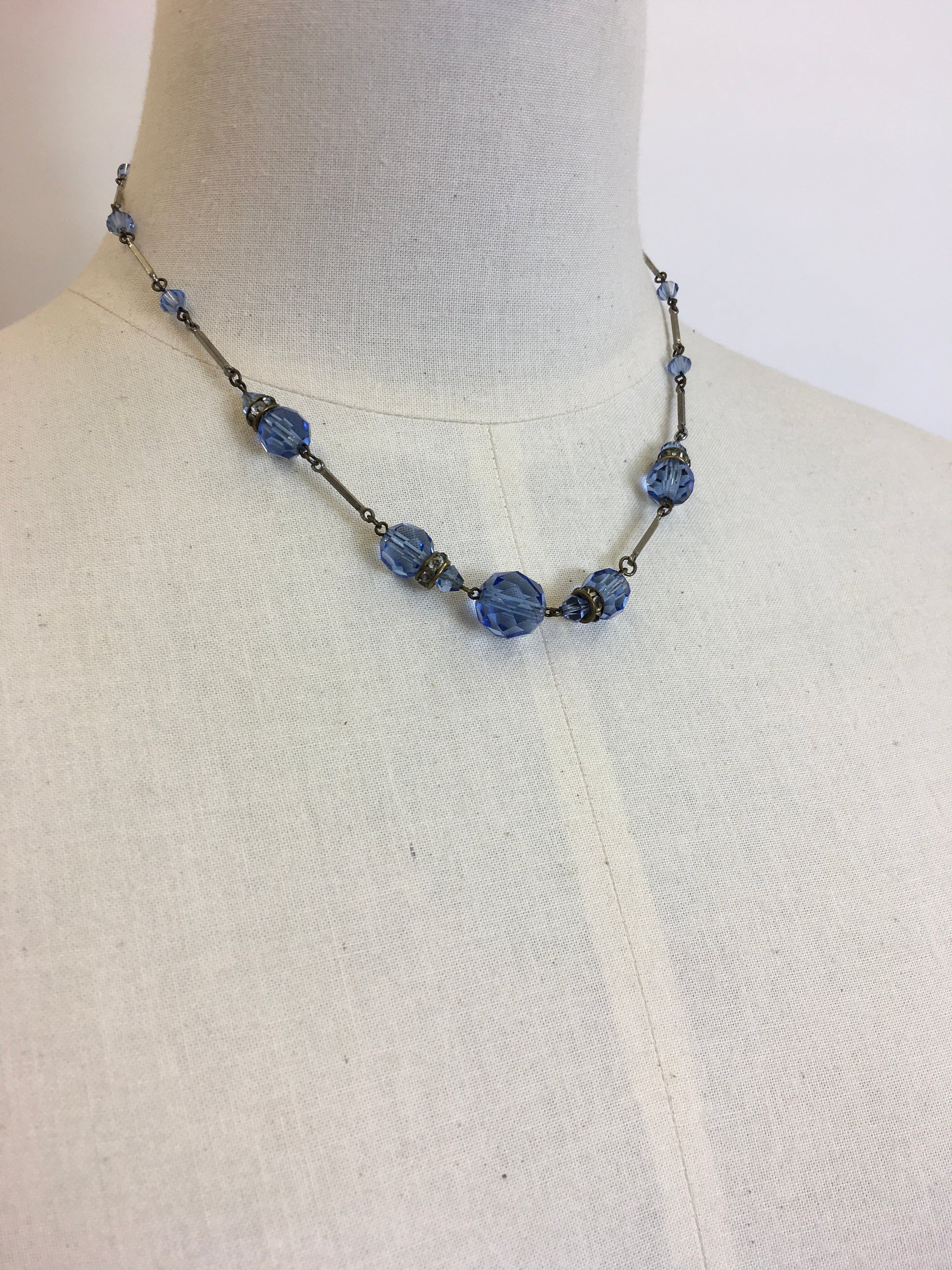 Vintage 1930's silver and blue glass beaded necklace, a simple and understated piece. A great addition to your vintage Jewellery collection.