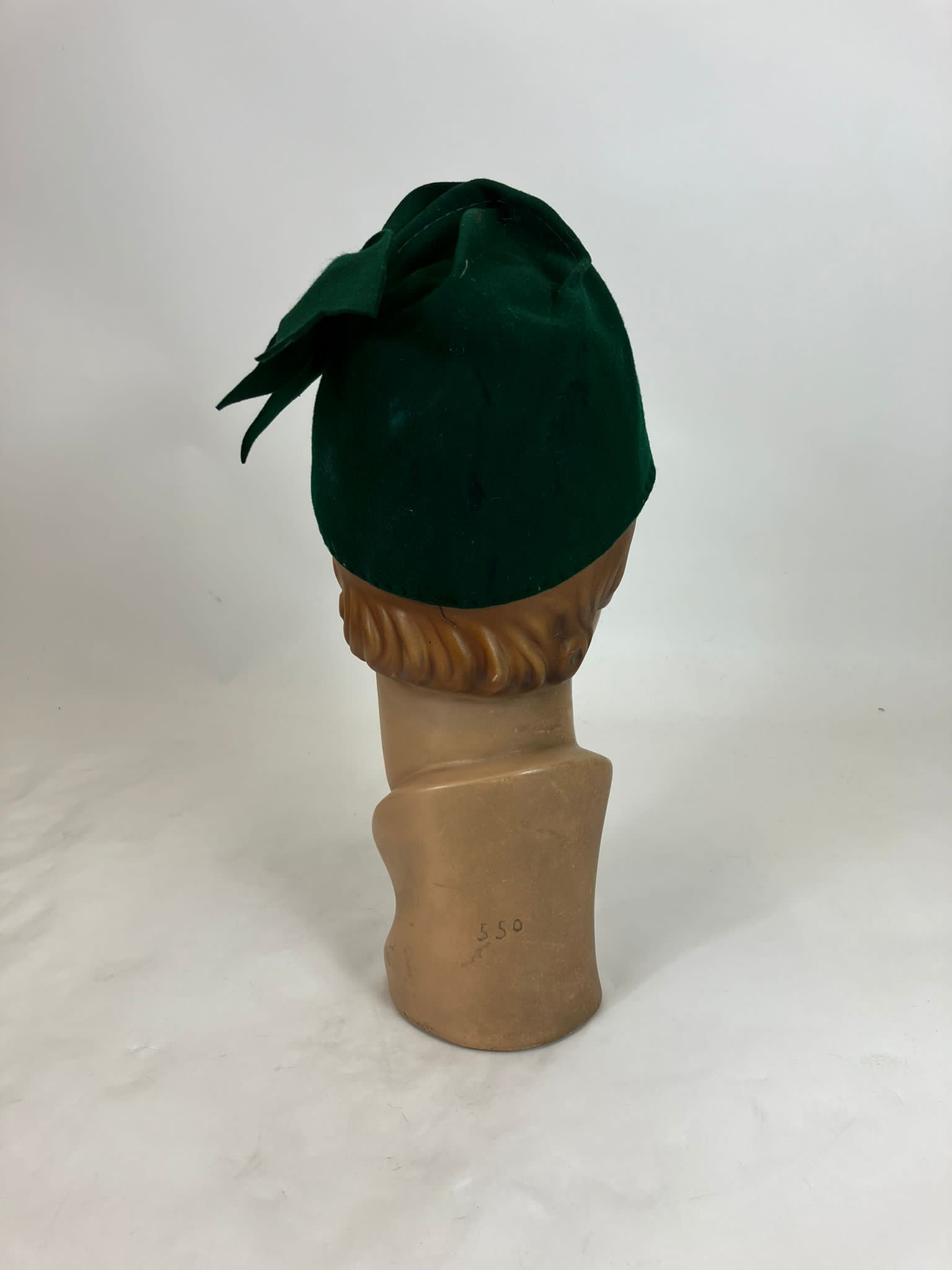 Original 1930’s Stunning Pixie Hat - in Forest Green