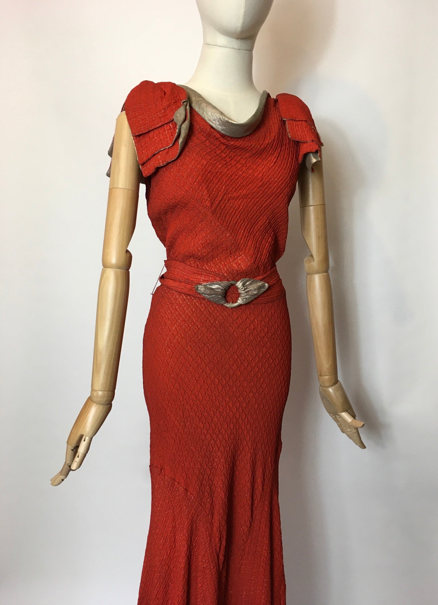 Original 1930’s Stunning Rust and Lame Bias Cut Gown - Festival of Vintage Fashion Show Exclusive