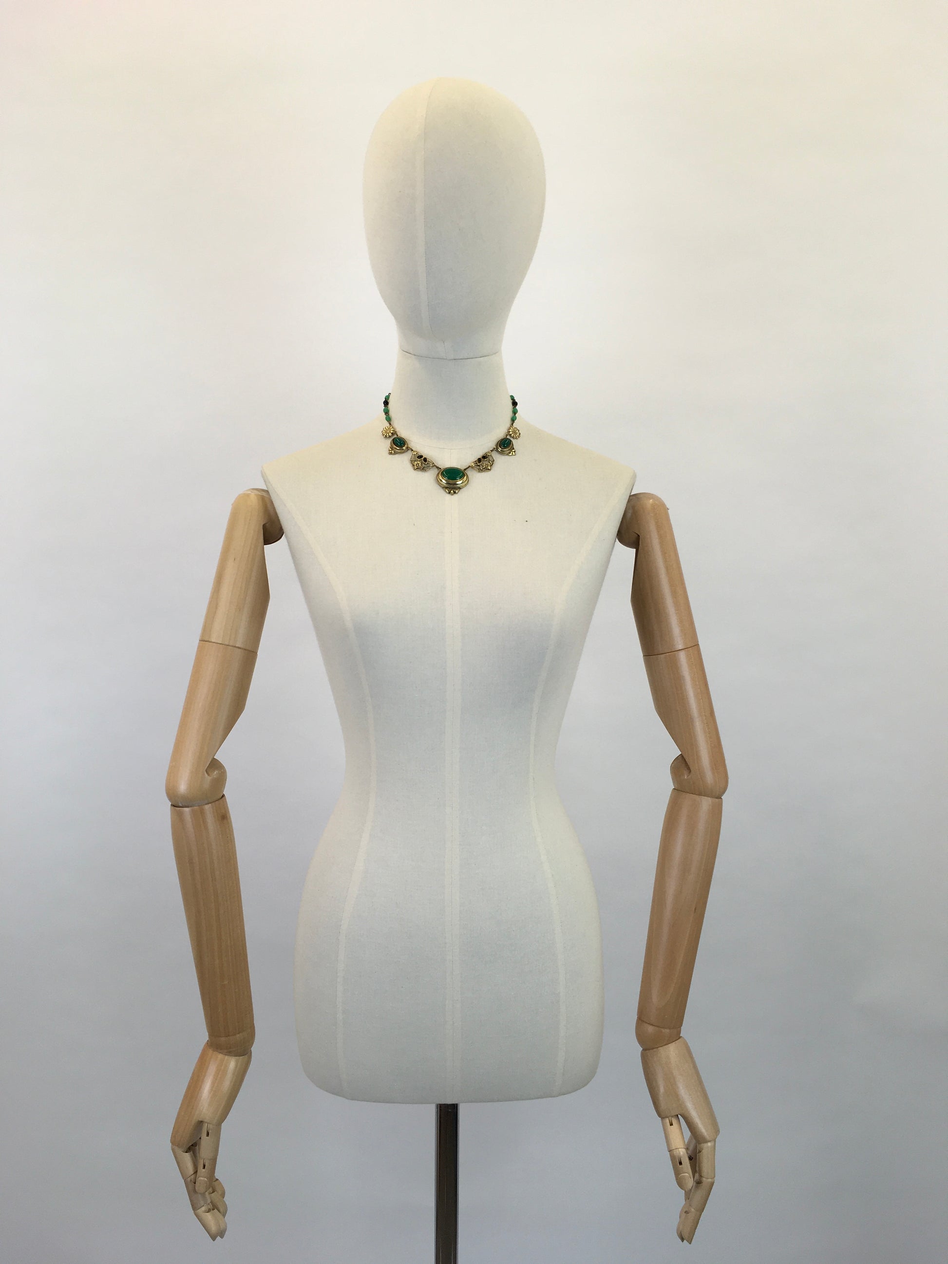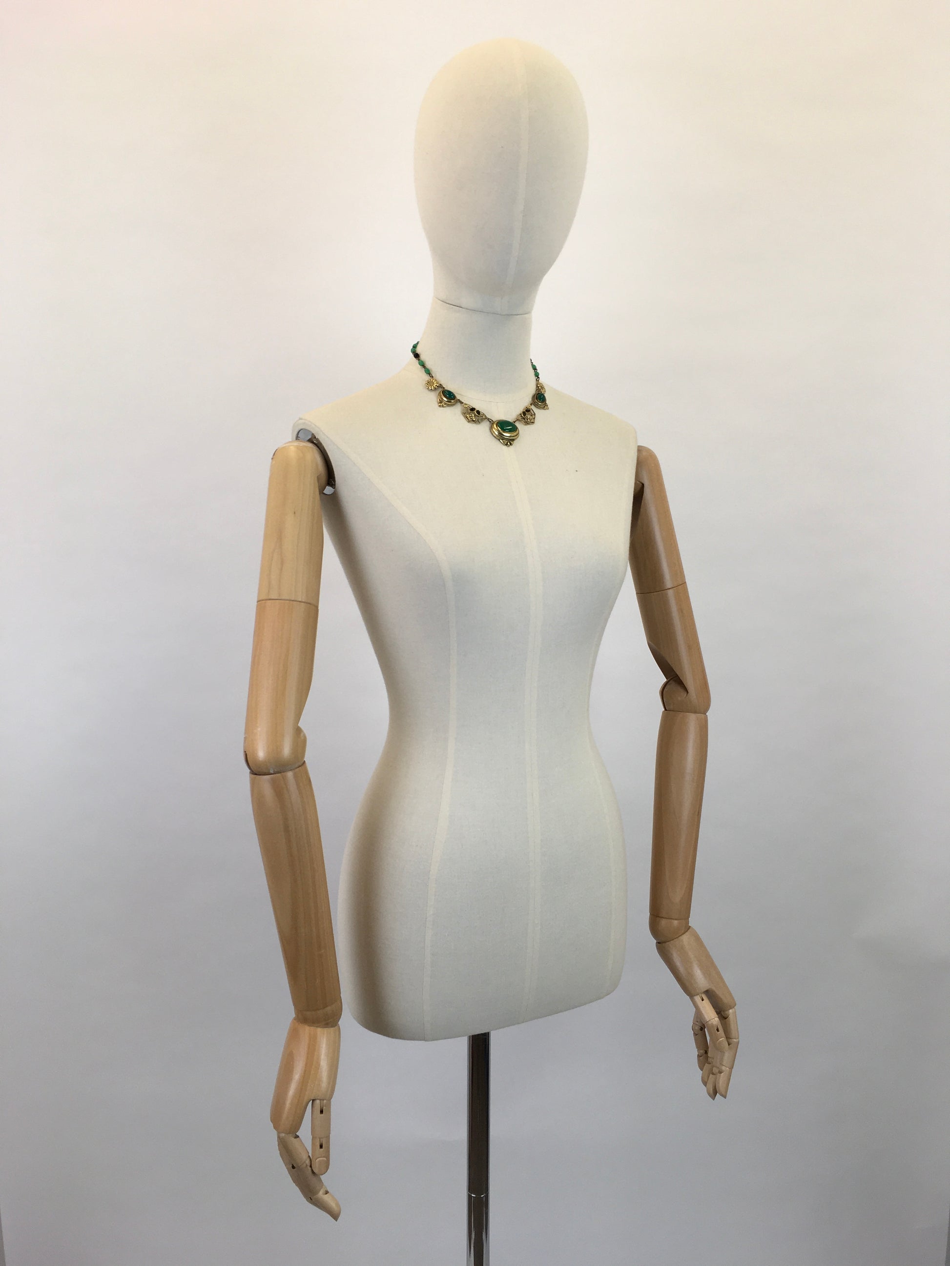 Original 1930s STUNNING Deco Necklace - Brass and Classic Deco Green Glass Beads