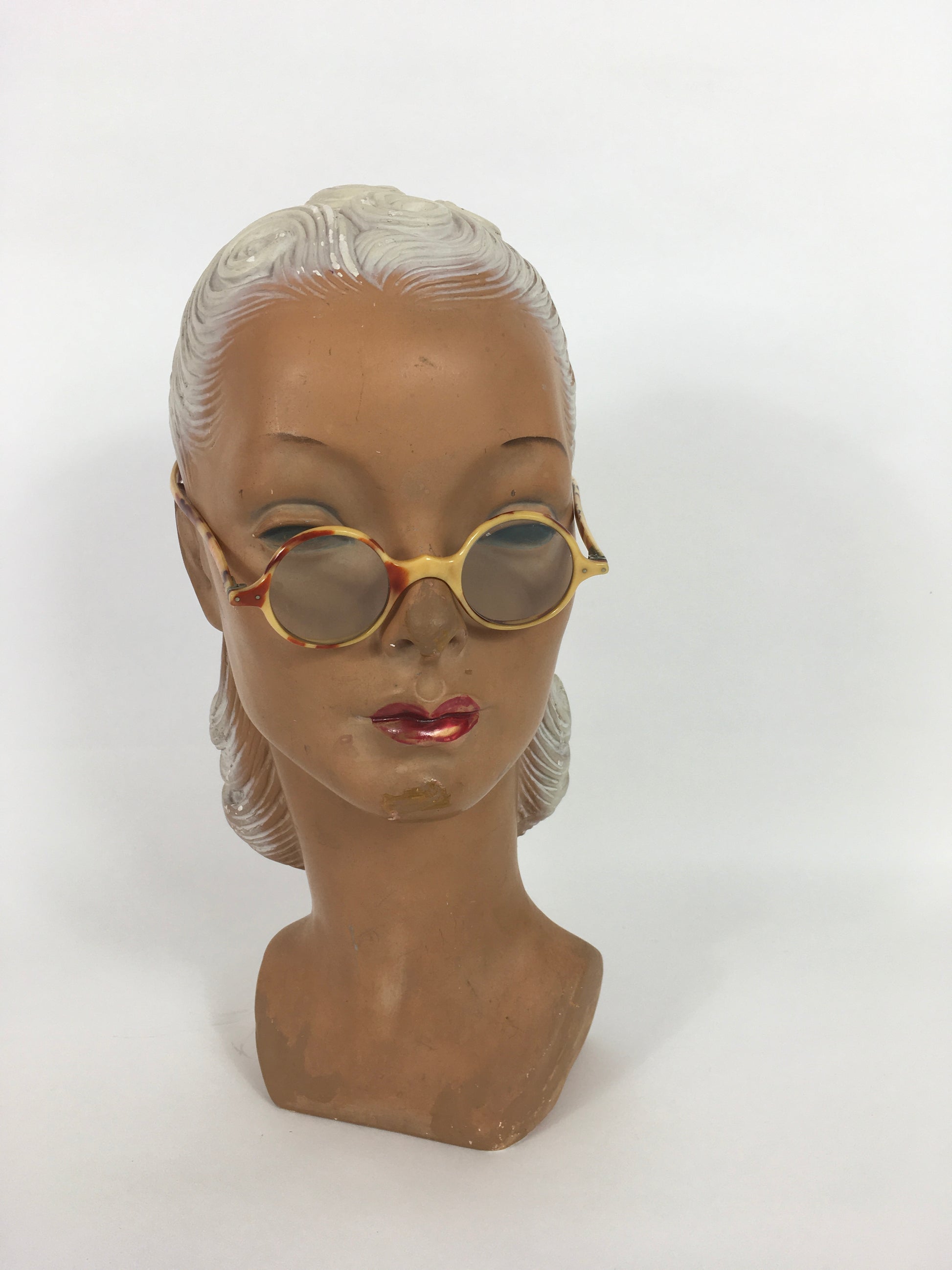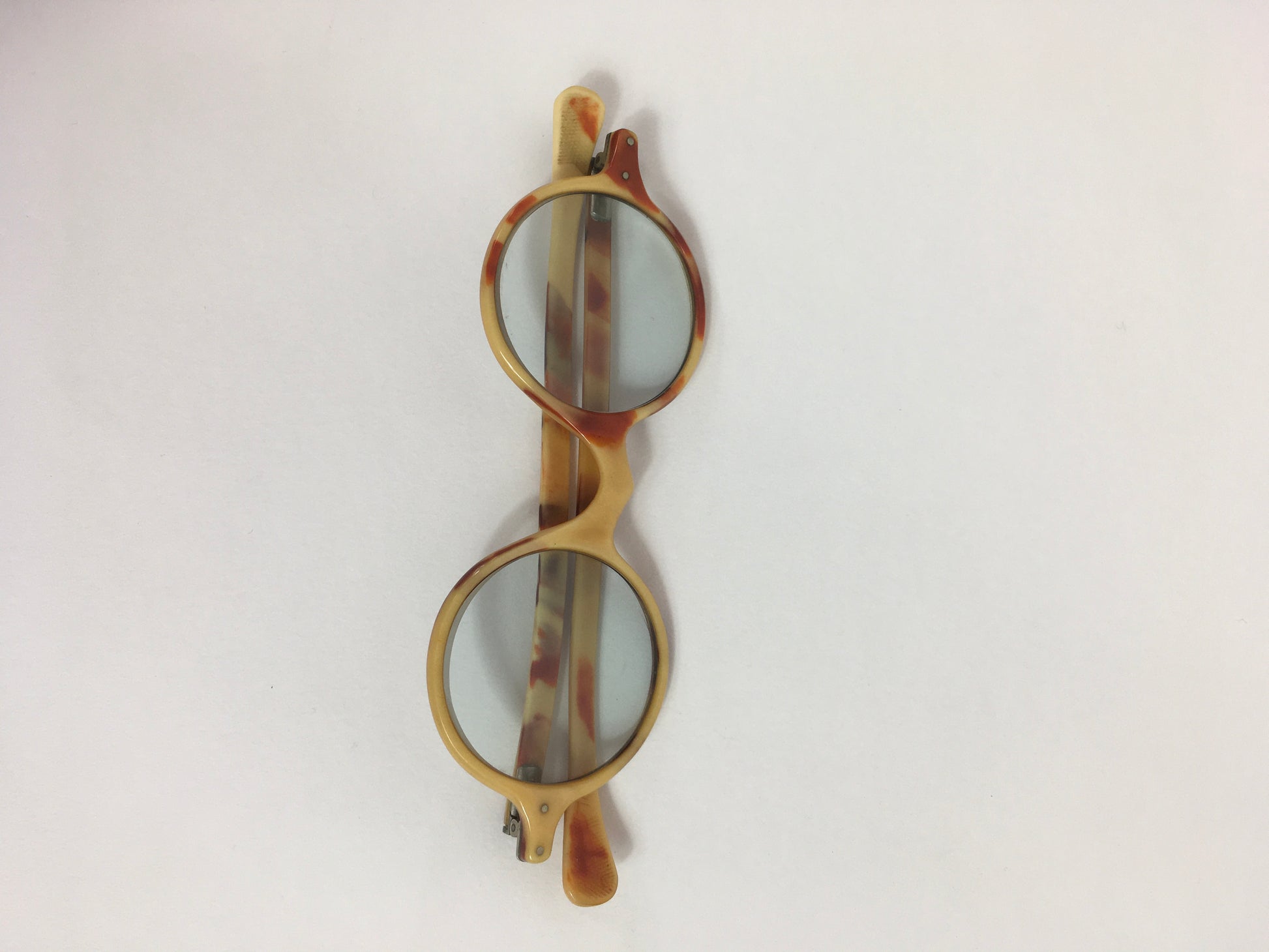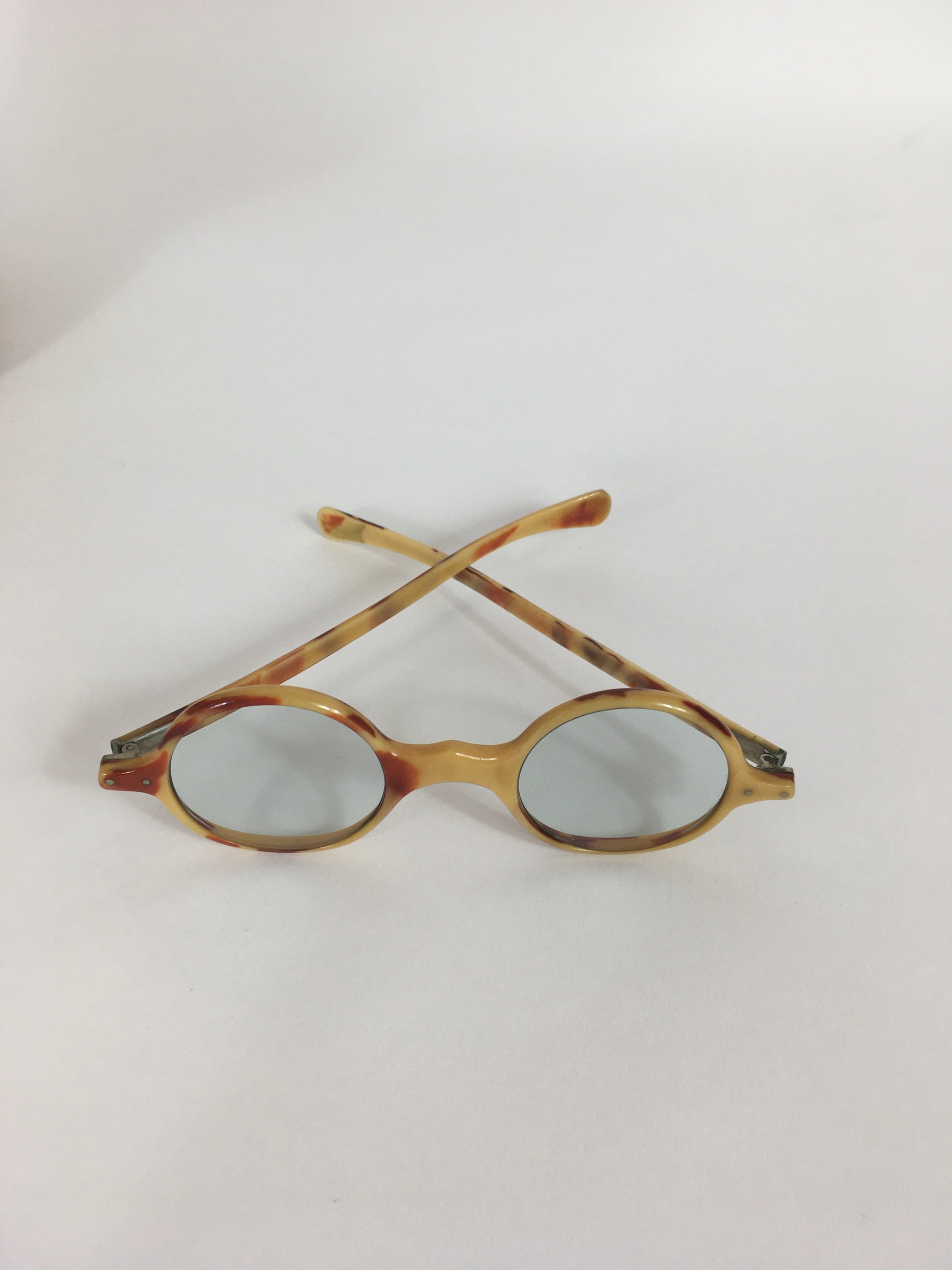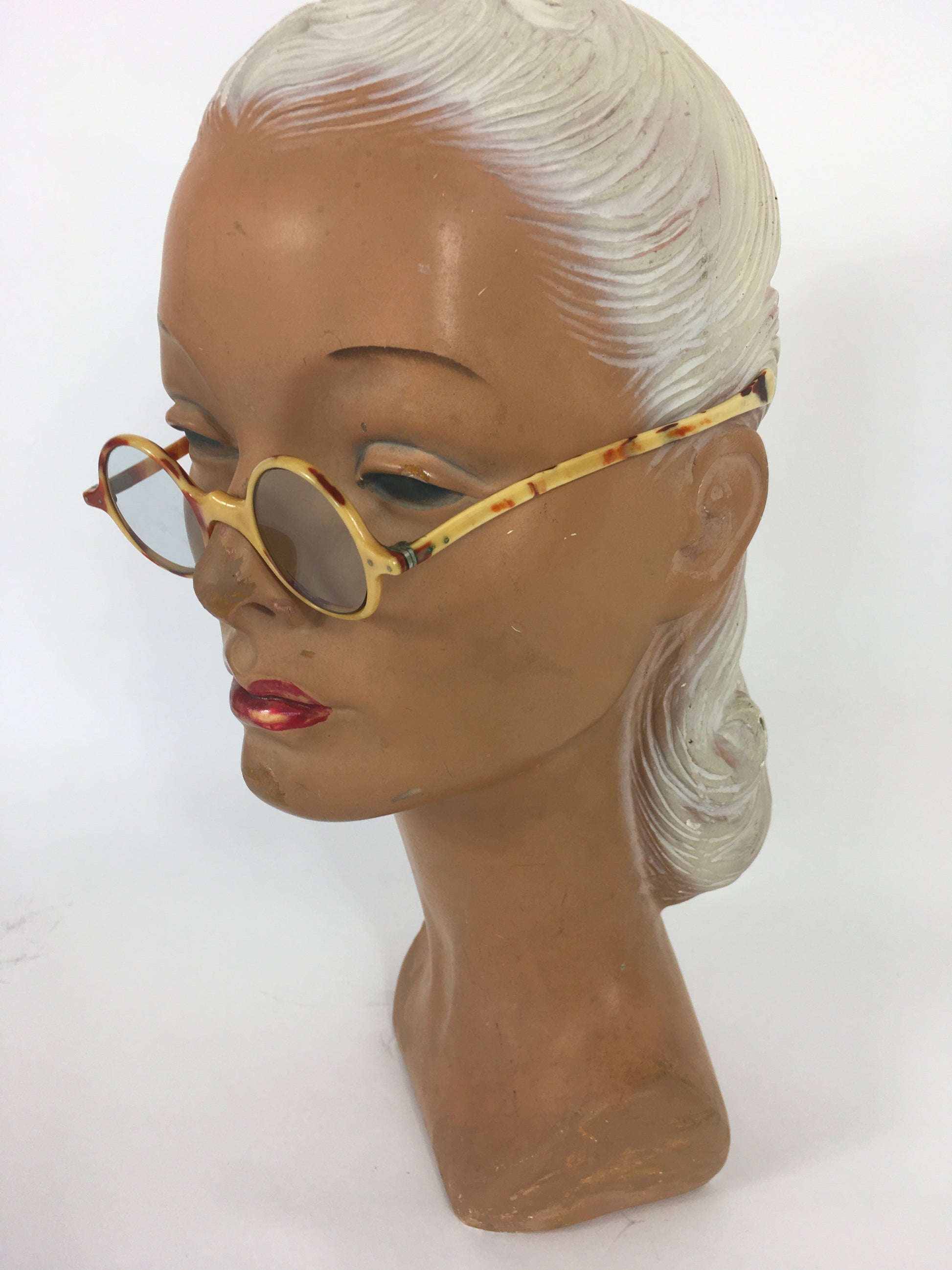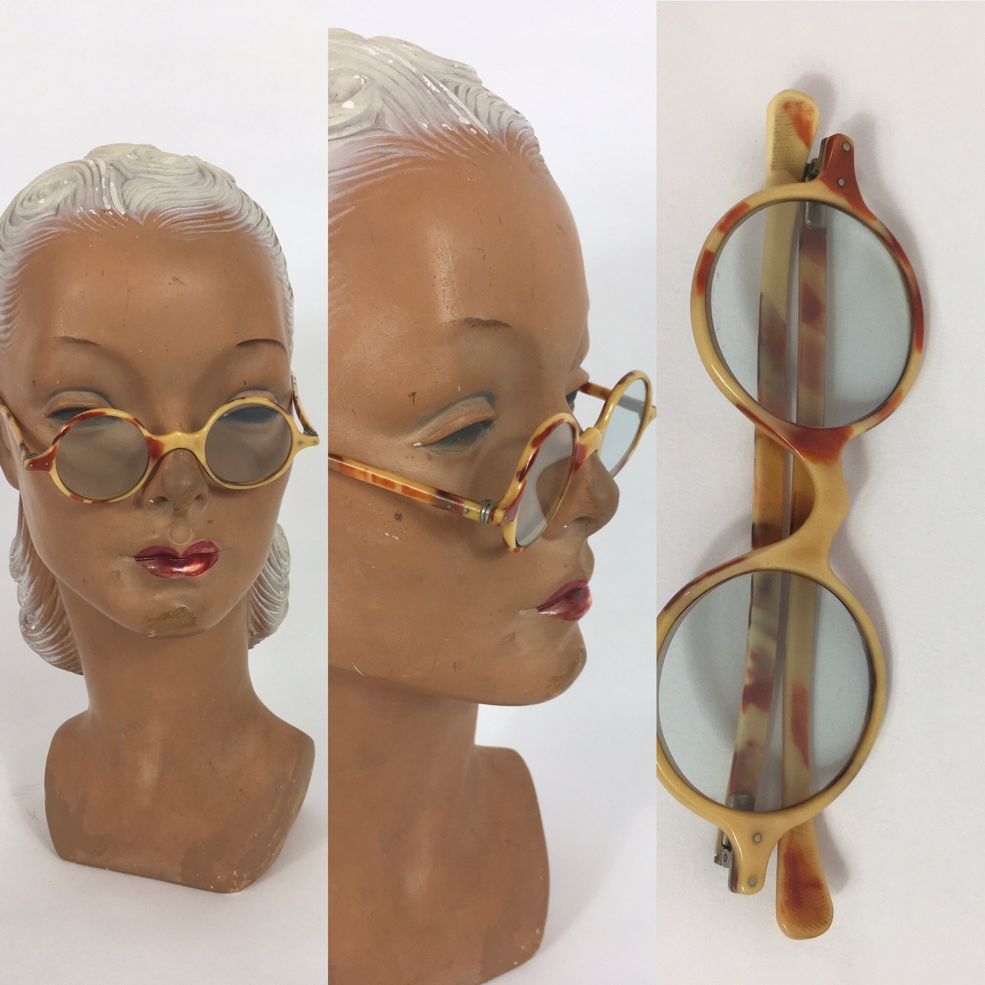 Vintage 1930s Two tone small round sunglasses with a slight tint to the glass. Such a fabulous and iconic shape with a very unusual colour combination of brown and cream. Had a previously done repair but done well - see condition report.