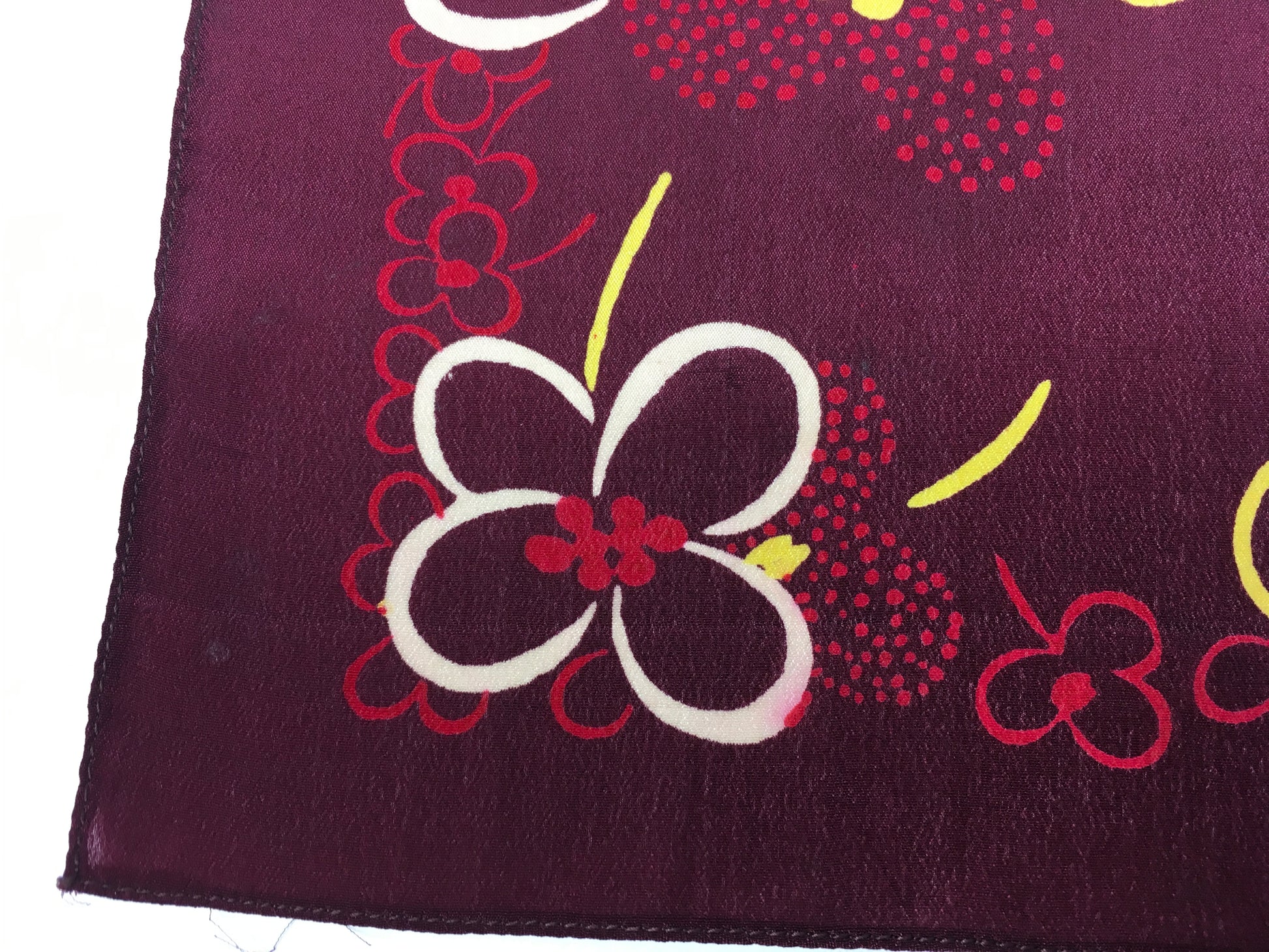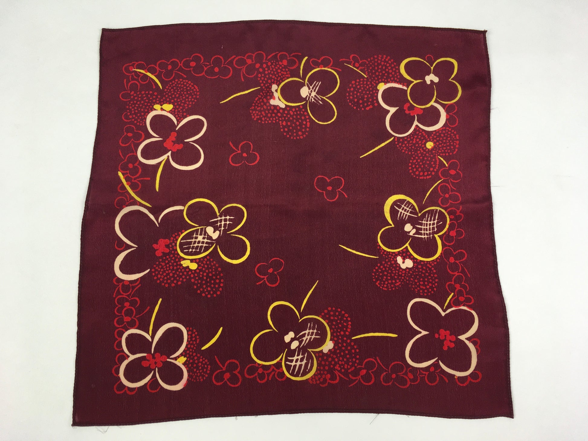 Original 1940’s / 1950’s Rayon Hankie - In a Burgundy, Yellow and Ivory Floral