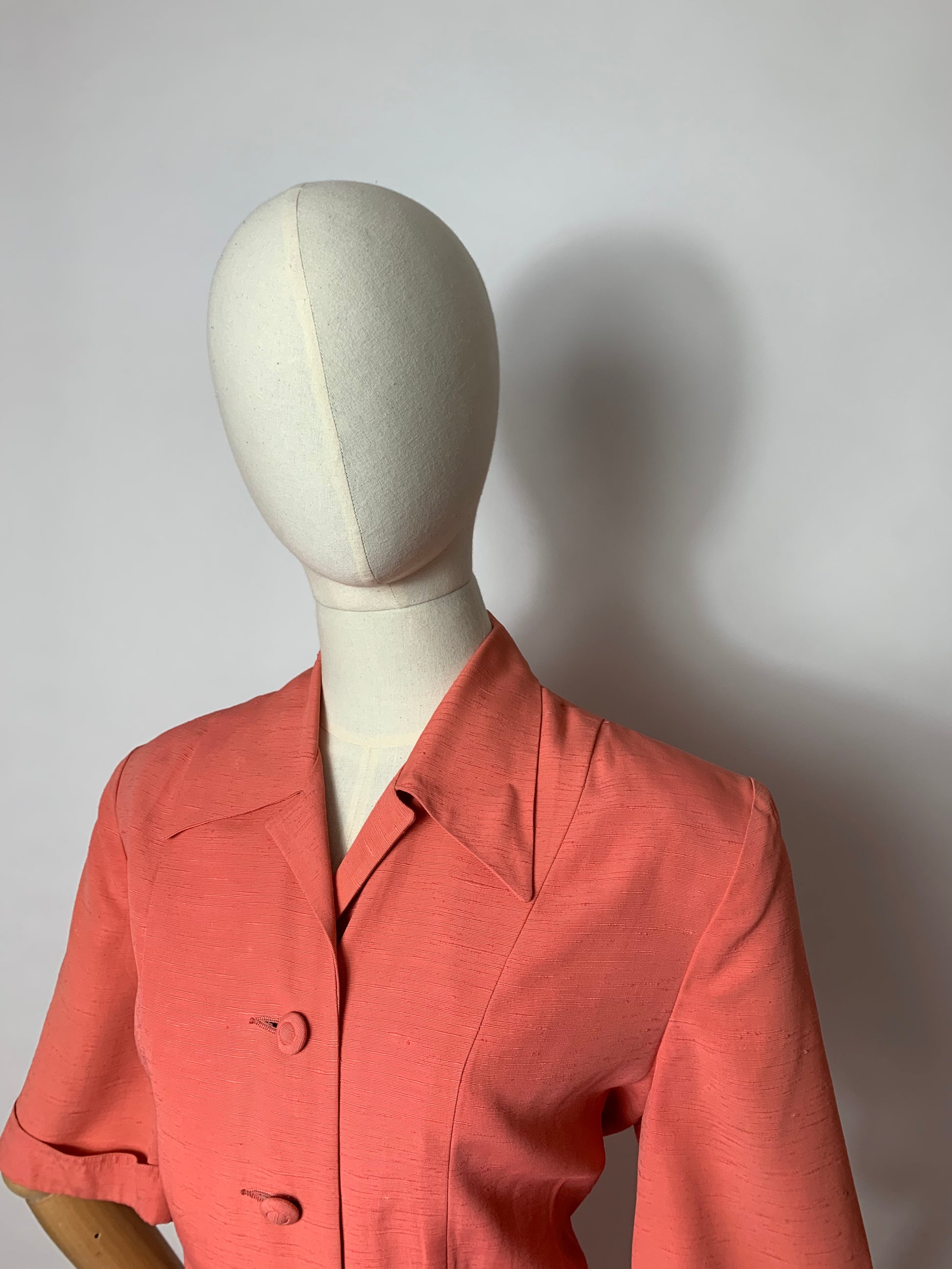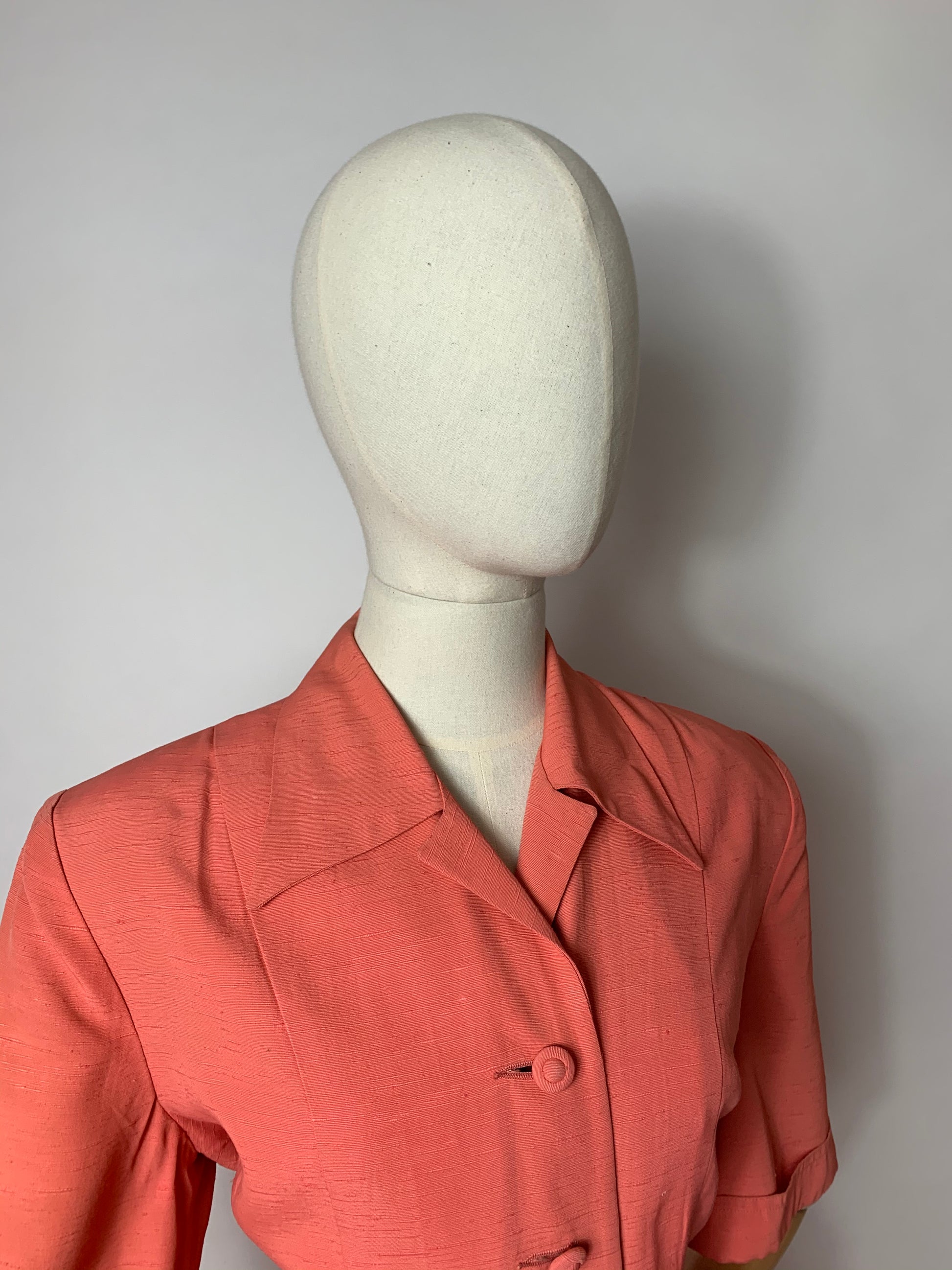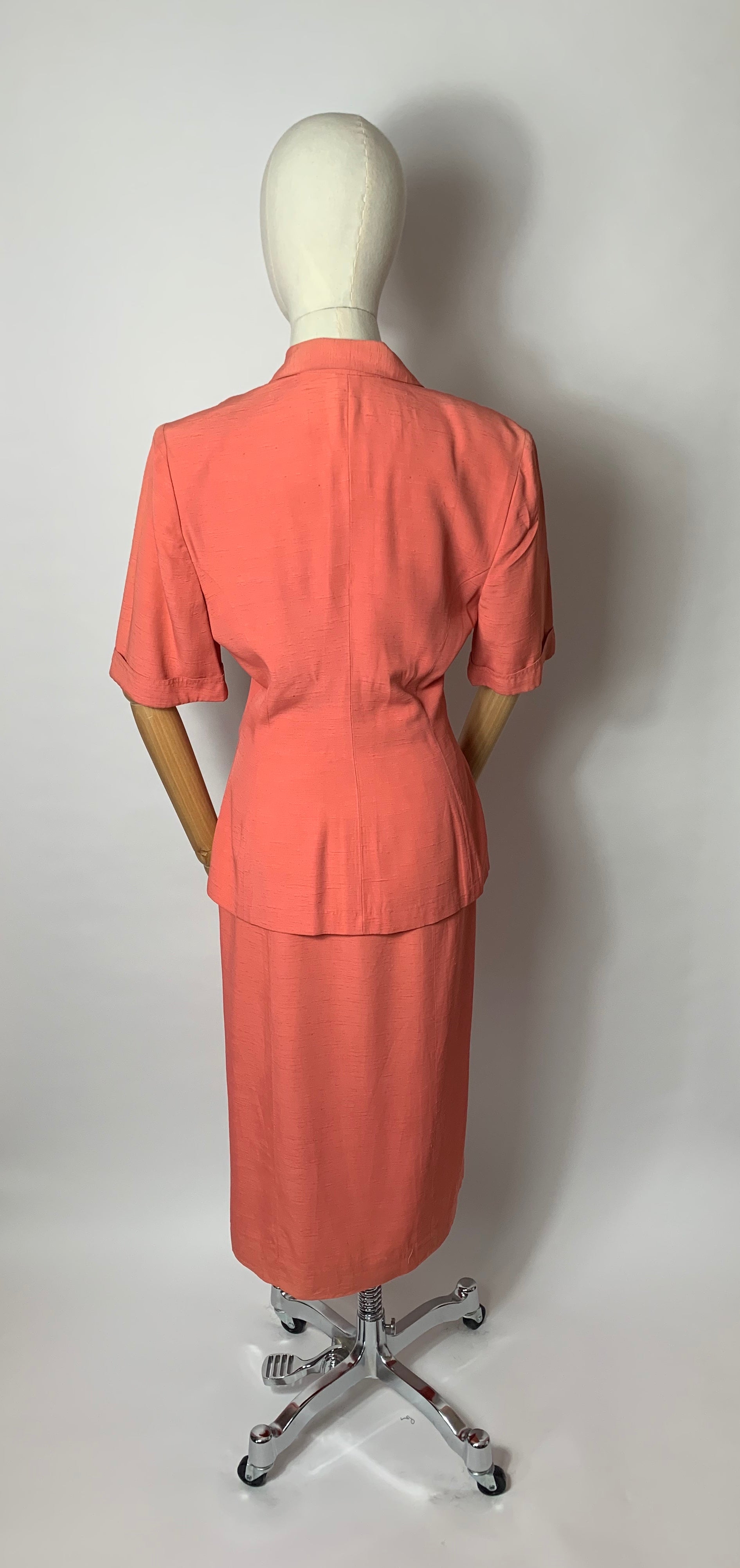 Original 1940’s 2pc Summer Suit - Fabulous Coral Colour and Lovely Detailing