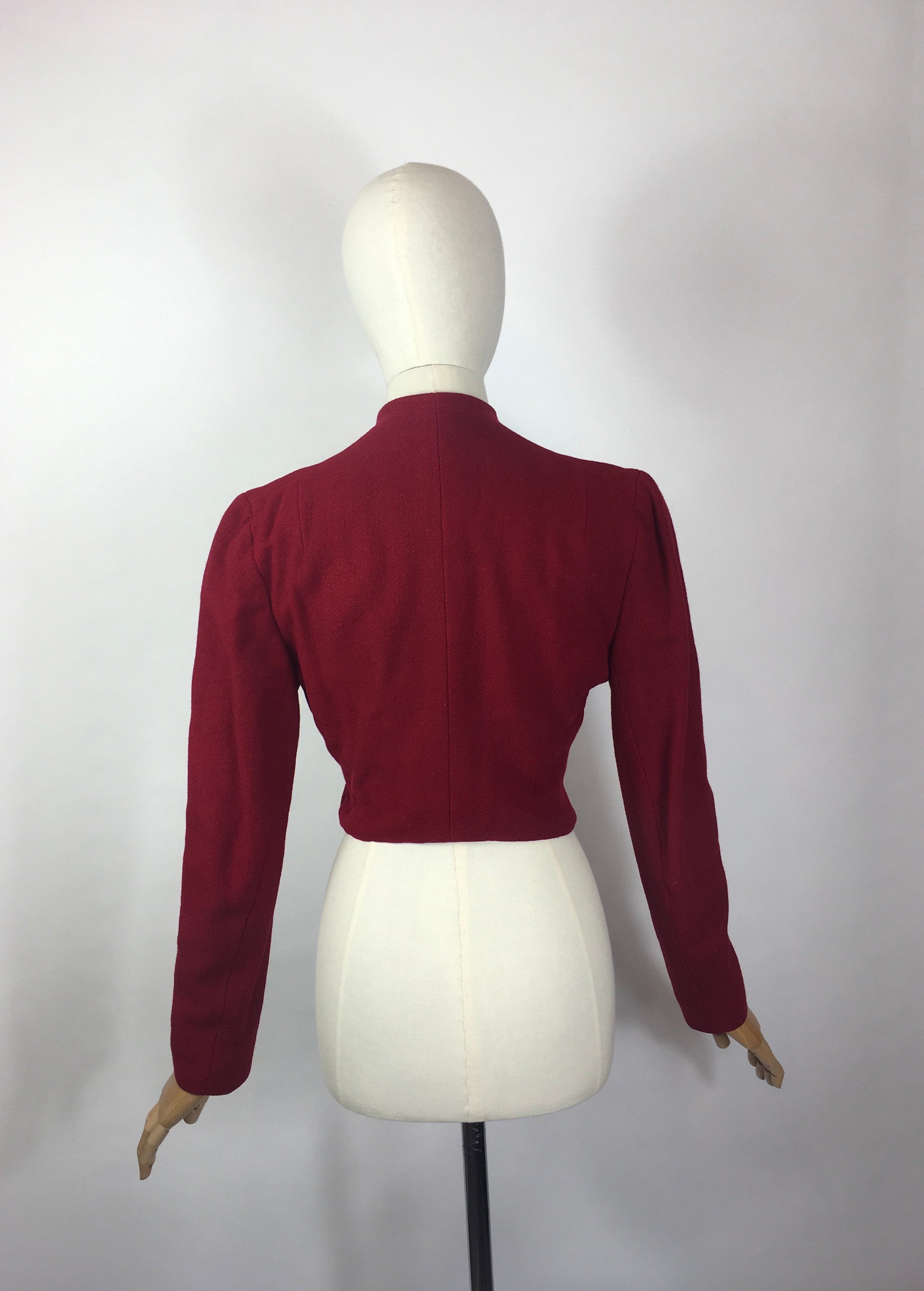 Original 1940’s American Cropped Jacket - In A Lovely Deep Wine Red Wool