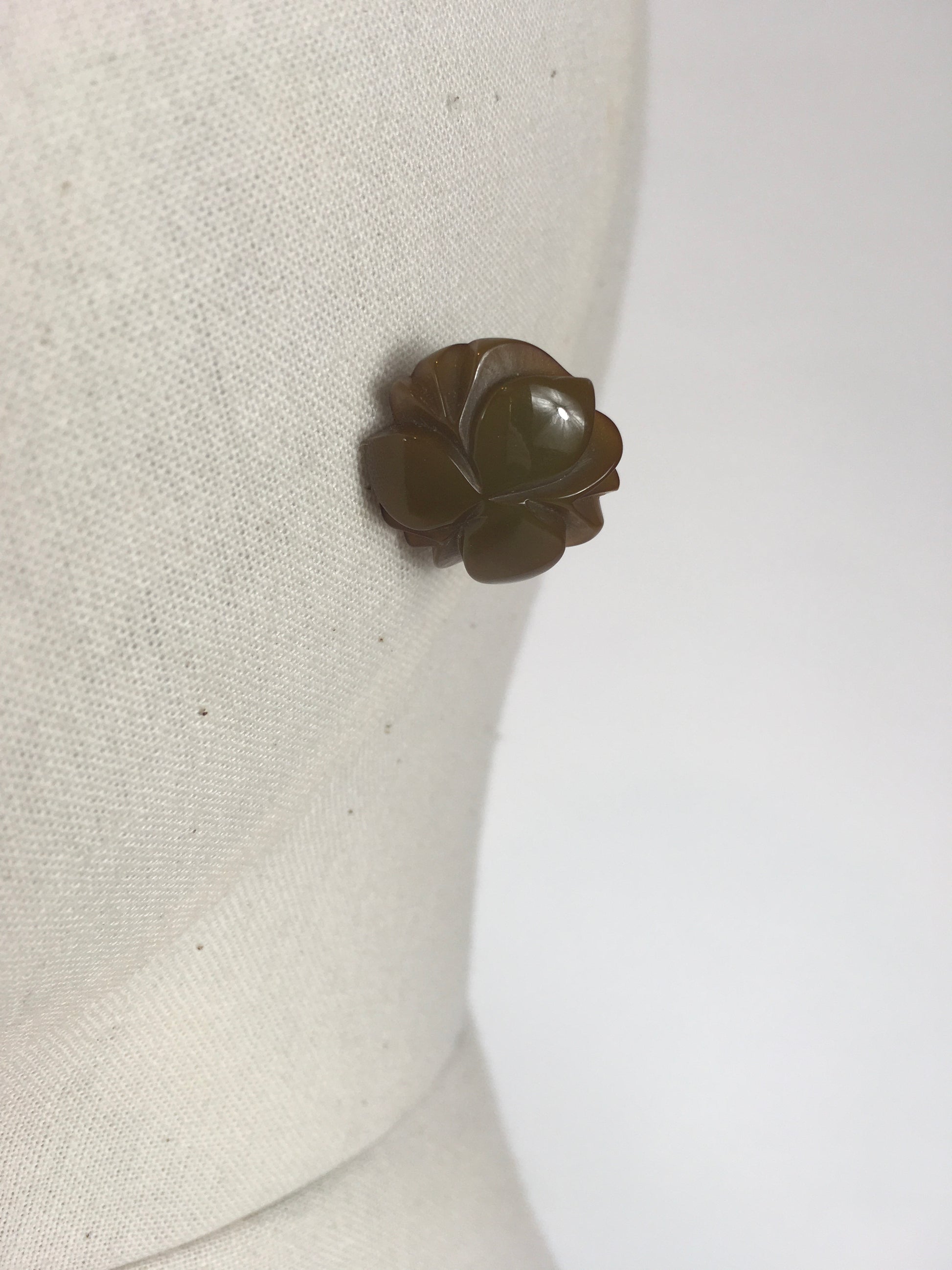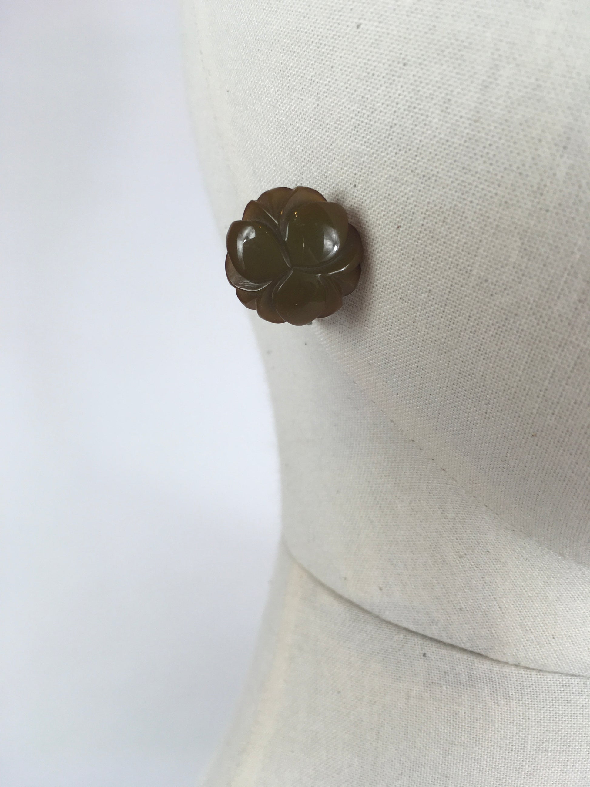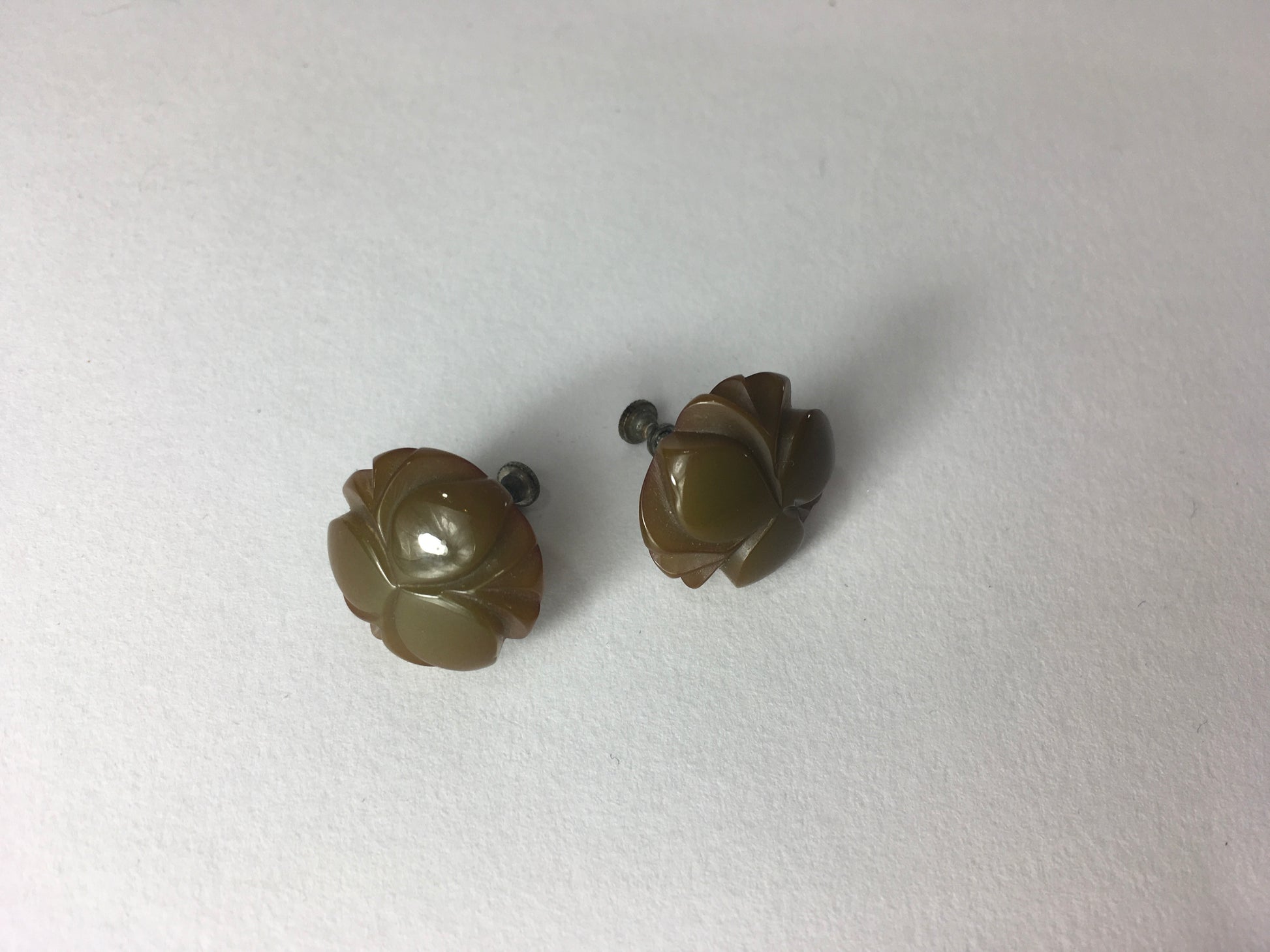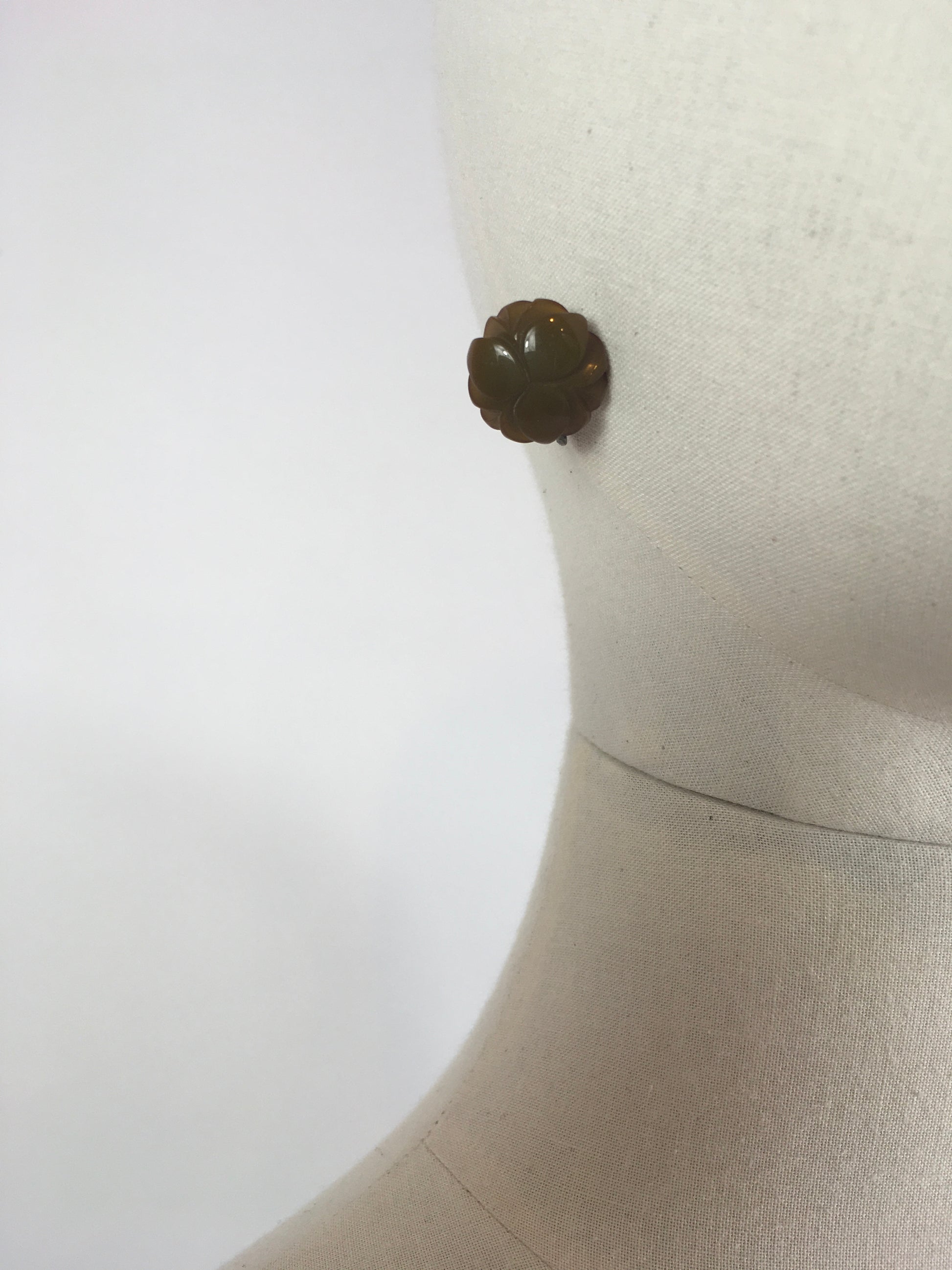 Original 1940’s carved Bakelite Screwback Earrings - In An Avocado Colourway With Clover Shape Detailing