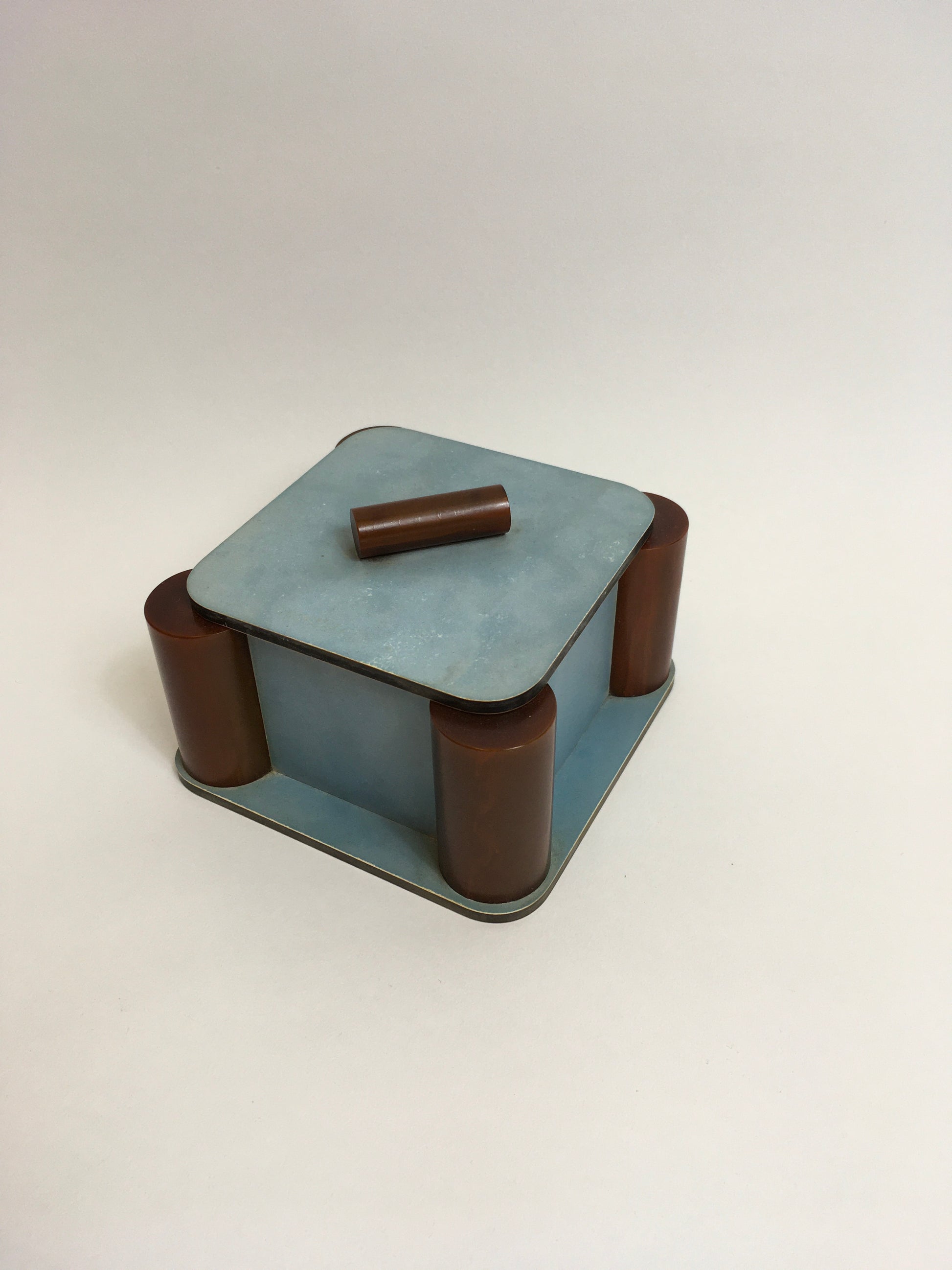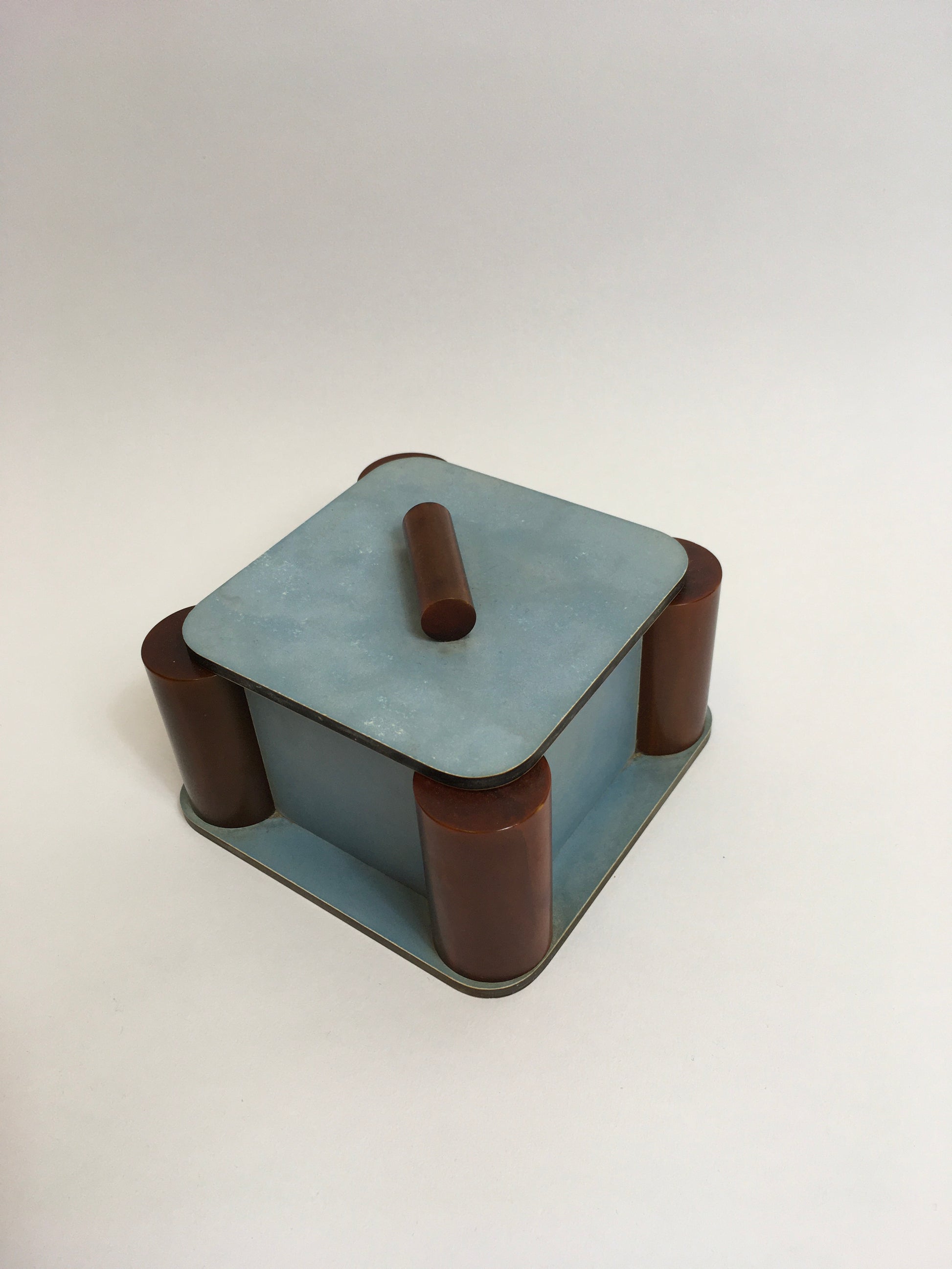 Original 1940’s Bakelite Trinket Box - In Powder Blue & Butterscotch