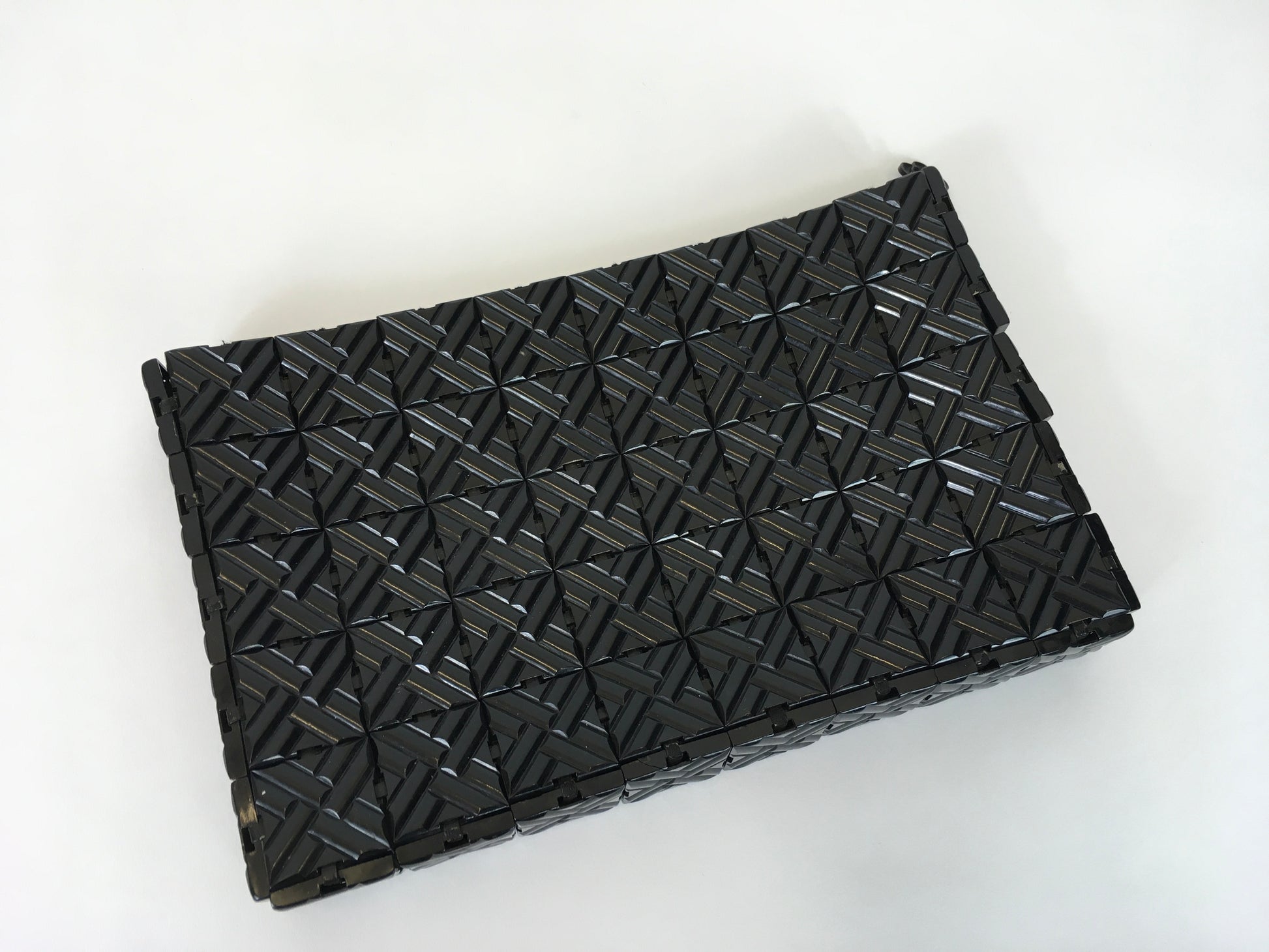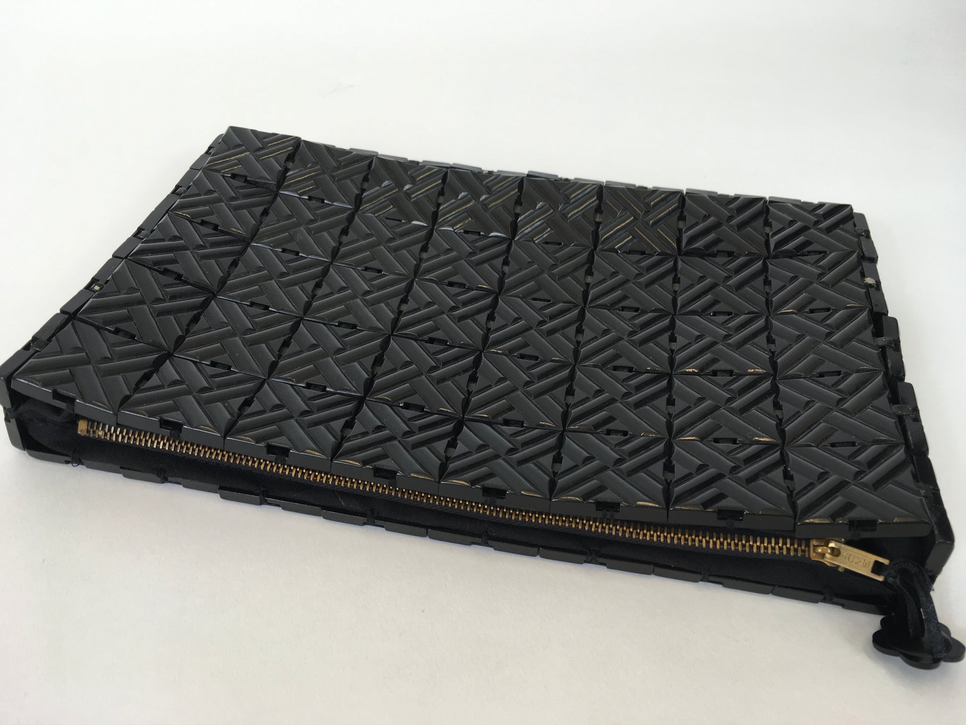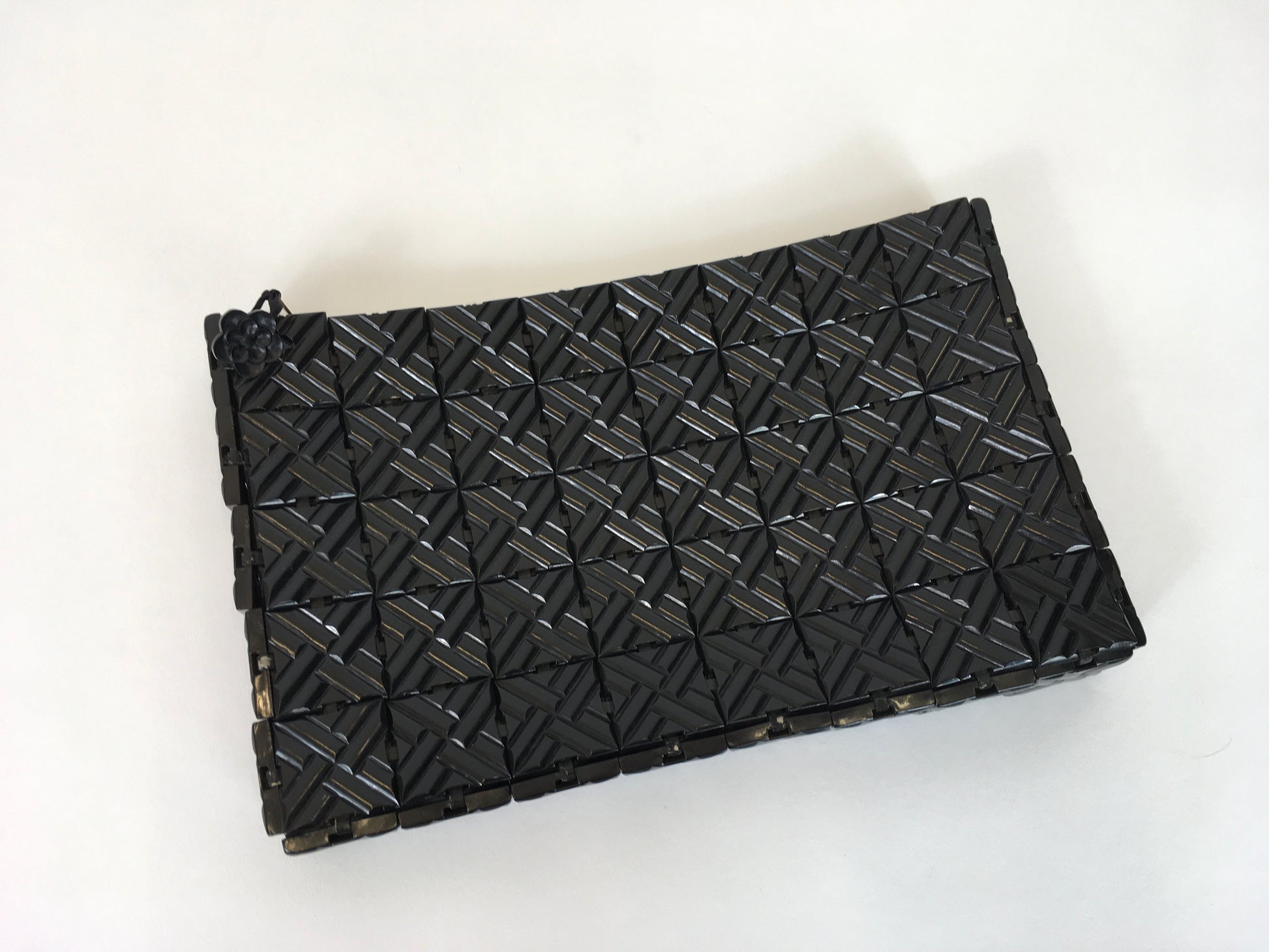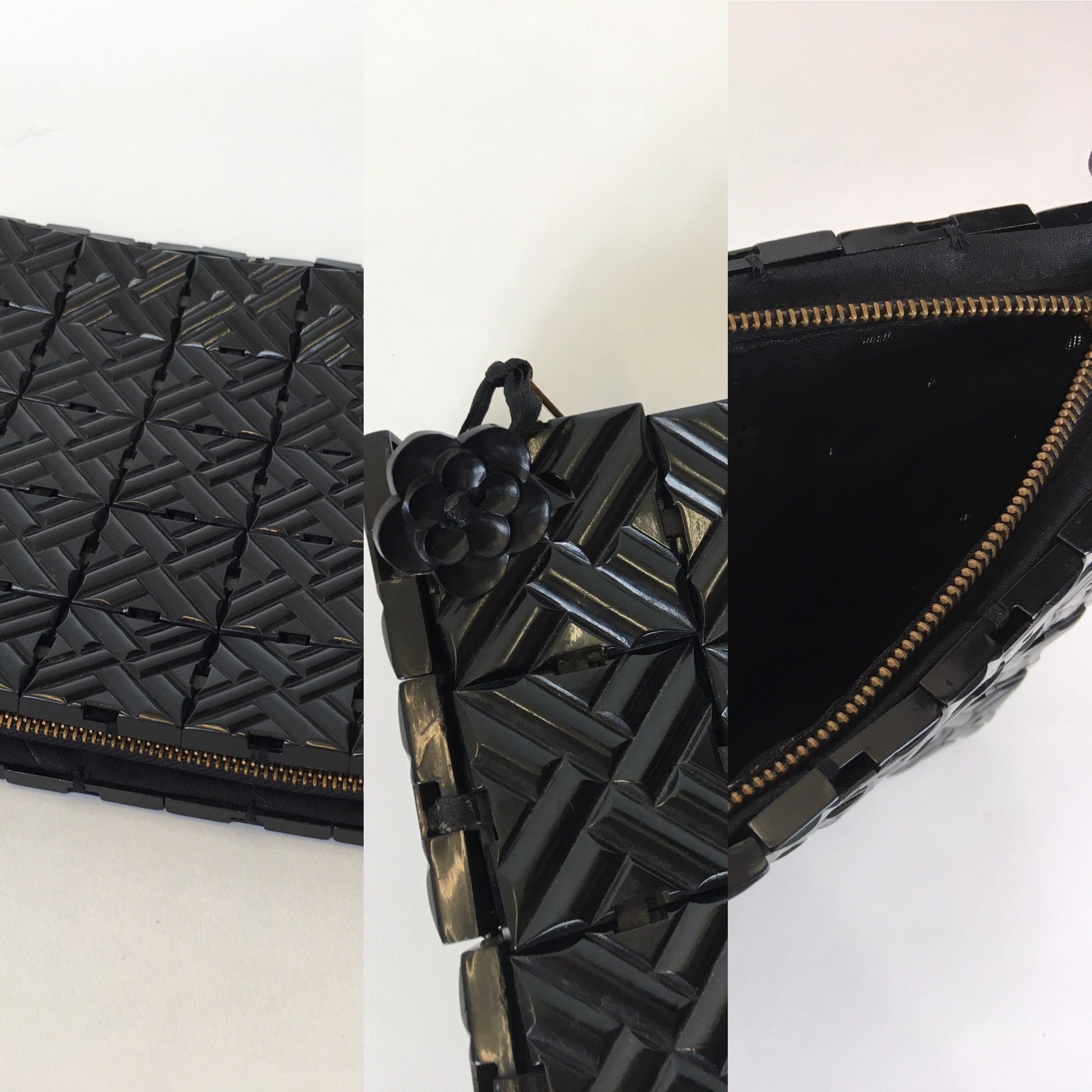 Original 1940’s Black Plastic Tiled Clutch Handbag - In An Almost Crosshatch Tilework
