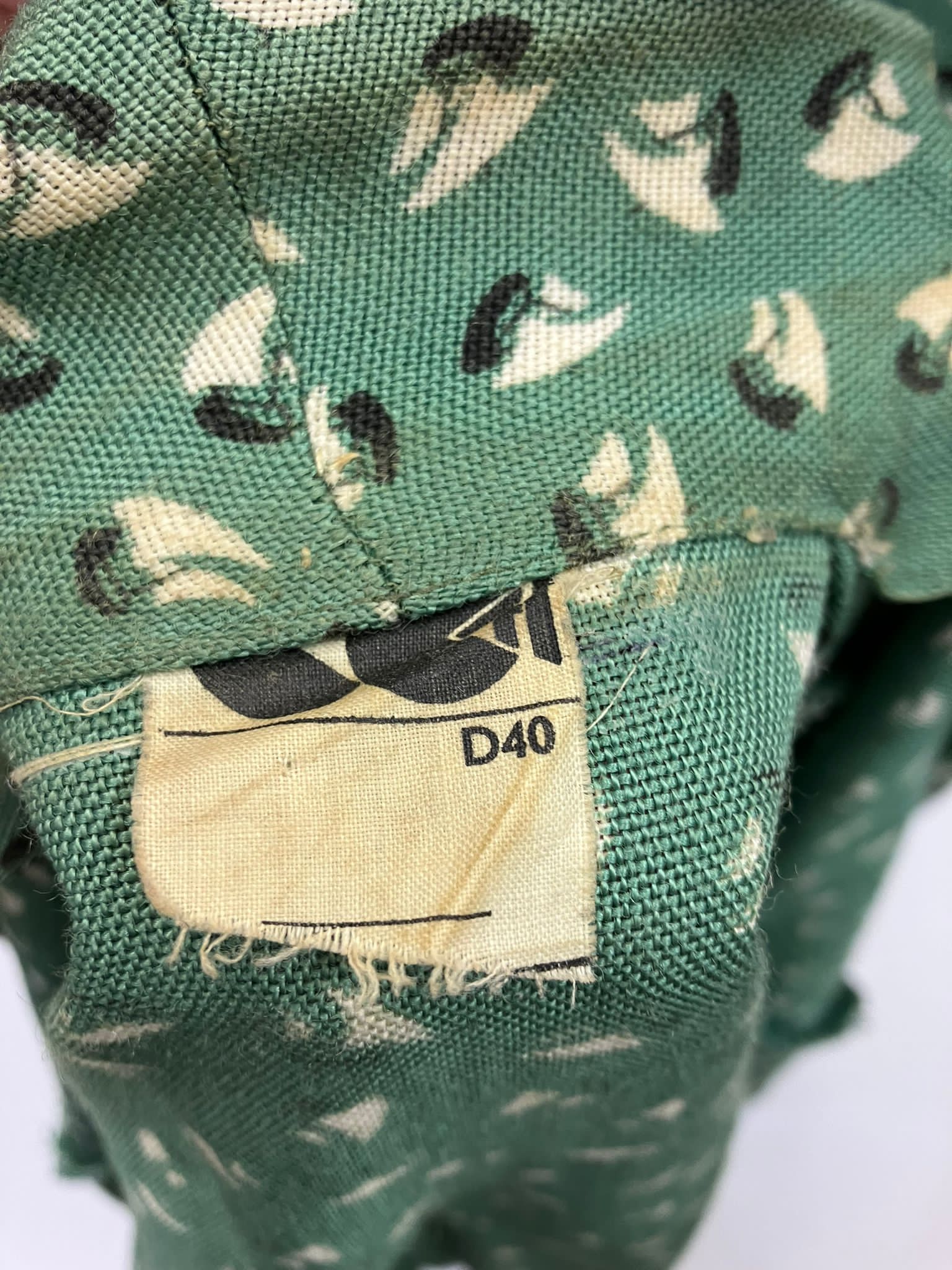 Original 1940’s CC41 Novelty Moygashel linen Suit - white / Black sail boats on a bed of green