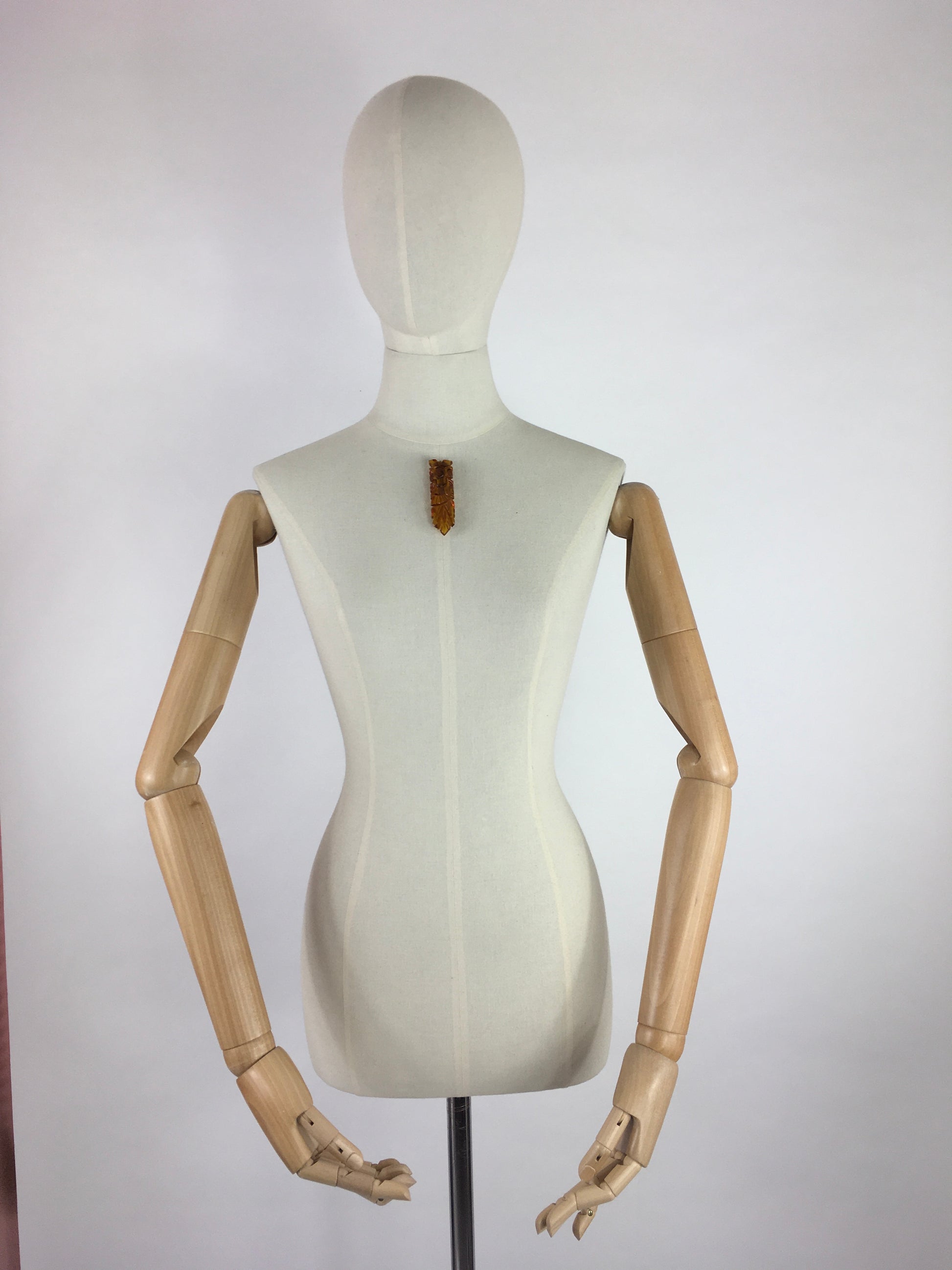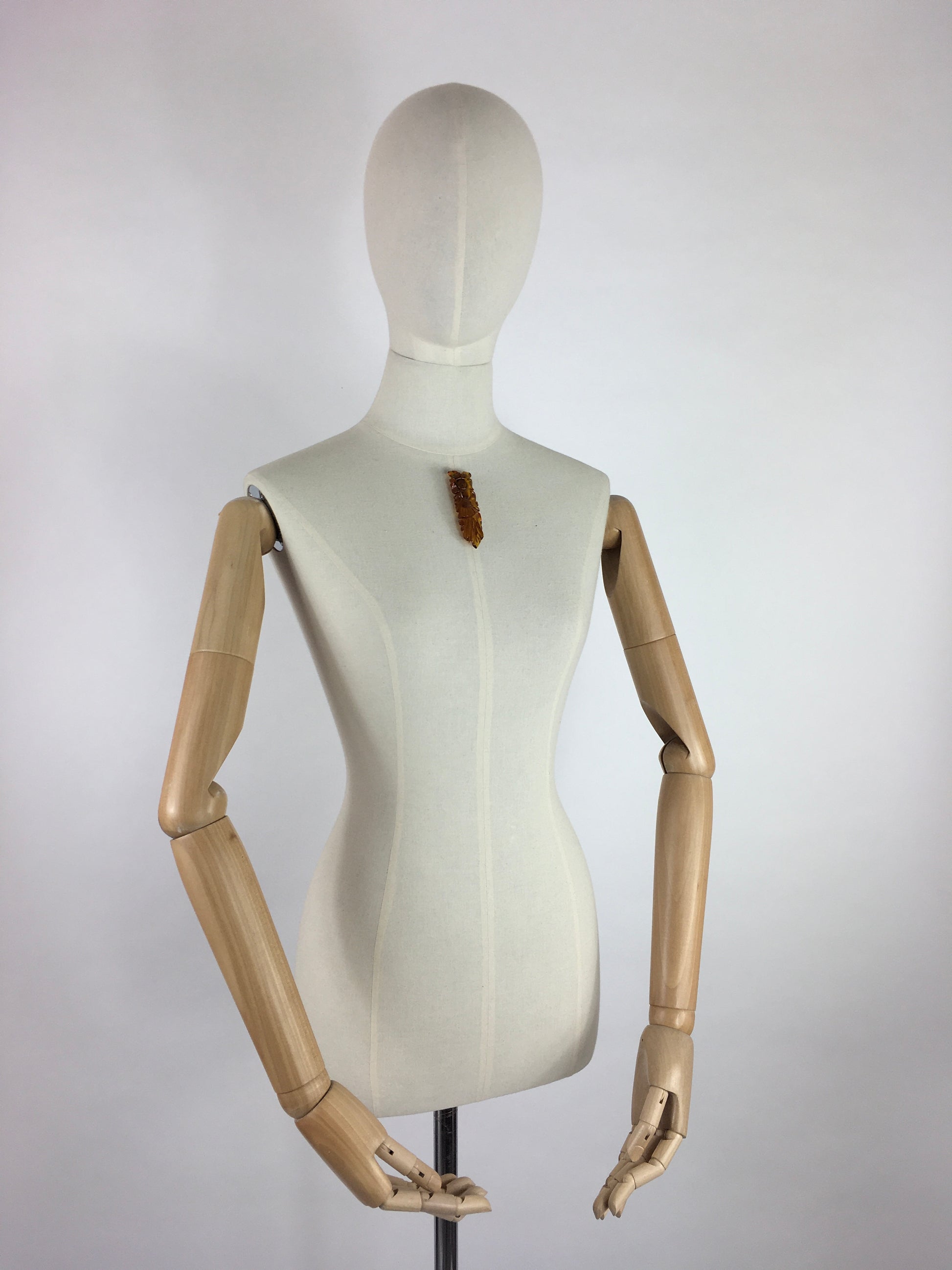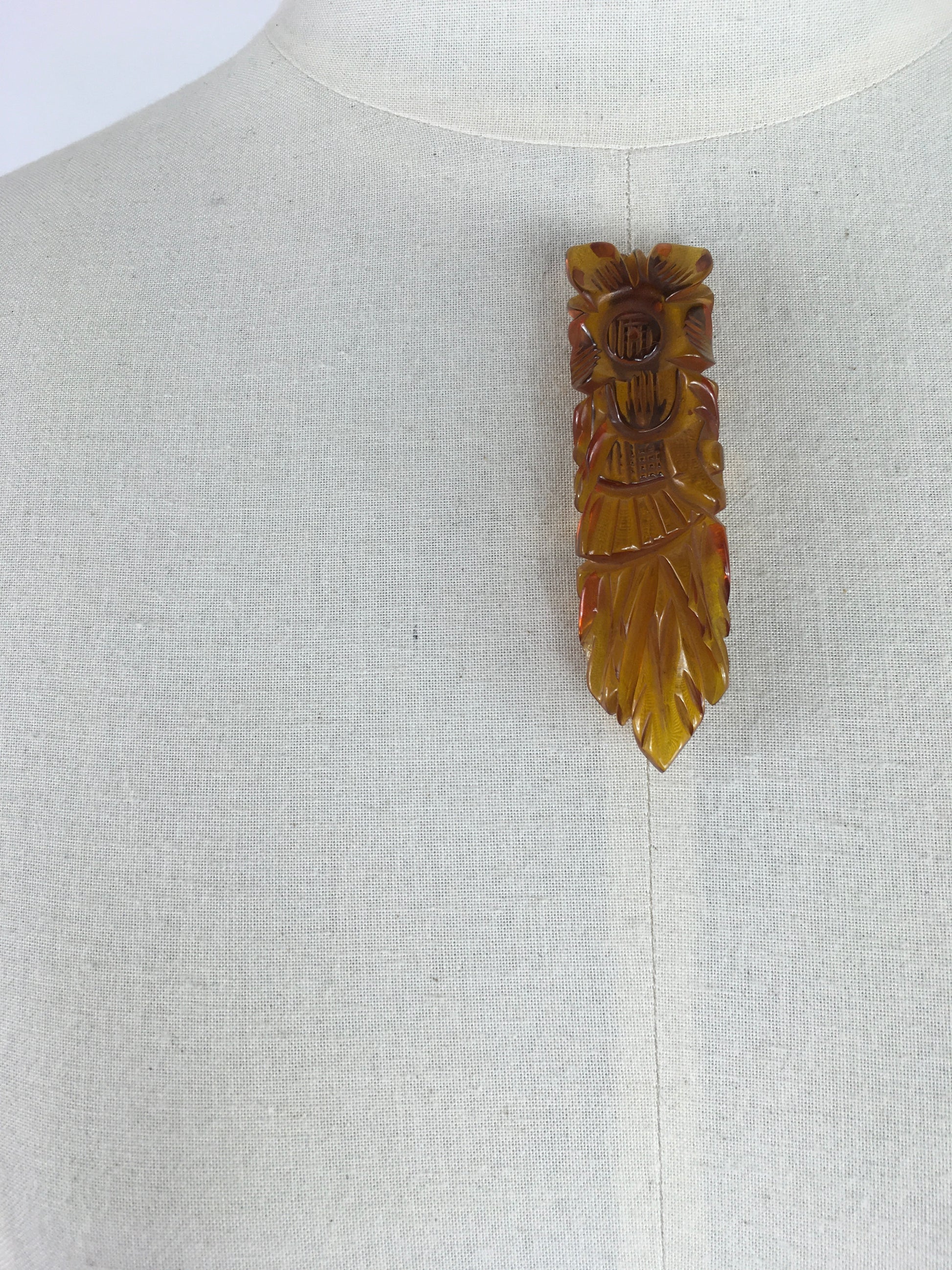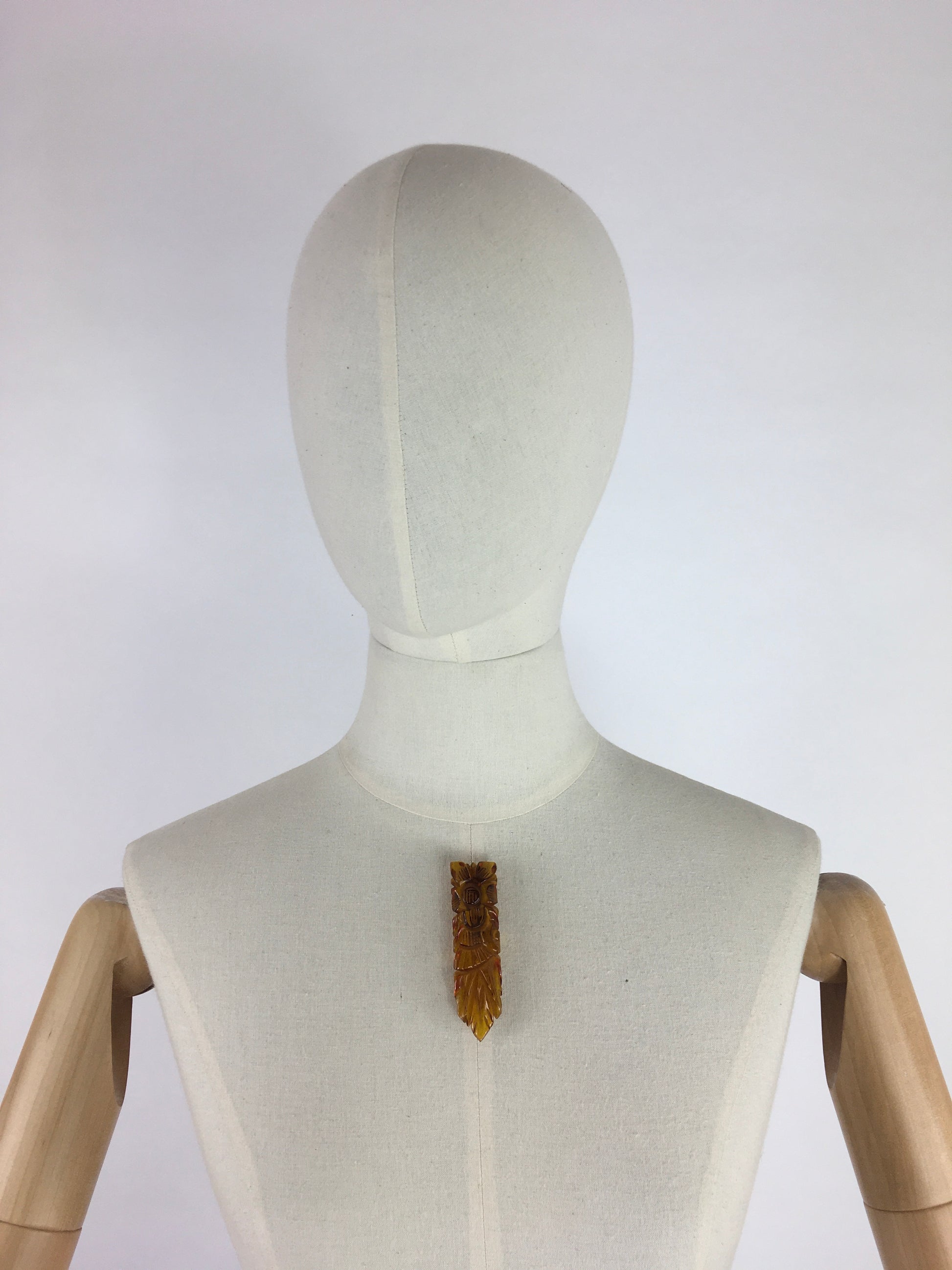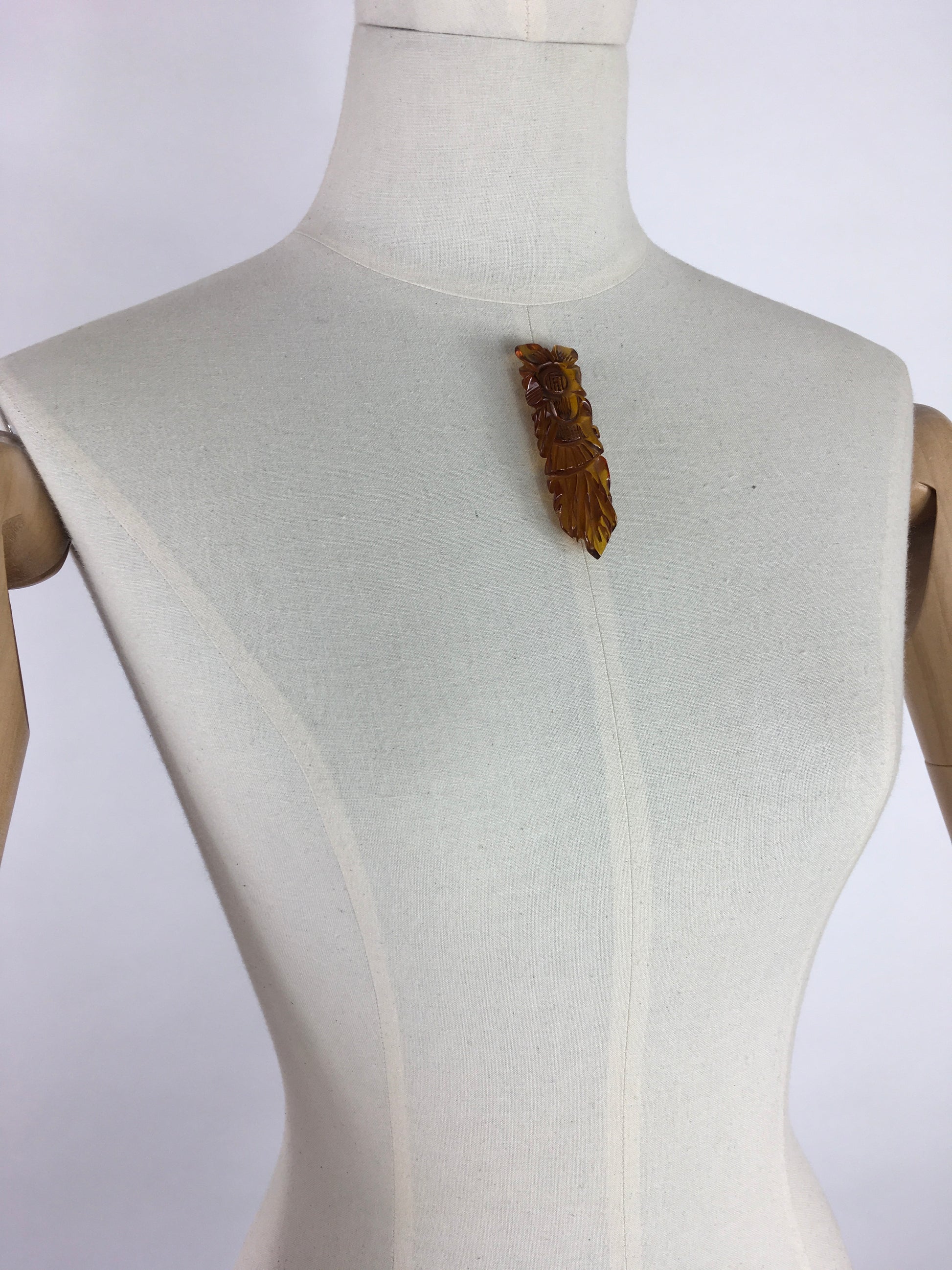 Vintage 1940’s Chunky carved Bakelite dress clip In a lovely apple juice colours. Stunning cut details this would make a real statement piece on a dress, blouse or even around a scarf.