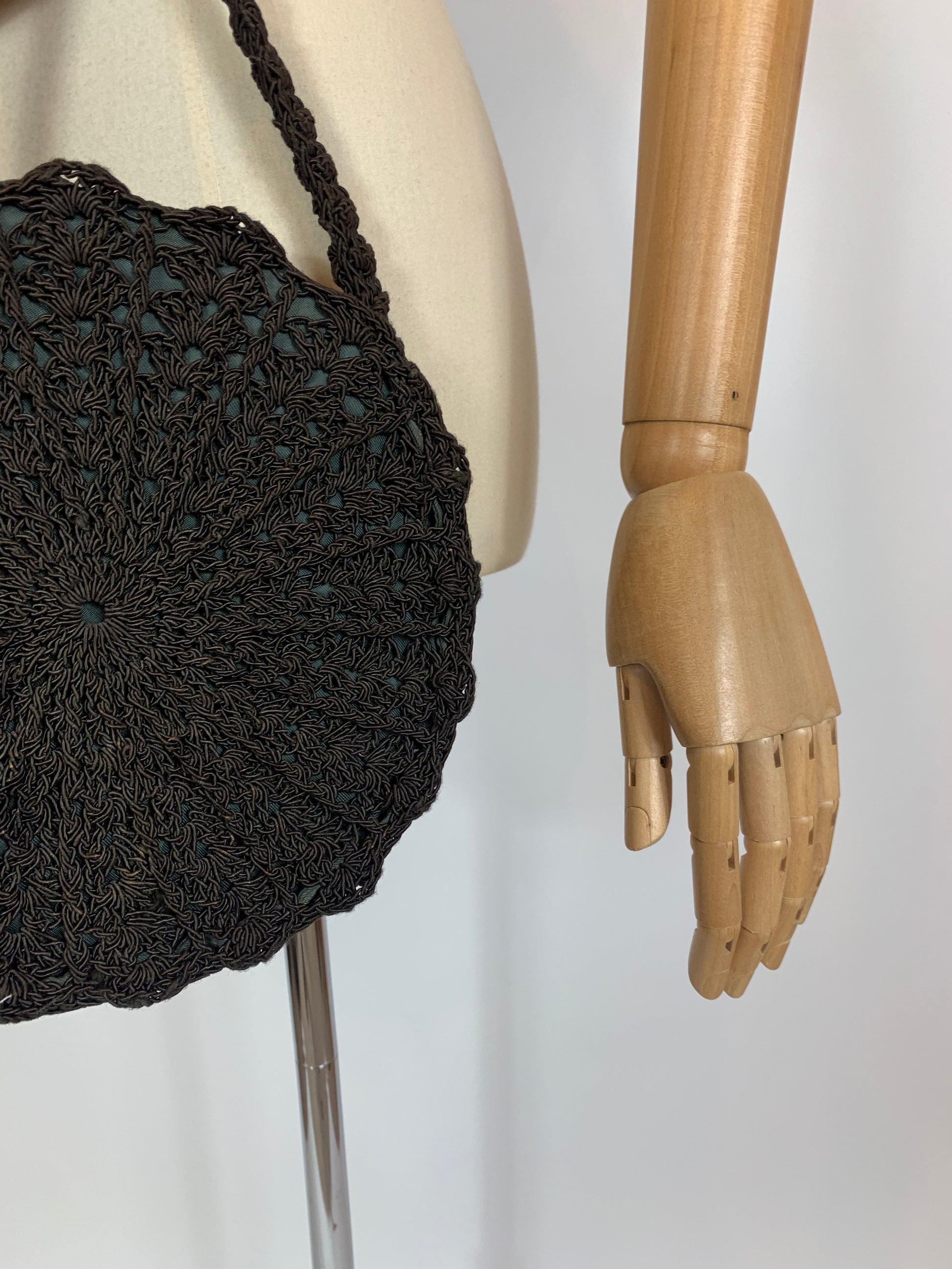Original 1940’s Crochet Circular Handbag - Very Dark Brown