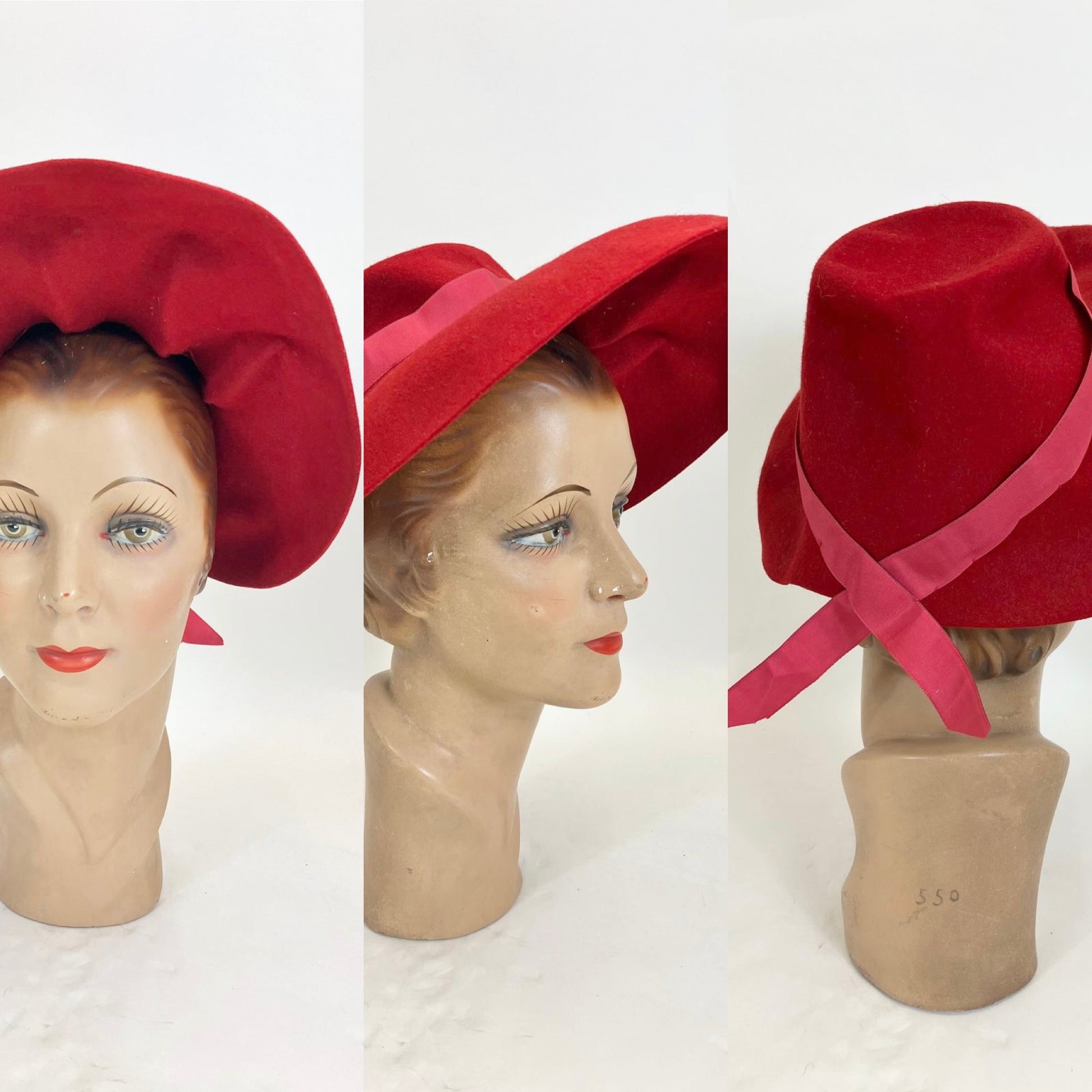 Original 1940’s Fabulous Felt Hat - Cherry Red
