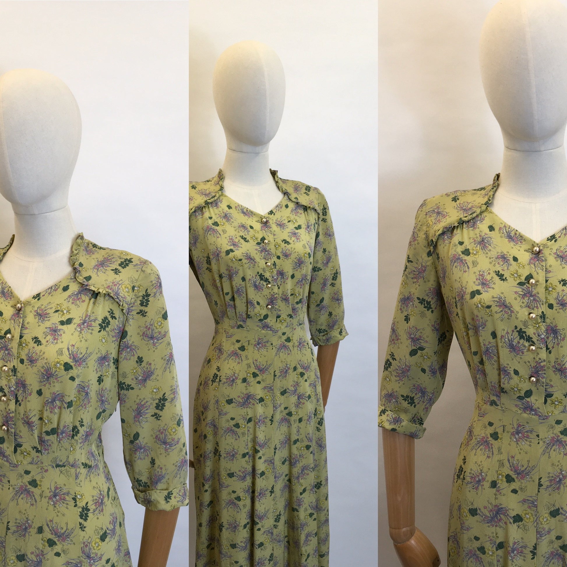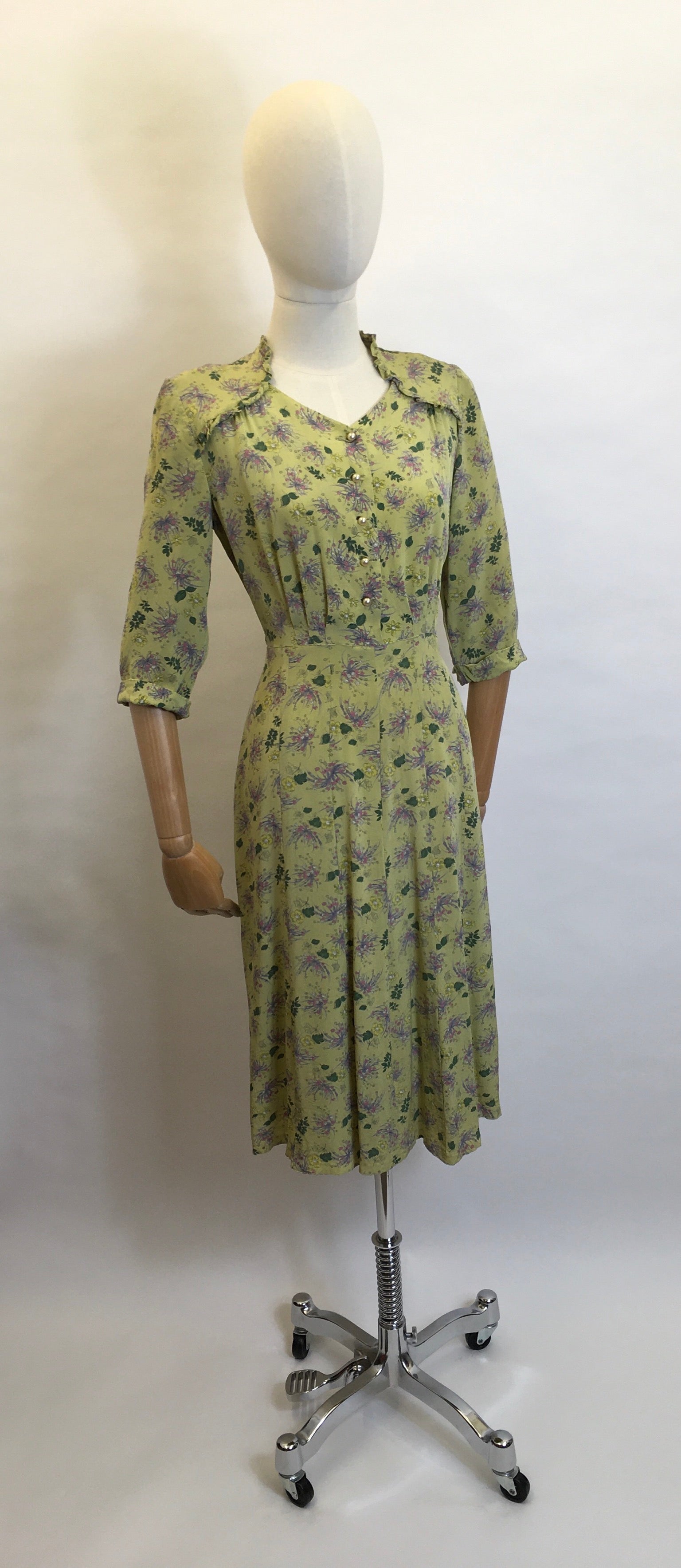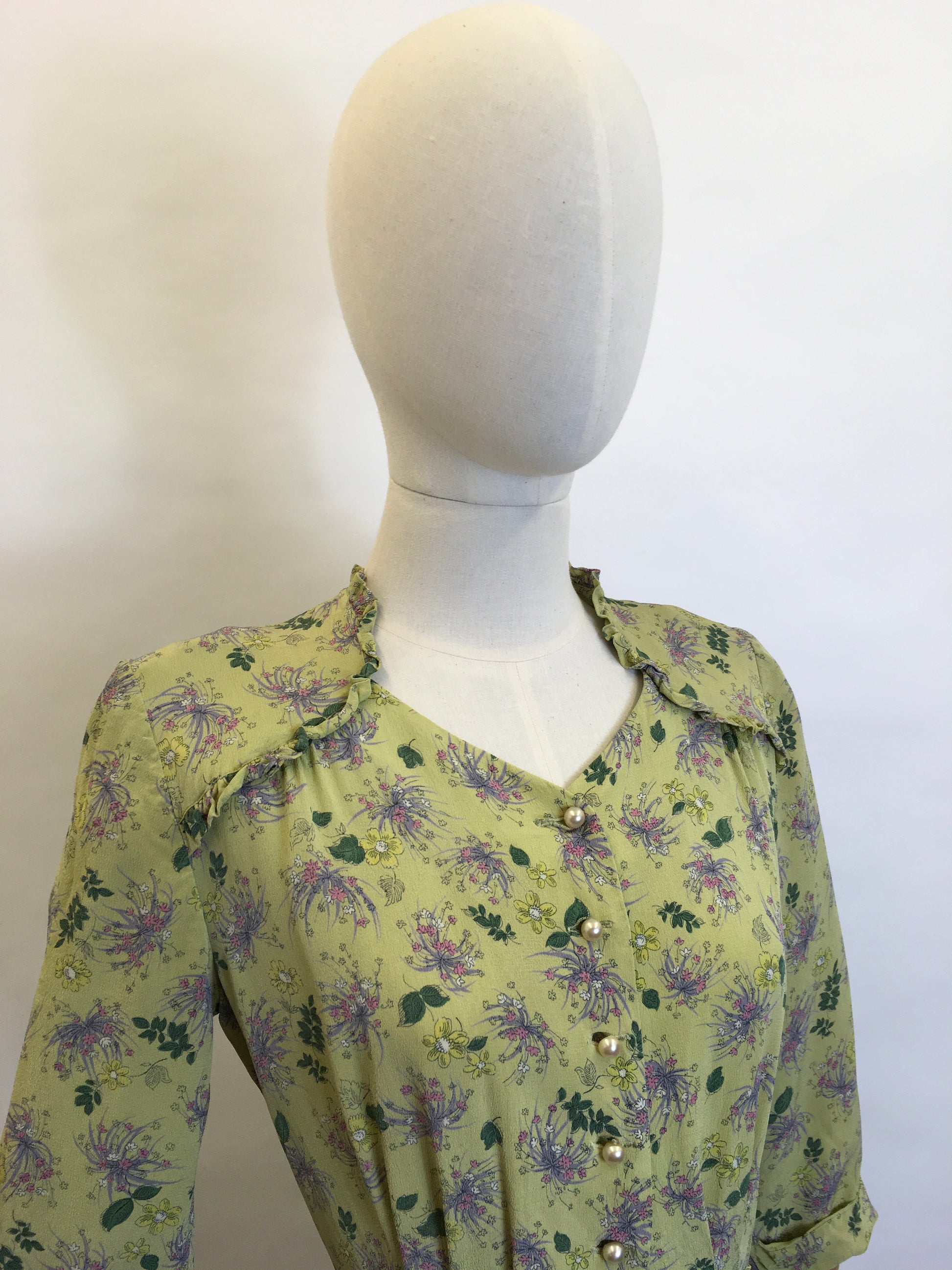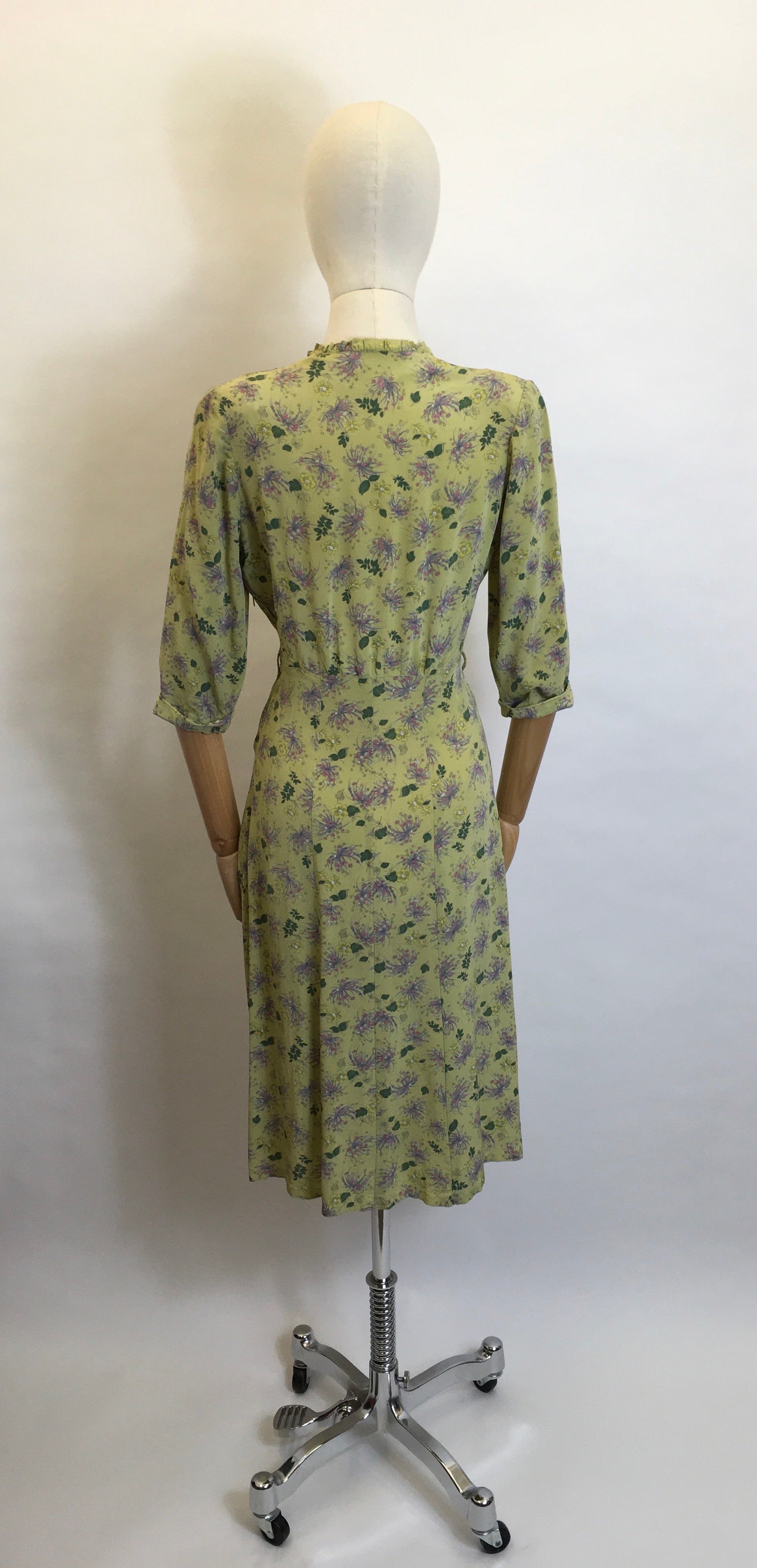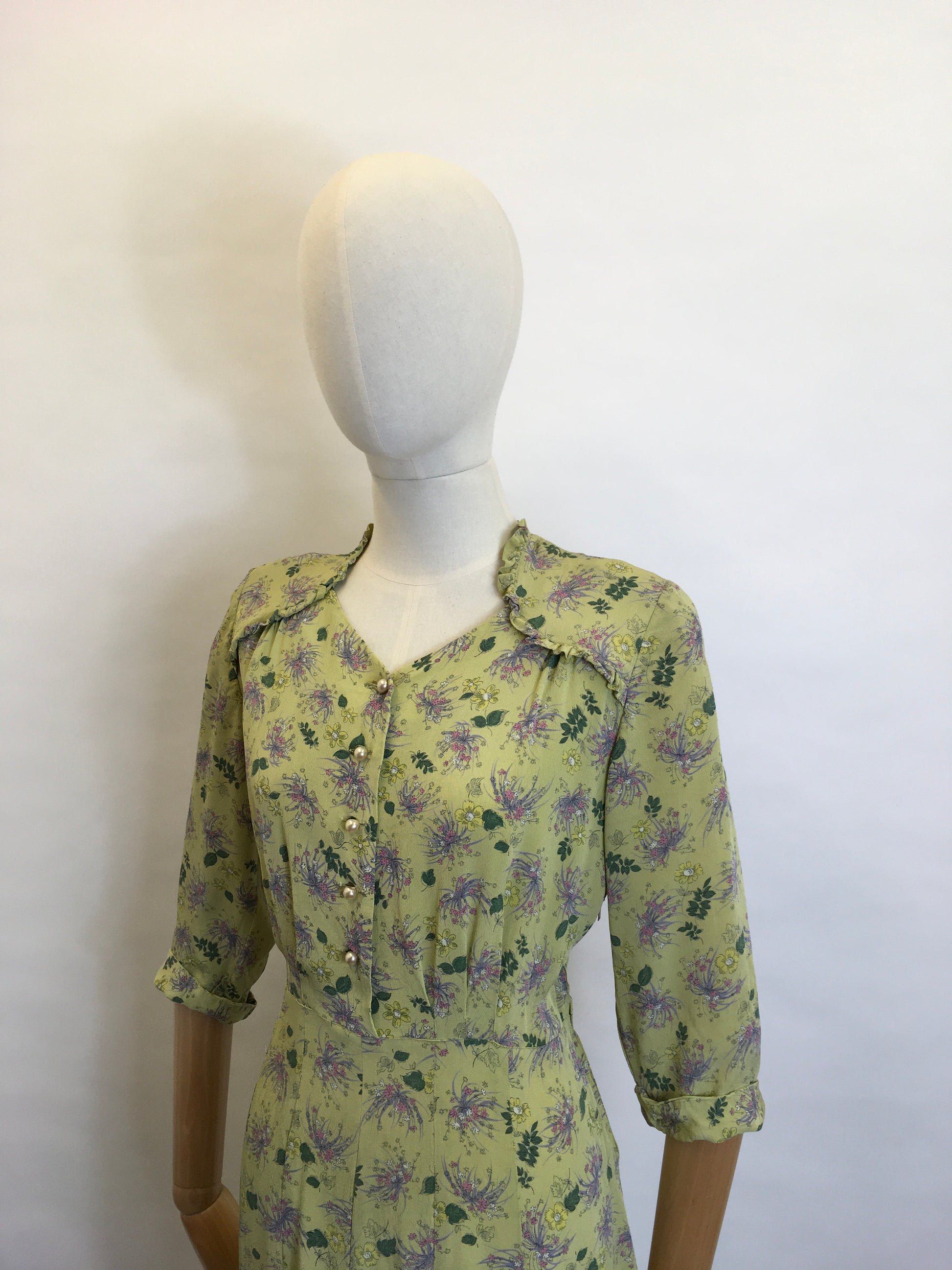 Original 1940’s Floral Day Dress - In a Beautiful Floral Crepe With a Warm Summer Colour Pallet
