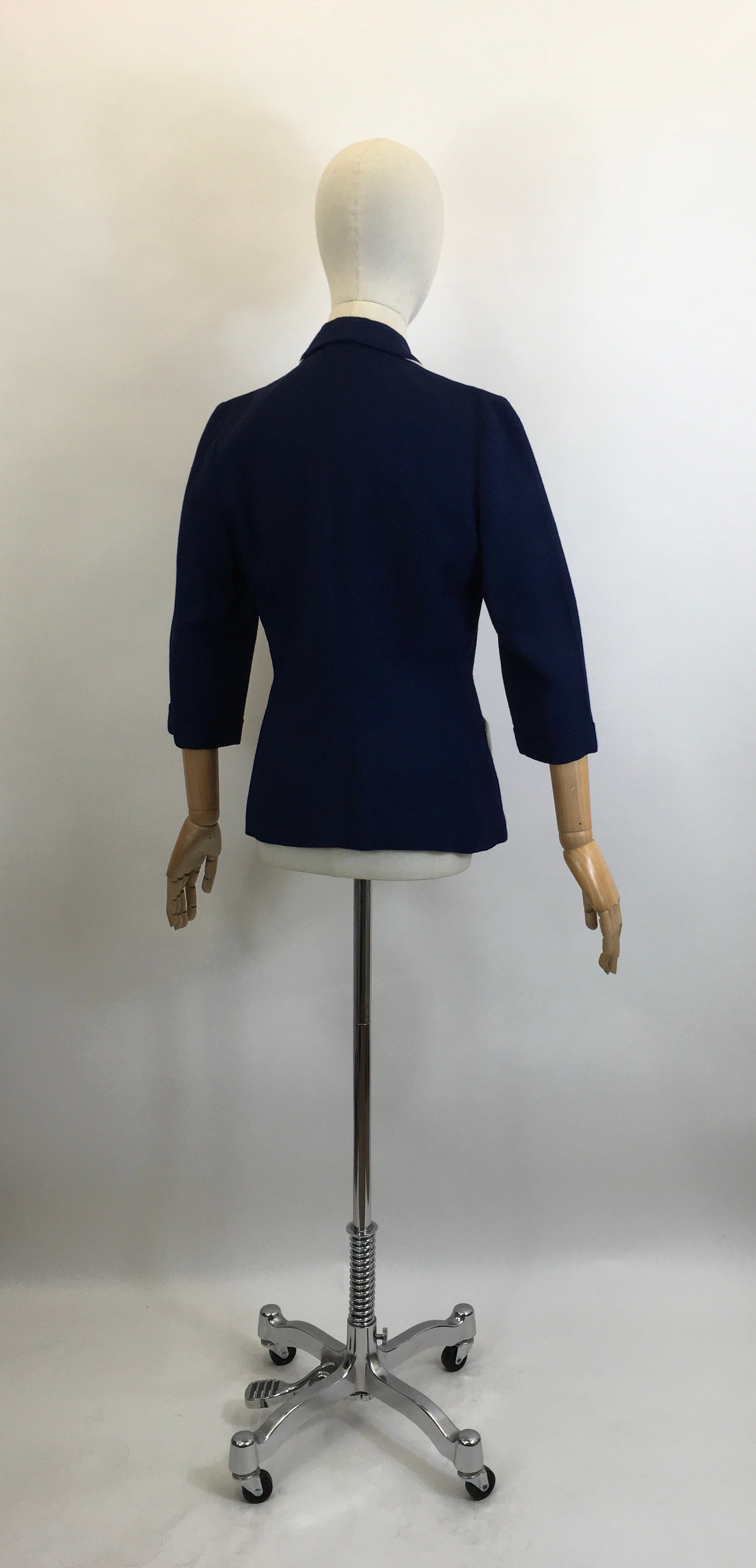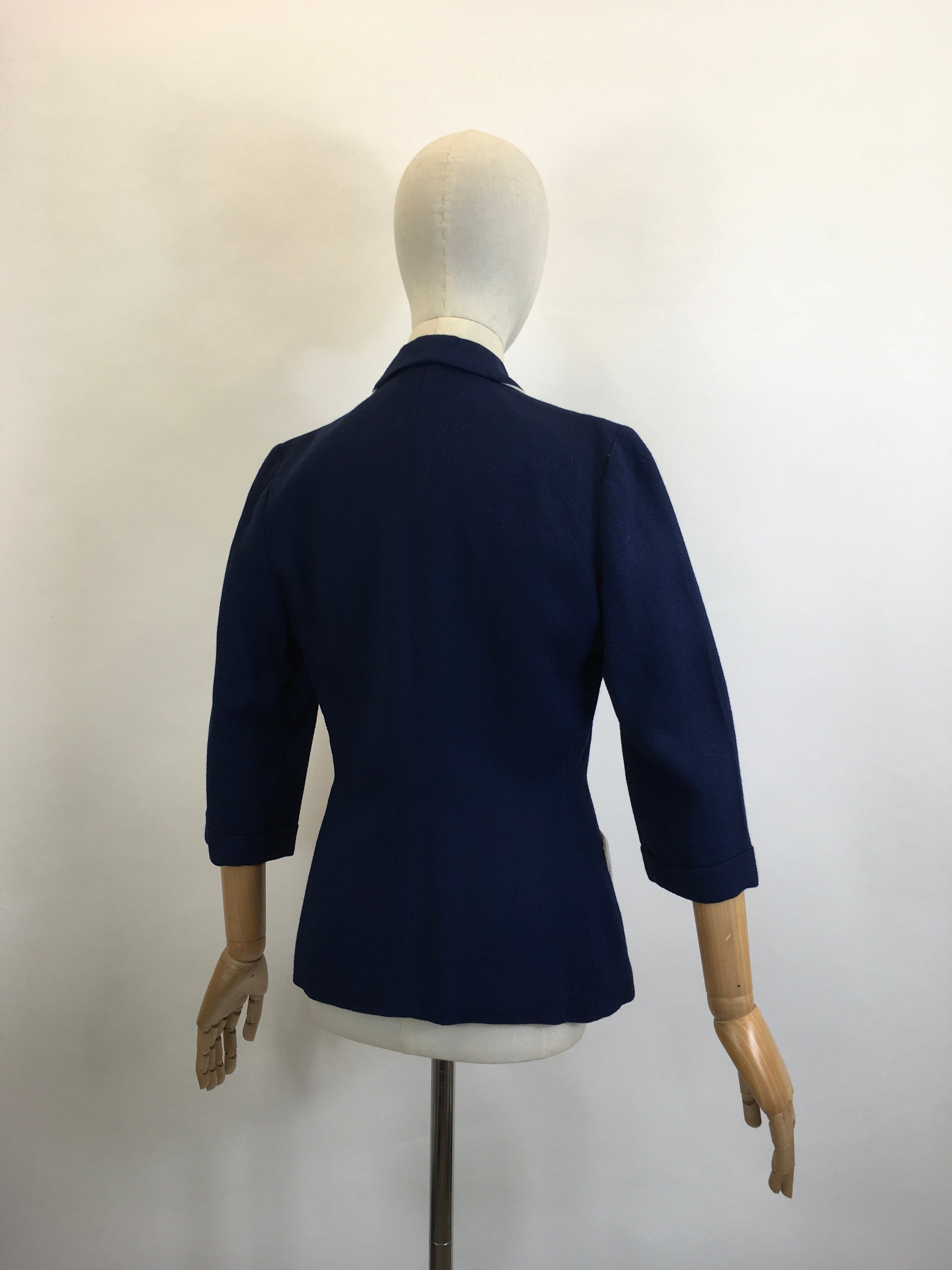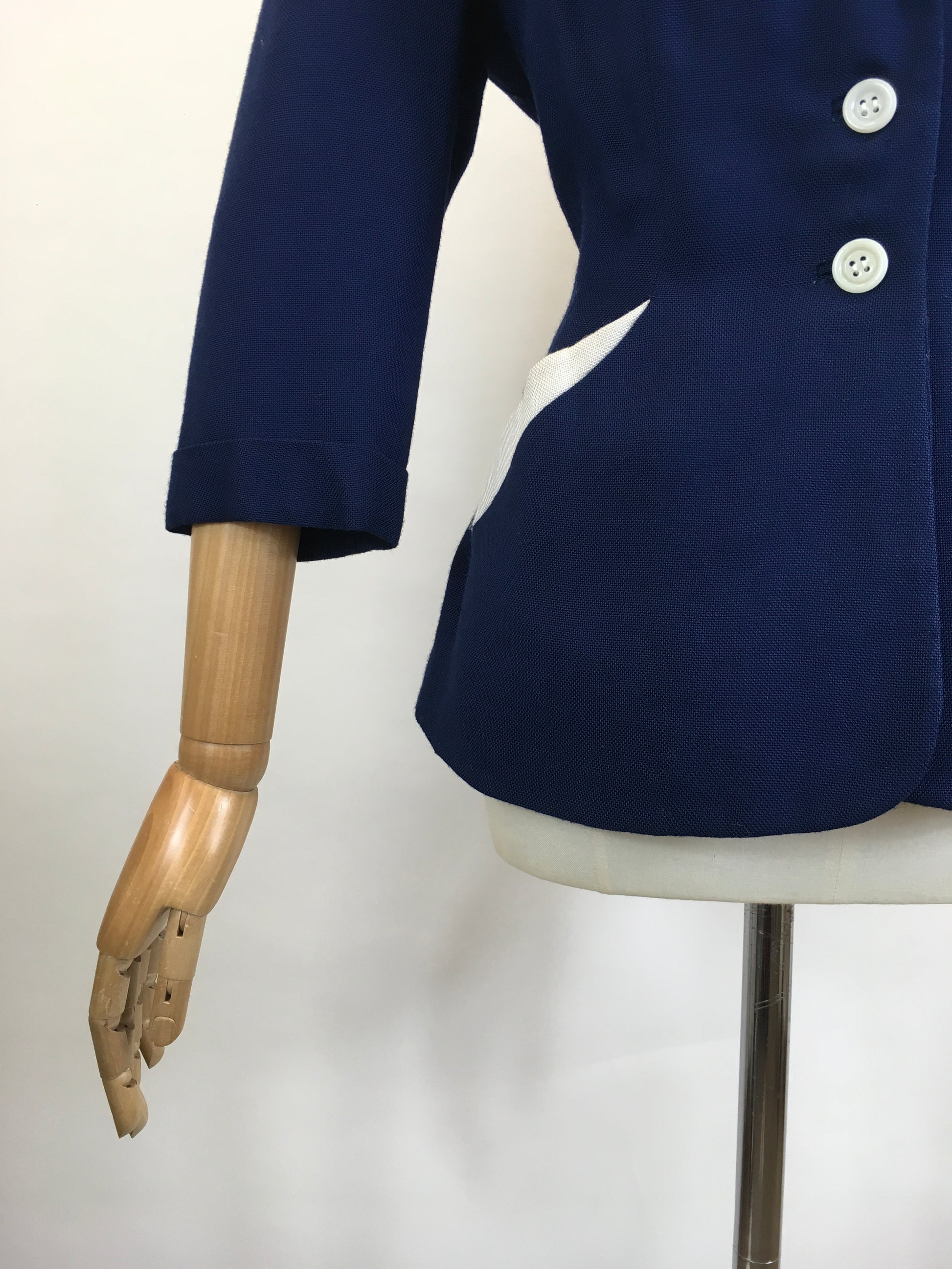 Original 1940’s Gorgeous Moygashel Linen Jacket - True Navy with White Contrast