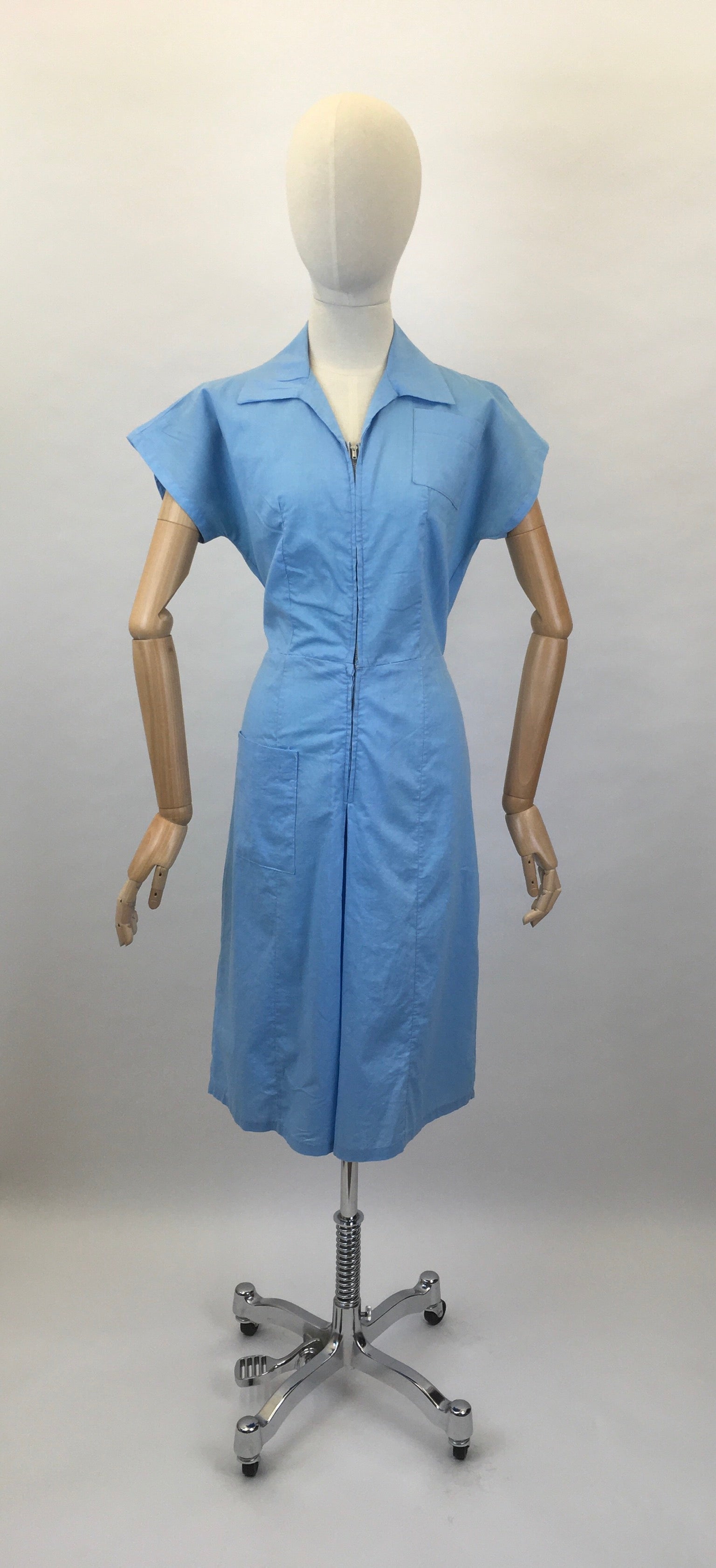 Original 1940’s Homemade Zip Front Playsuit - In a Lovely Sky Blue Cotton