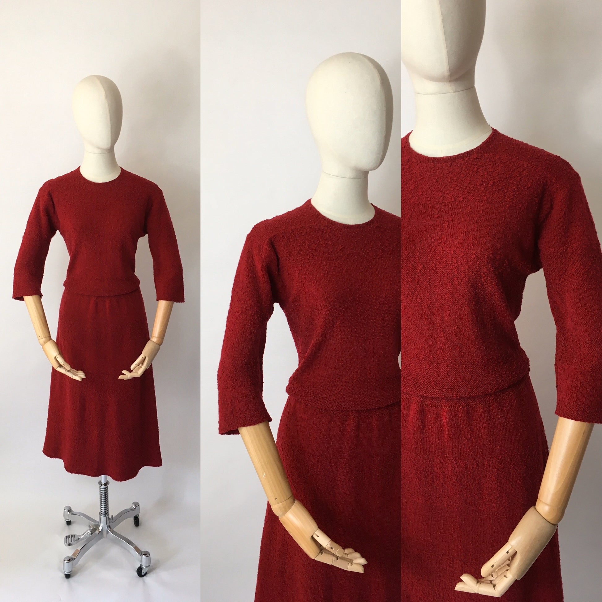Original 1940’s Knitted Dress - In a Beautiful Raspberry Red Colour