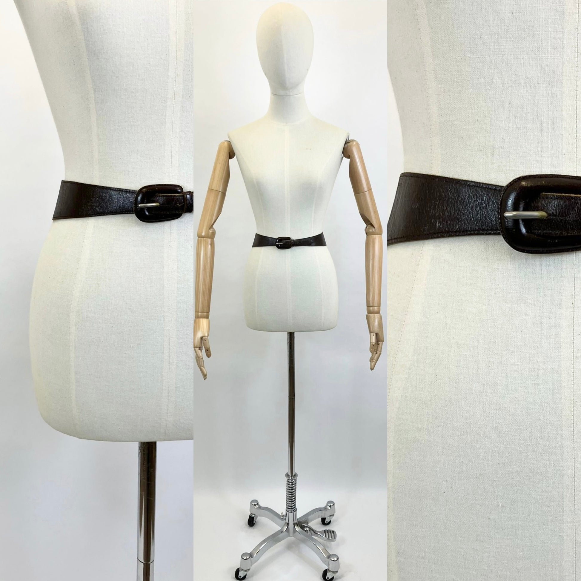 Good Vintage Condition - flaws to note : slight tarnish to the metal prong of the buckle commensurate with age otherwise great condition.