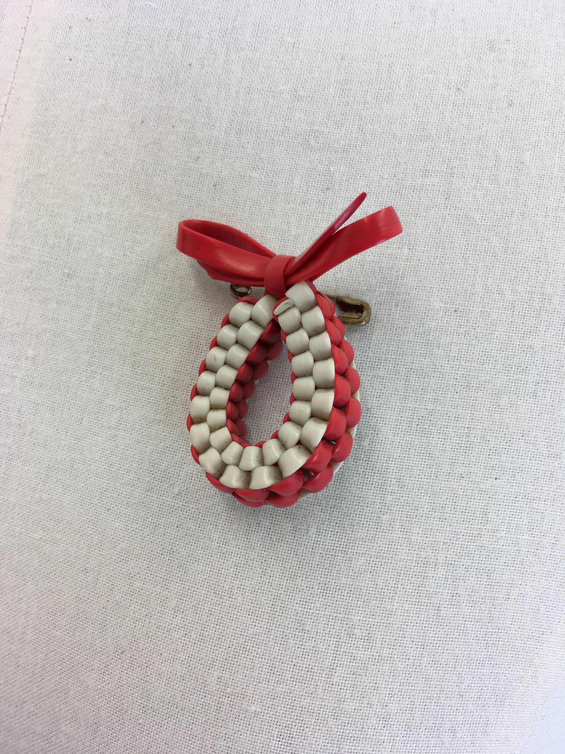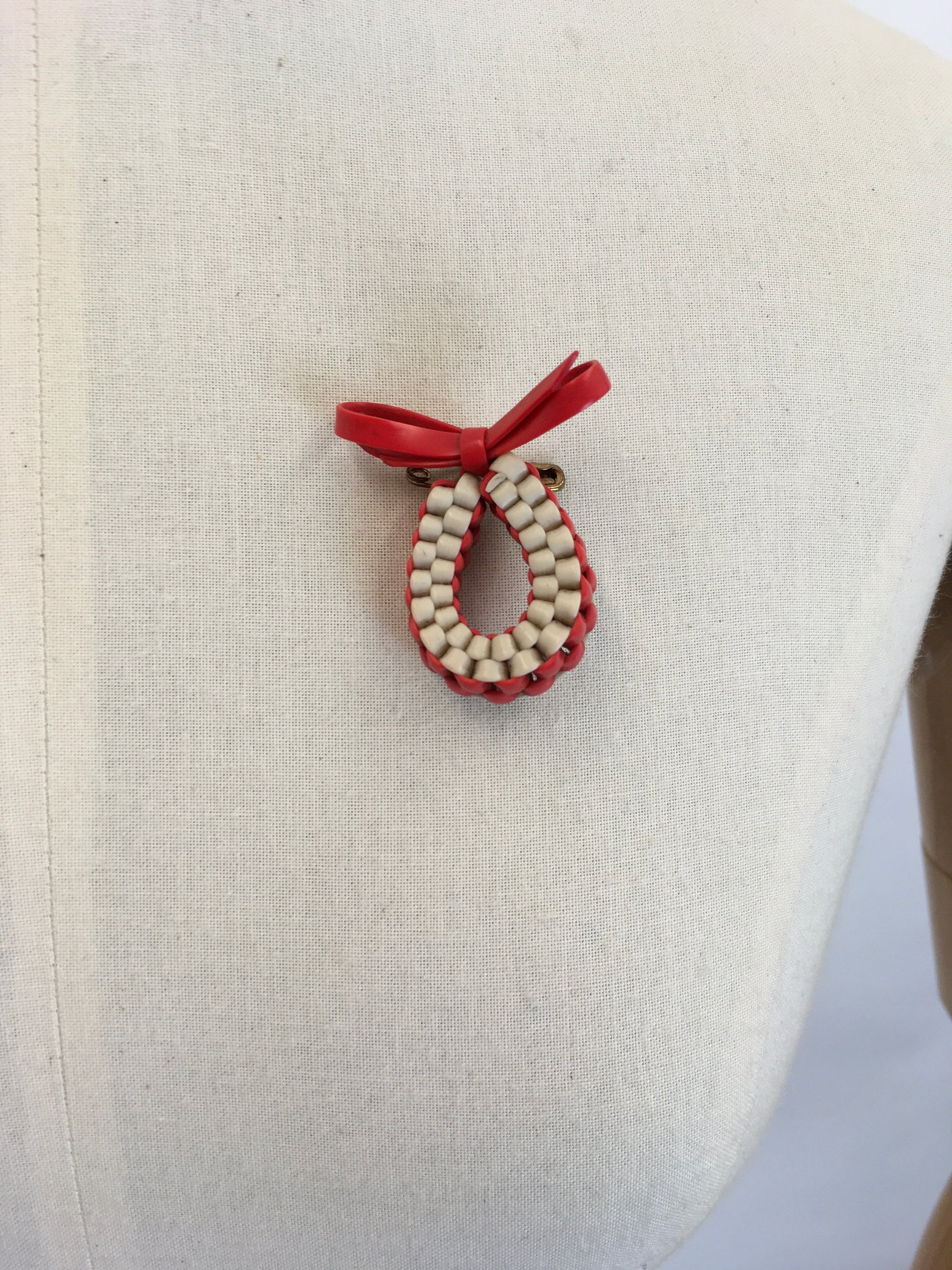 Original 1940’s Make Do and Mend Telephone Cord Brooch - In Red and White
