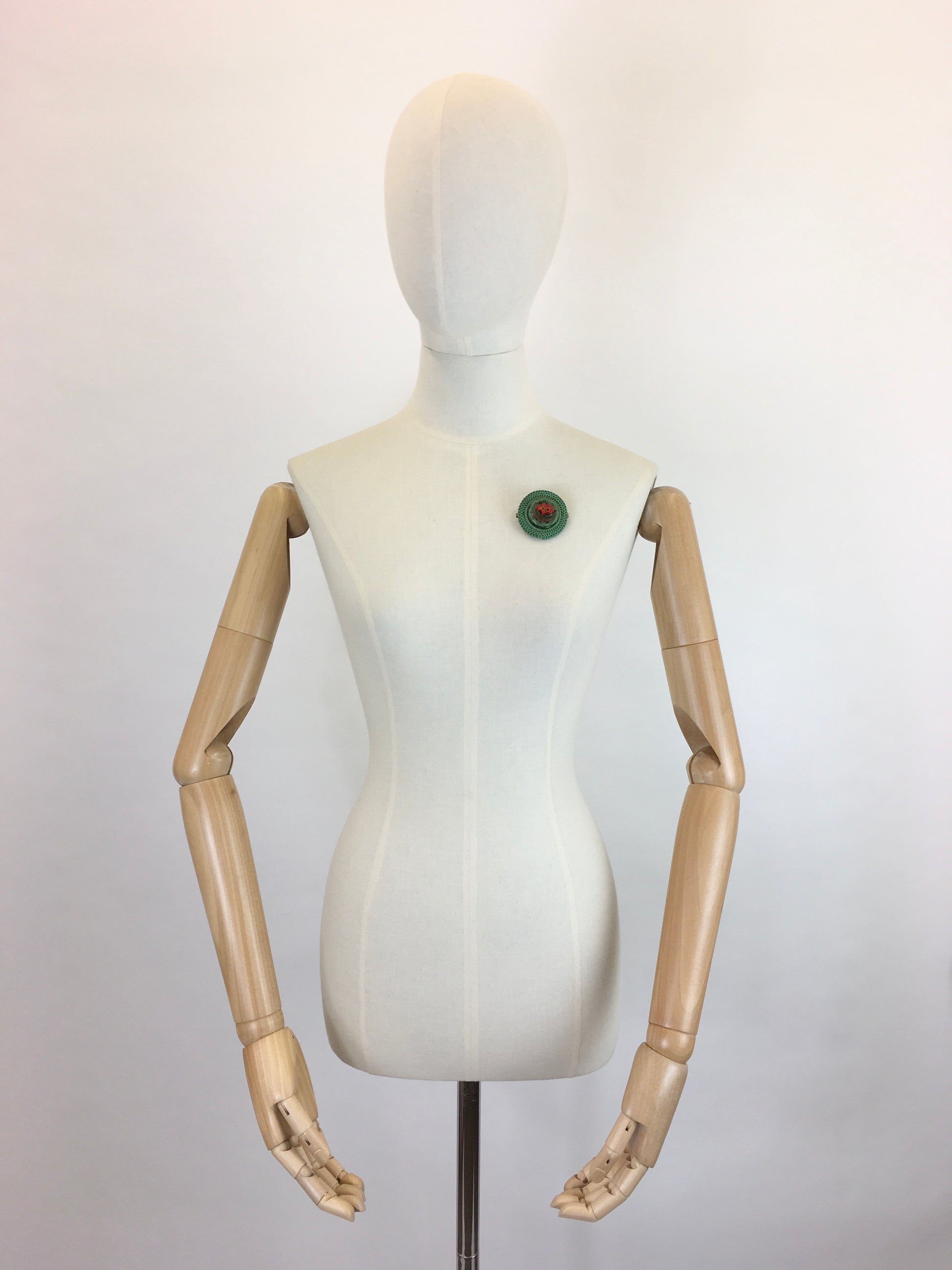Original 1940’s Make Do and Mend Telephone Wire Brooch - In A Festive Red and Green Colour Pallet