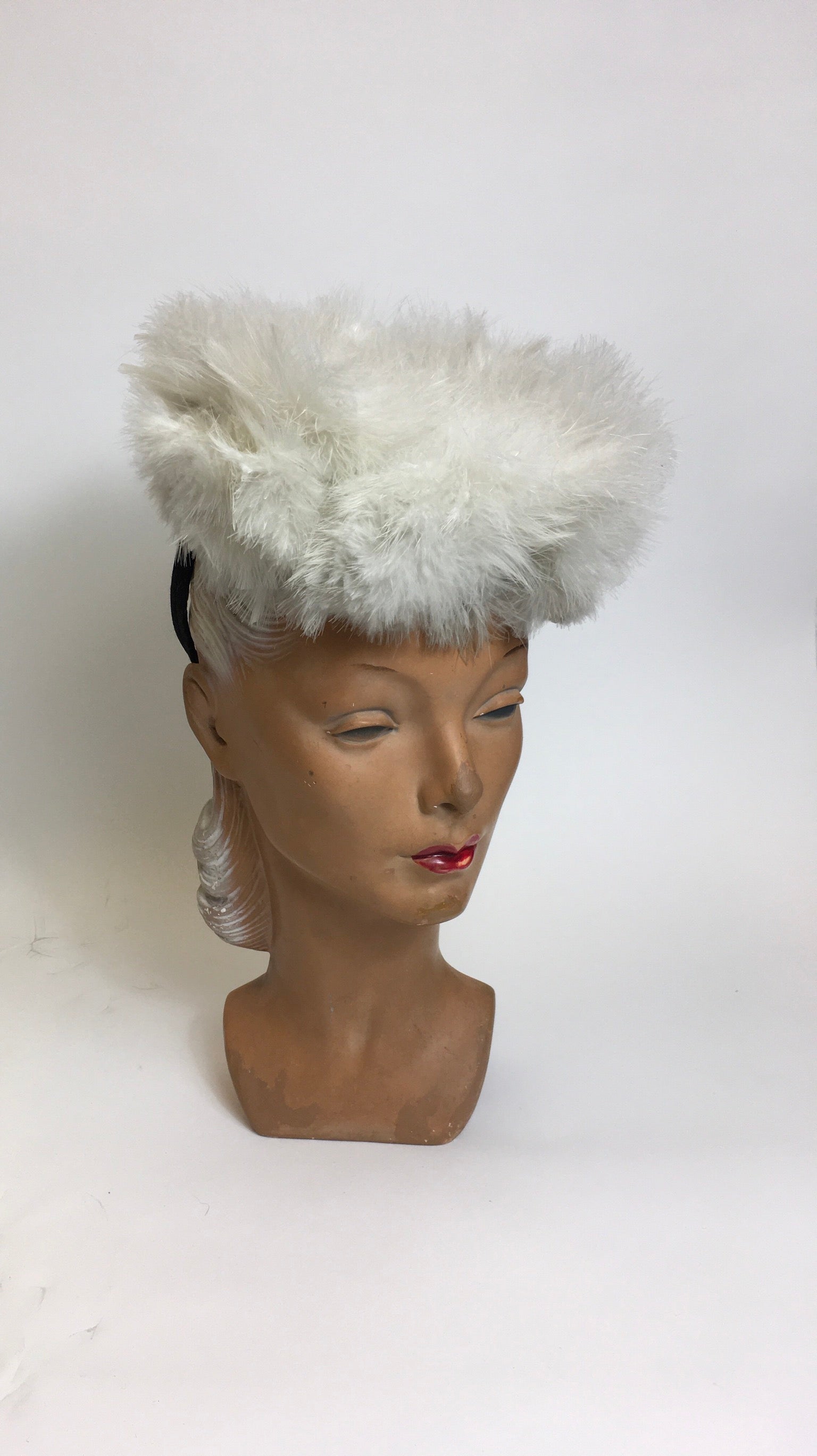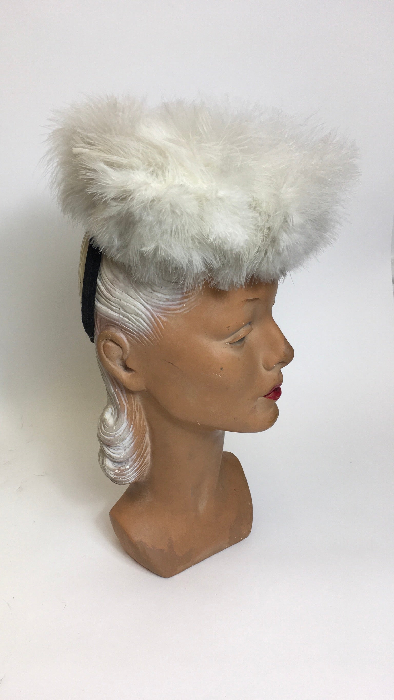Original 1940’s Marabou Feather Toy Tilt Topper - In A beautiful powdery dove grey