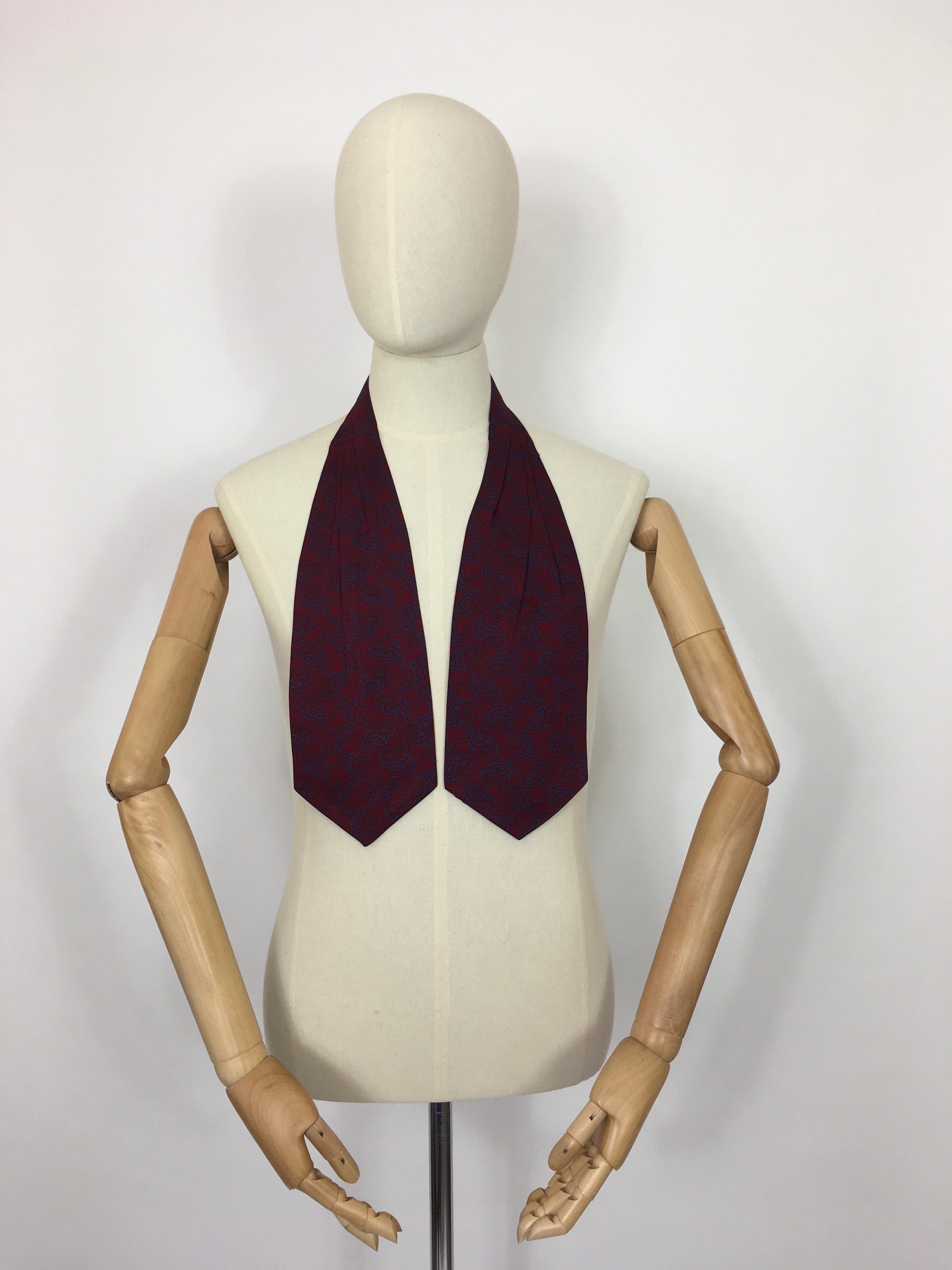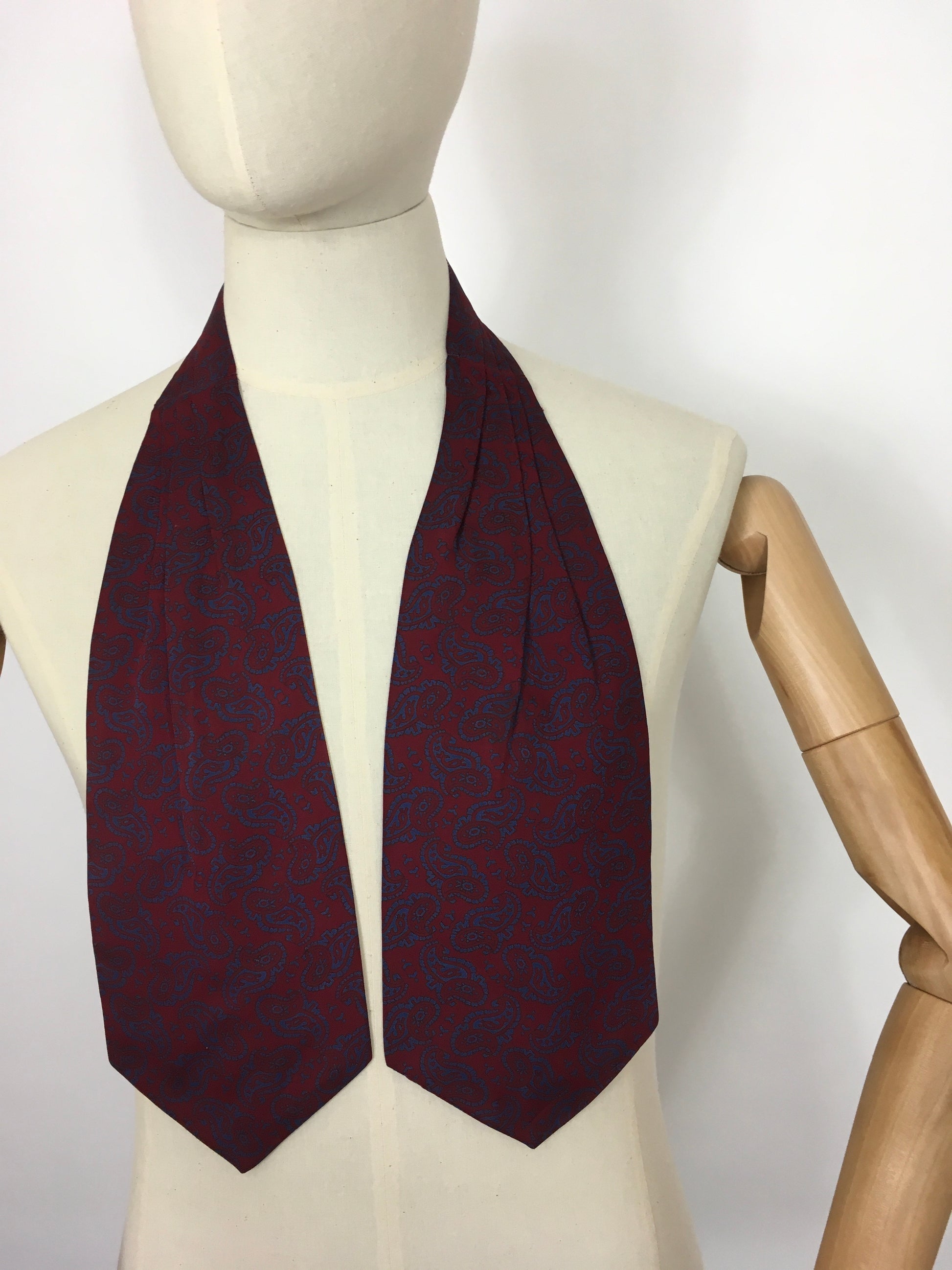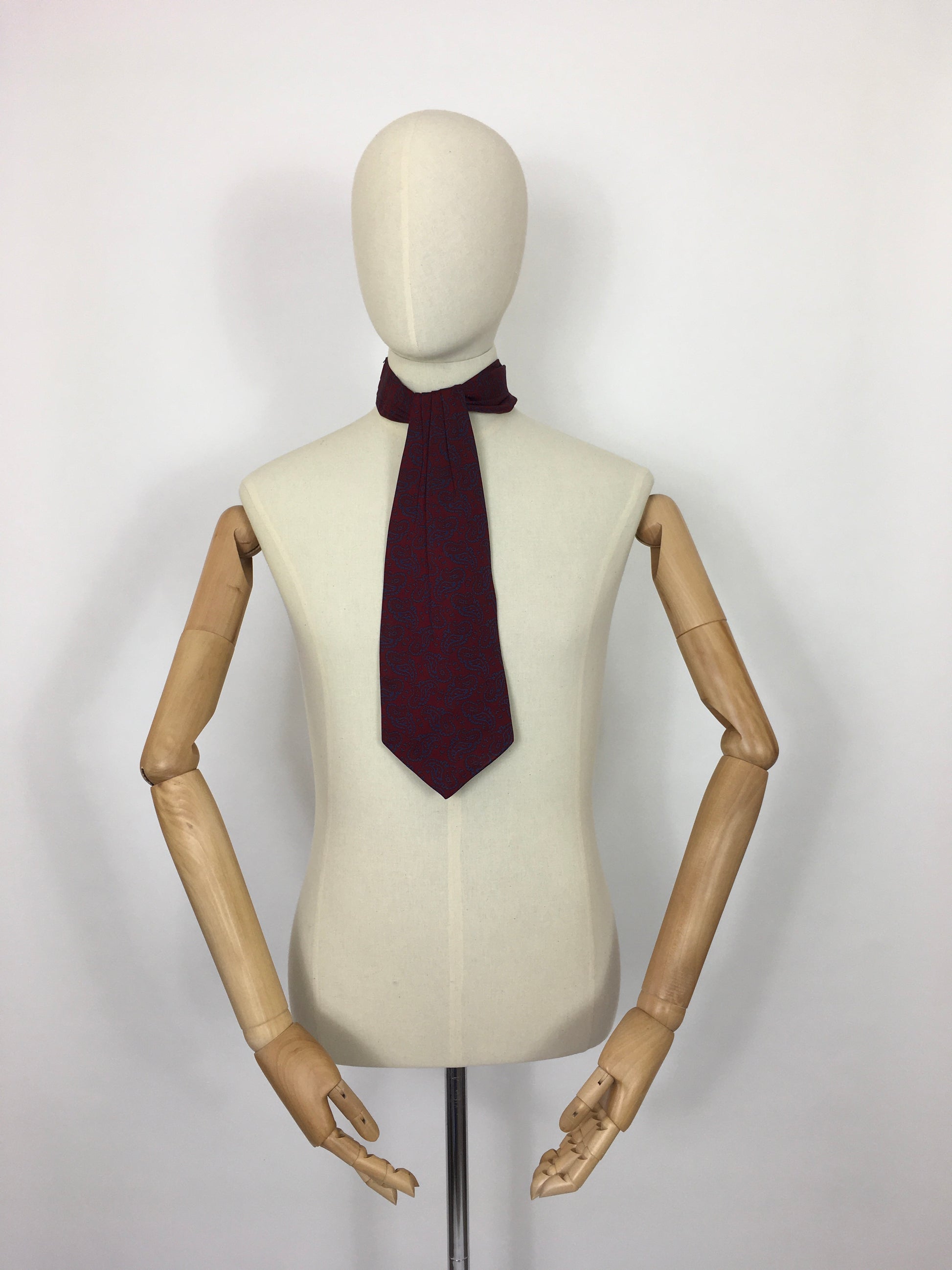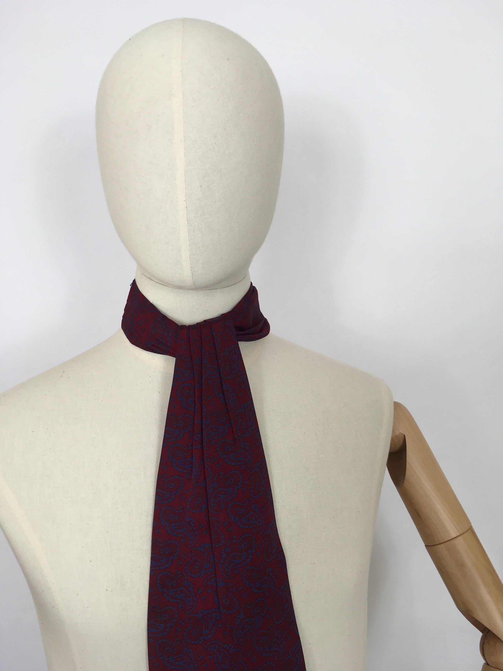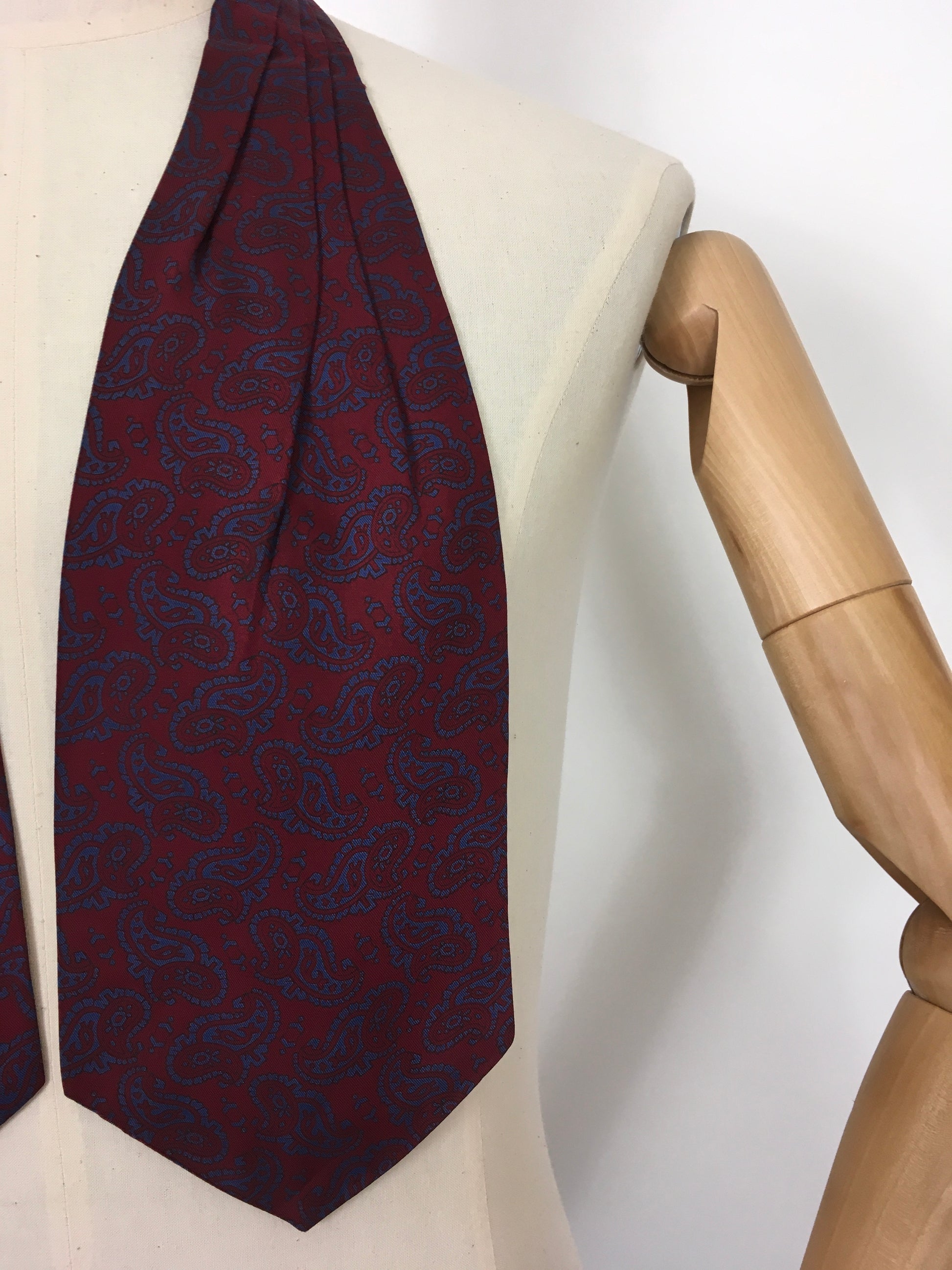 Original 1940’s Mens ‘ Tootal All Silk ‘ Cravat - In A Lovely Burgundy and Blue Paisley