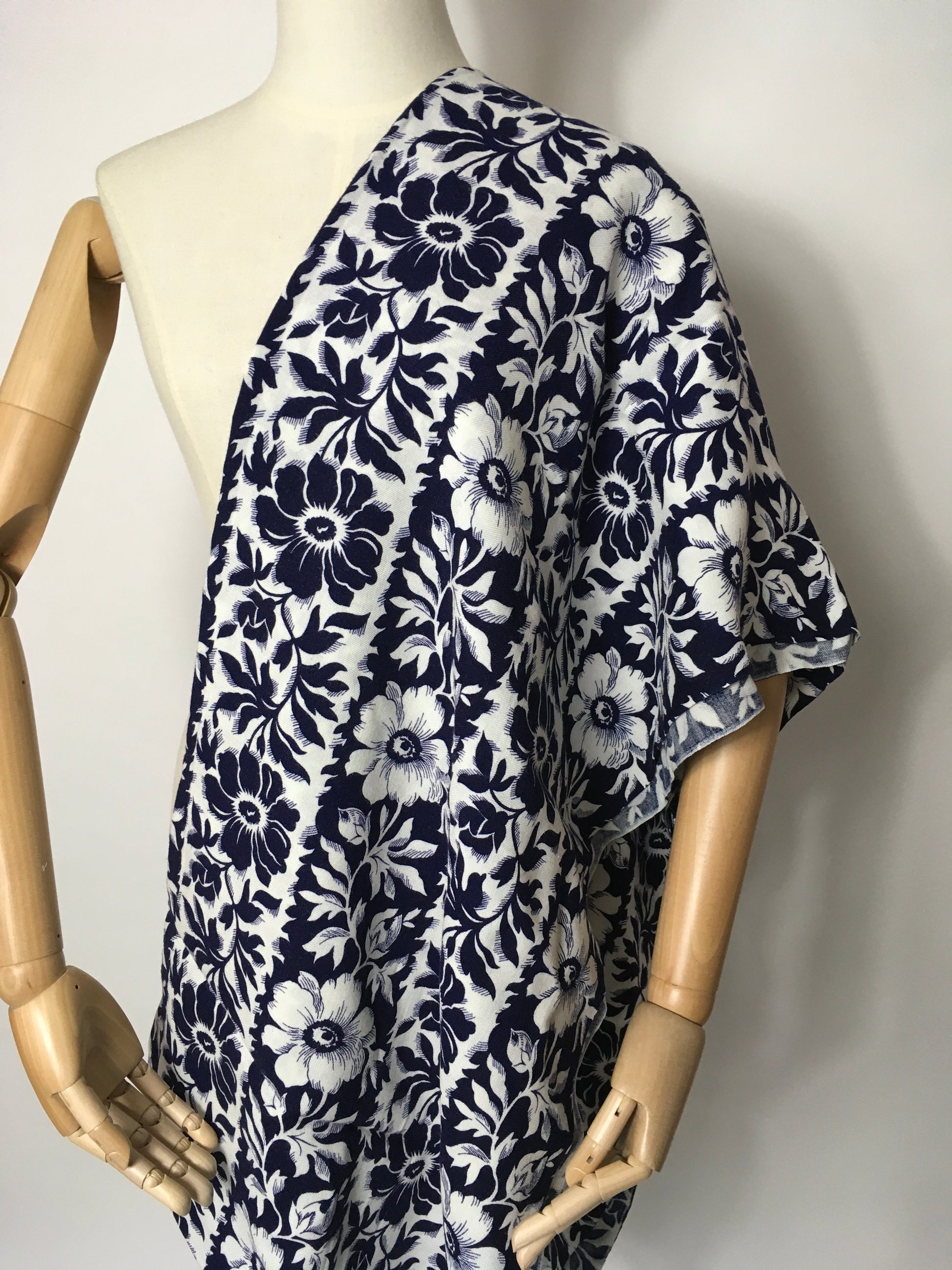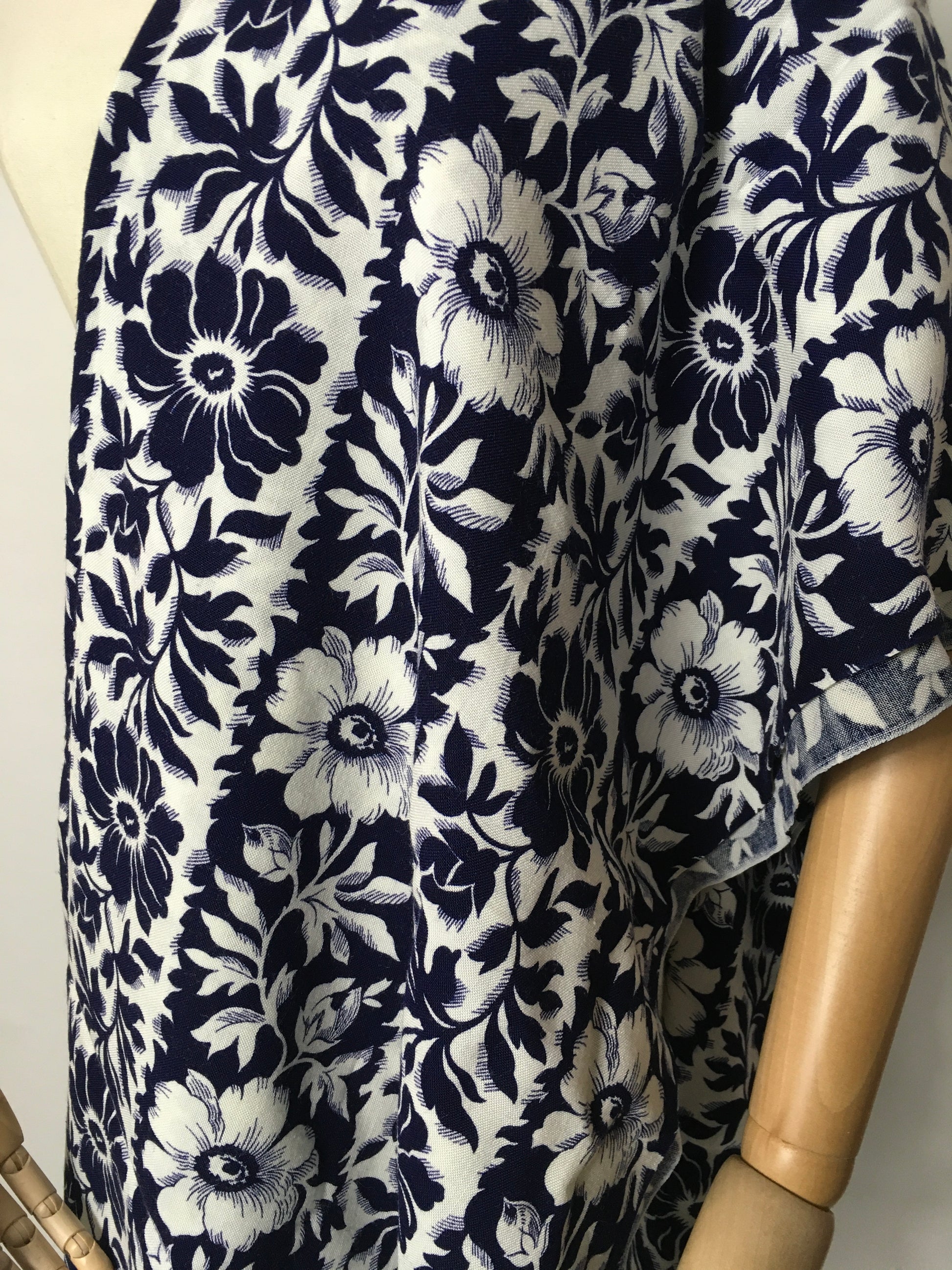 Vintage 1940’s Moygoshal linen dress fabric in a lovely navy and white floral, suspected CC41 due to iconic floral design and pattern. Measuring 3.5 m x 92 cm ( 140’ x 36’ ) this piece would look fabulous as a dress or a suit with some careful pattern cutting !