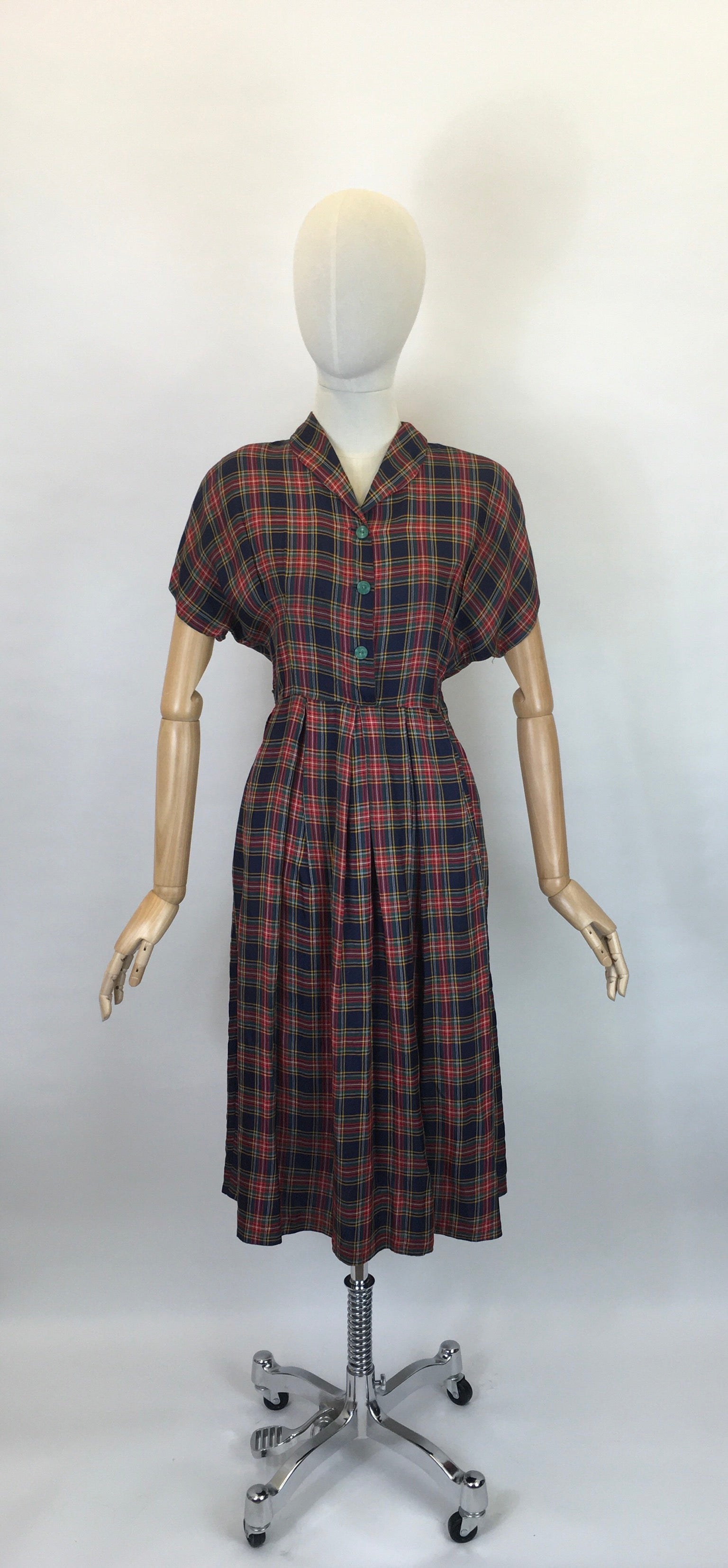 Original 1940’s Plaid Dress - In Rich Blues, Burgundy’s, Old Gold and Forest Greens